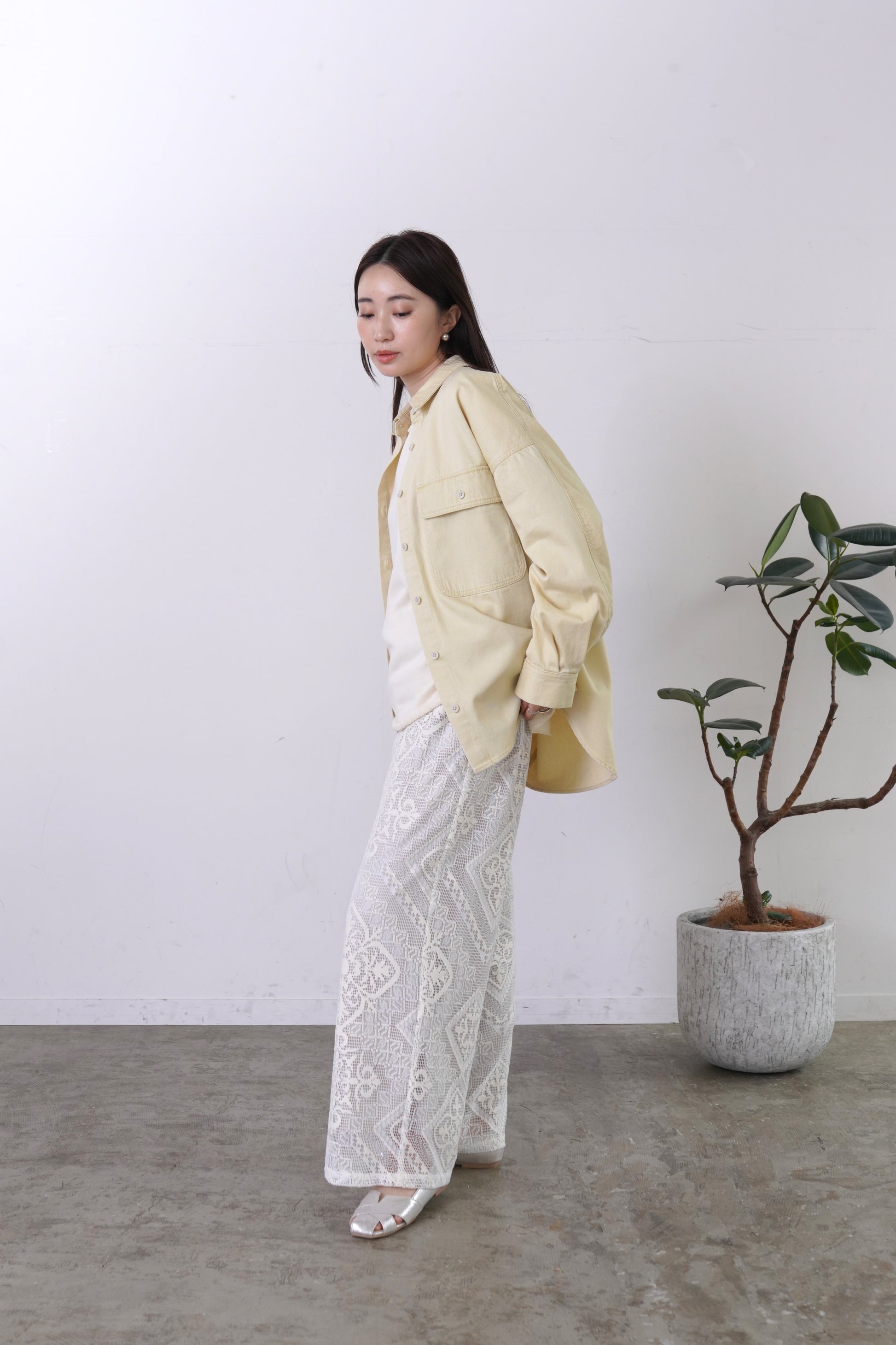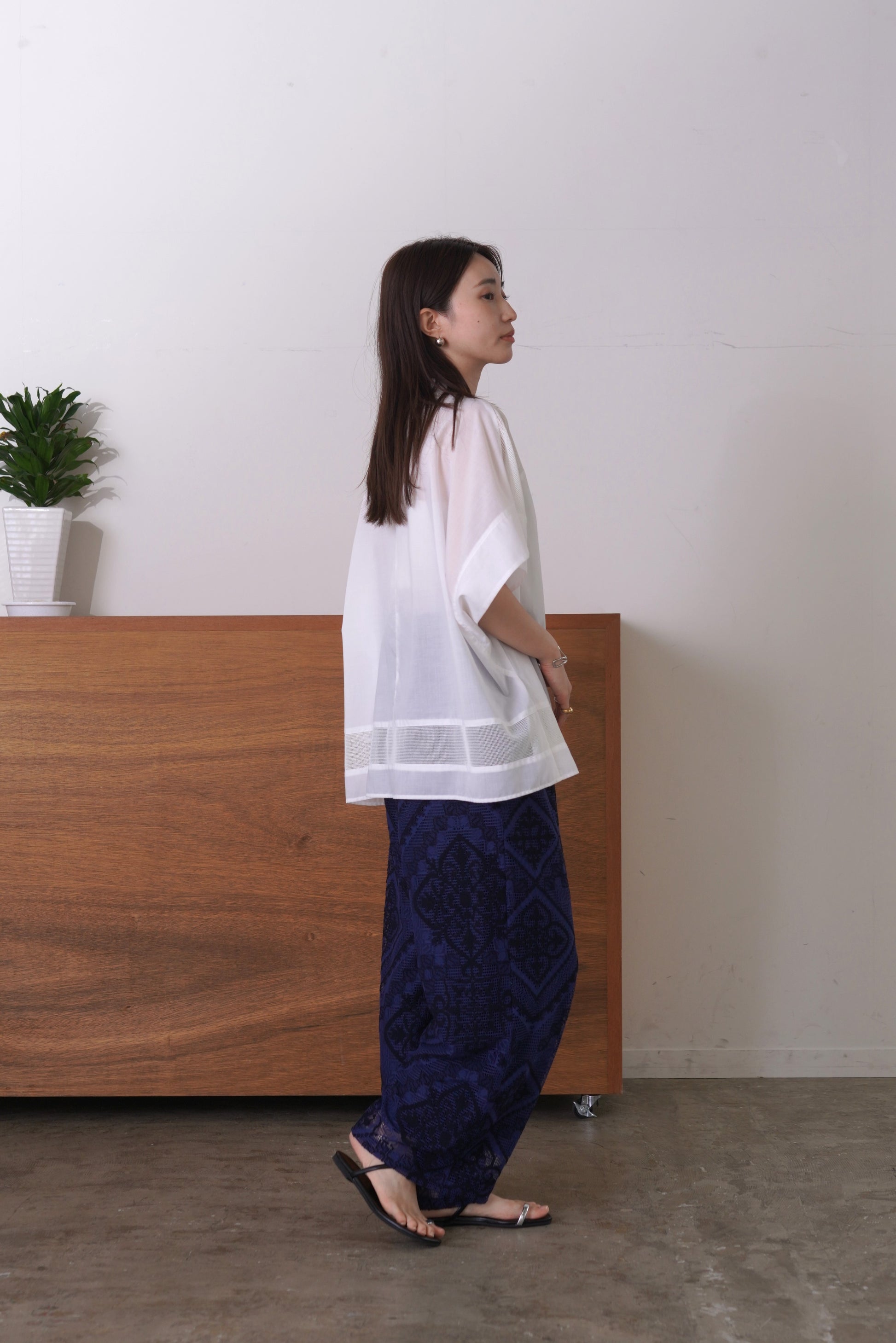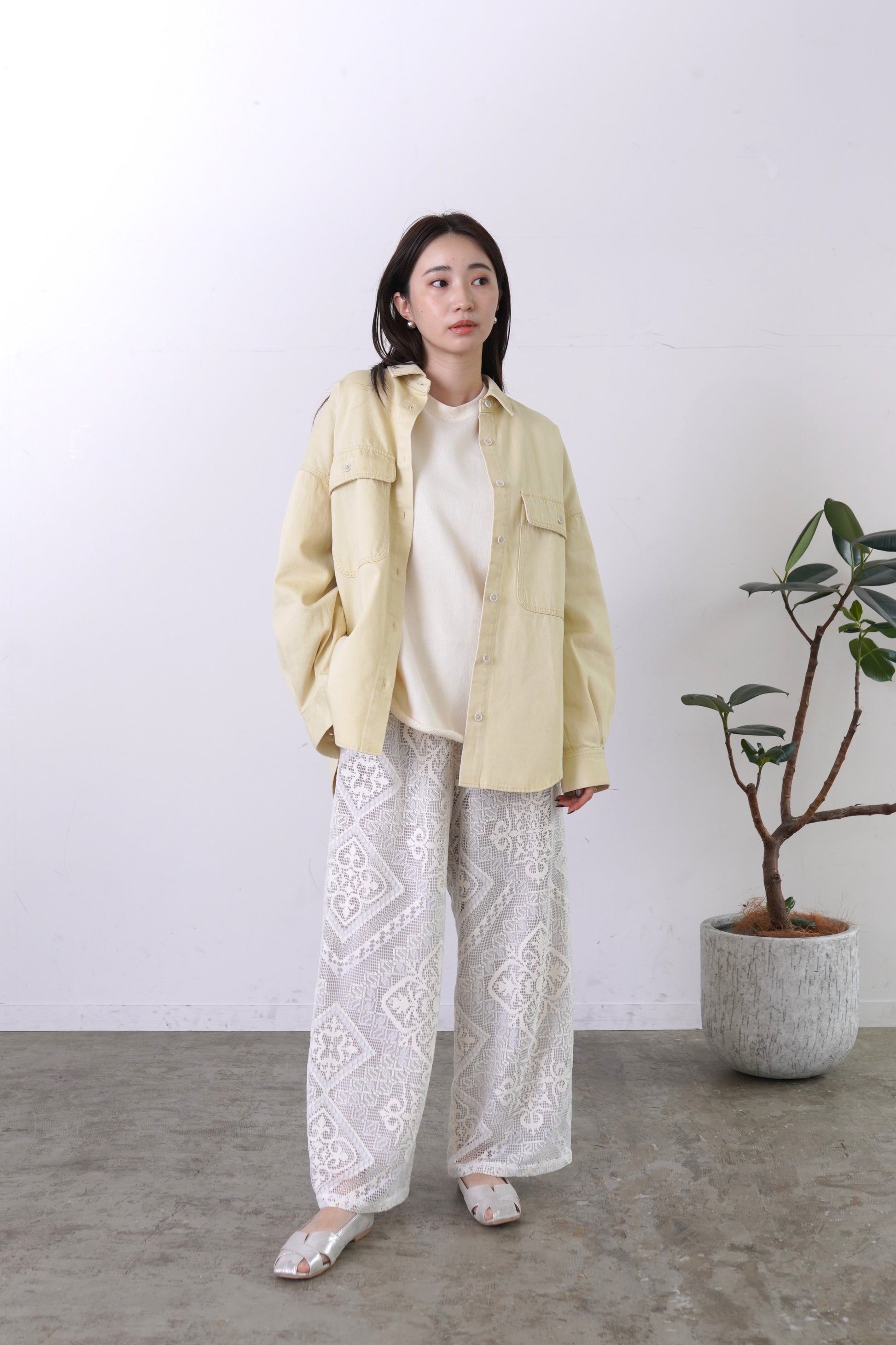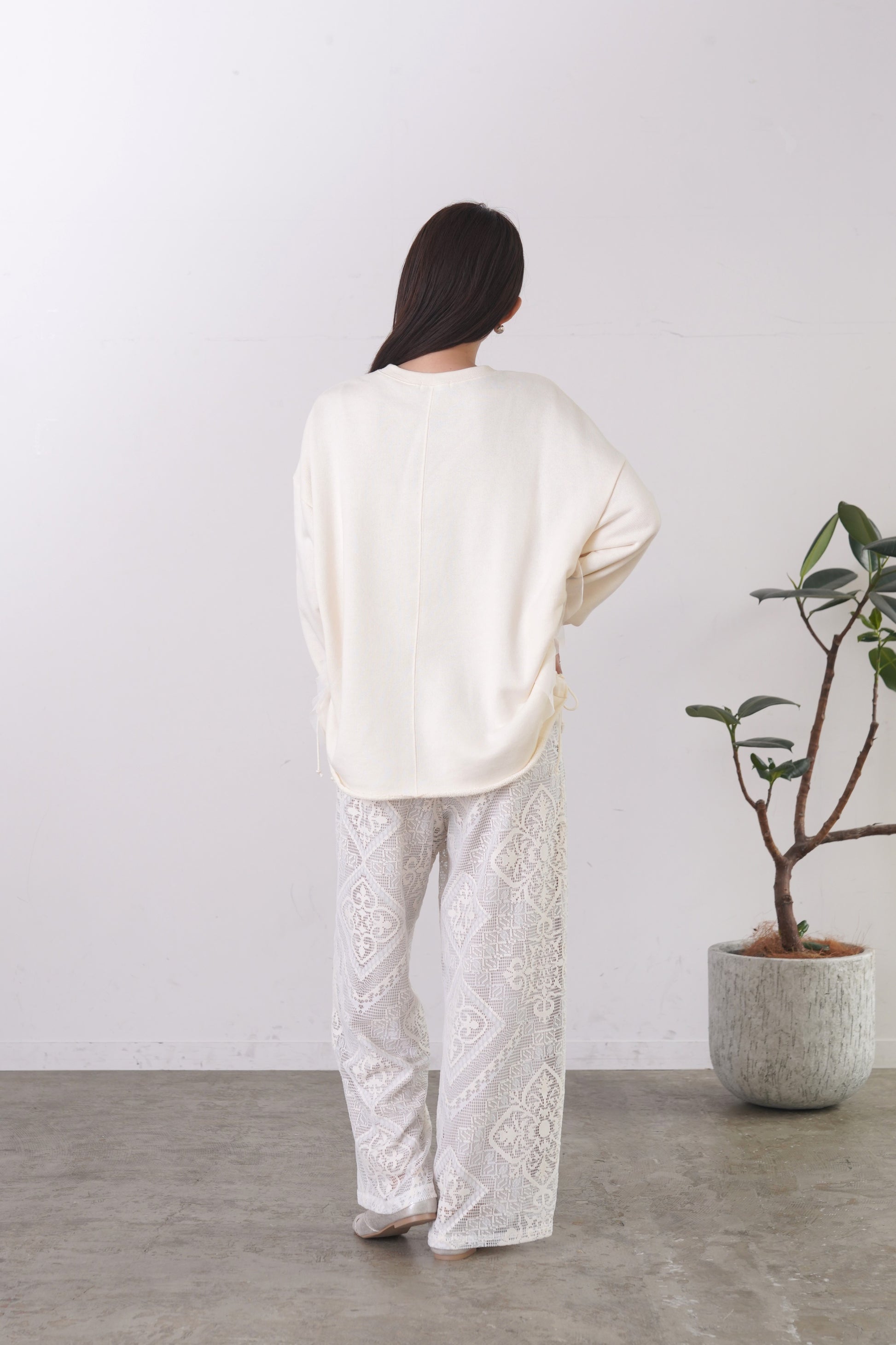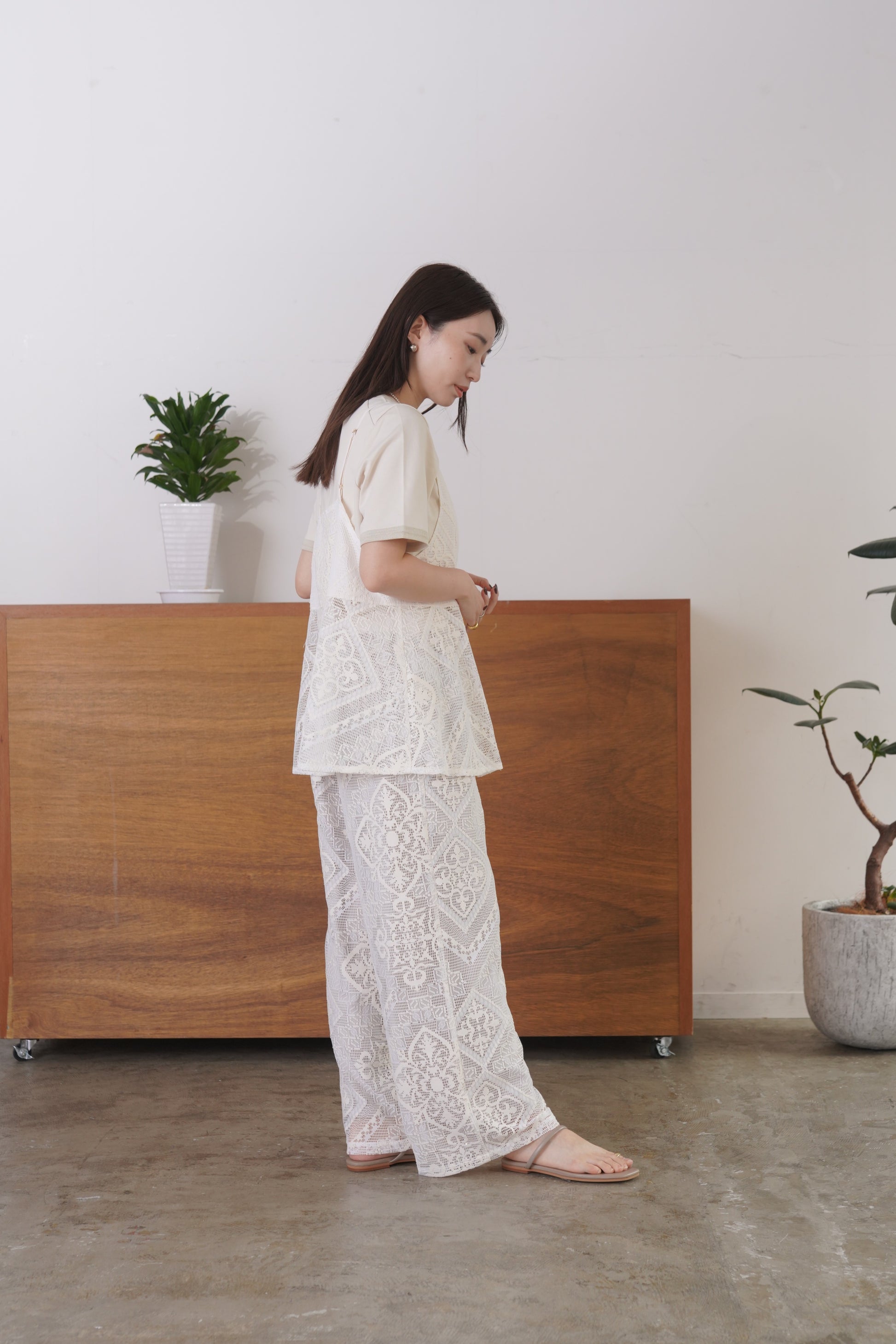 COMMENT▼ クラフト感がある大柄のラッセルレースパンツ。ストレッチ裏地が裾までついており、透けの心配はありません。ウエストは総ゴムで、ドローコードでサイズ調節ができます。同素材ビスチェとのセットアップもおすすめです。