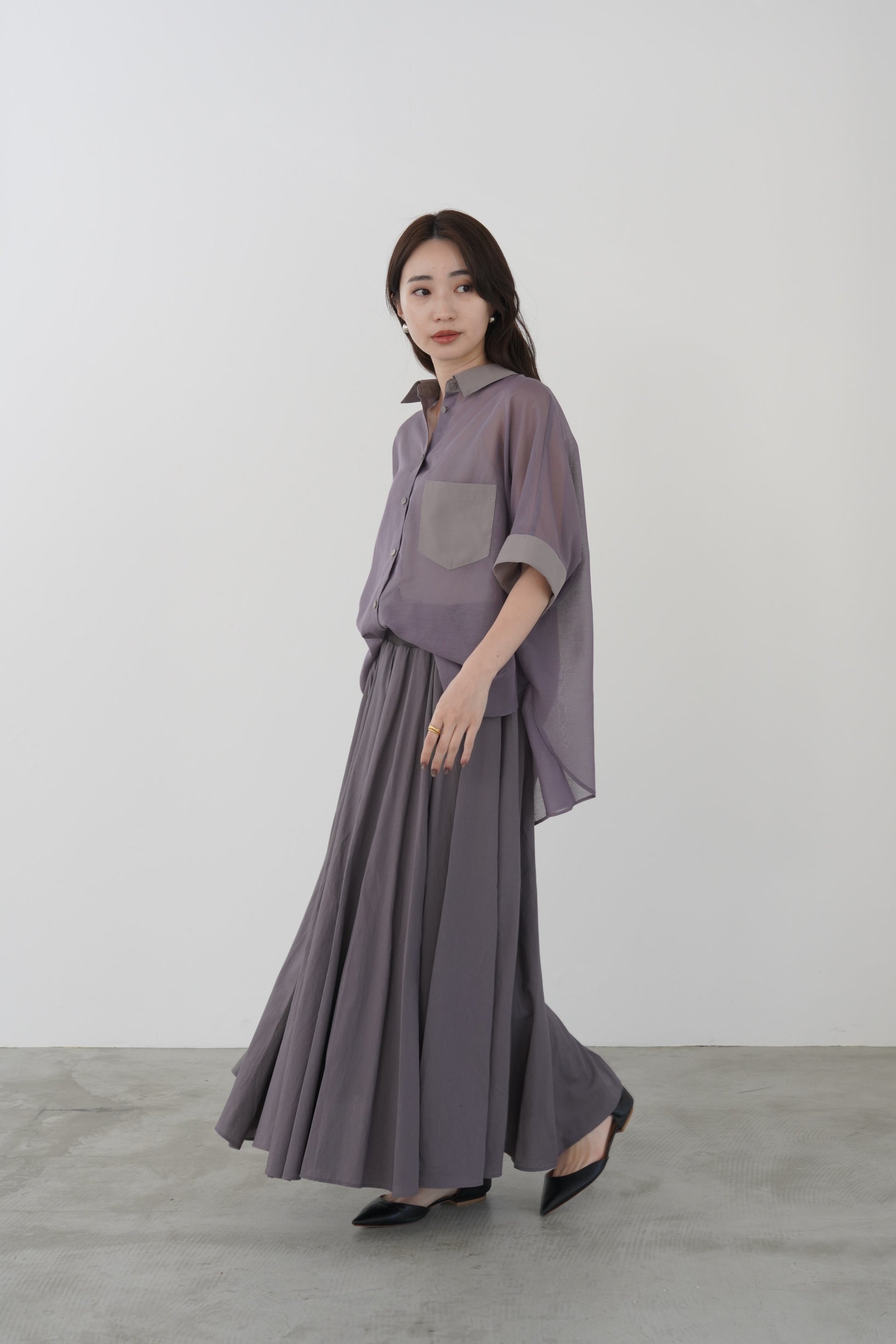 控えめな光沢のブライトスパンボイルのシャツ。襟、袖、ポケットを同色のタイプライターで切り替えて立体感を出しました。風を通す心地よい着心地ながら襟付きできちんと感もある、暑い季節のための万能シャツです。