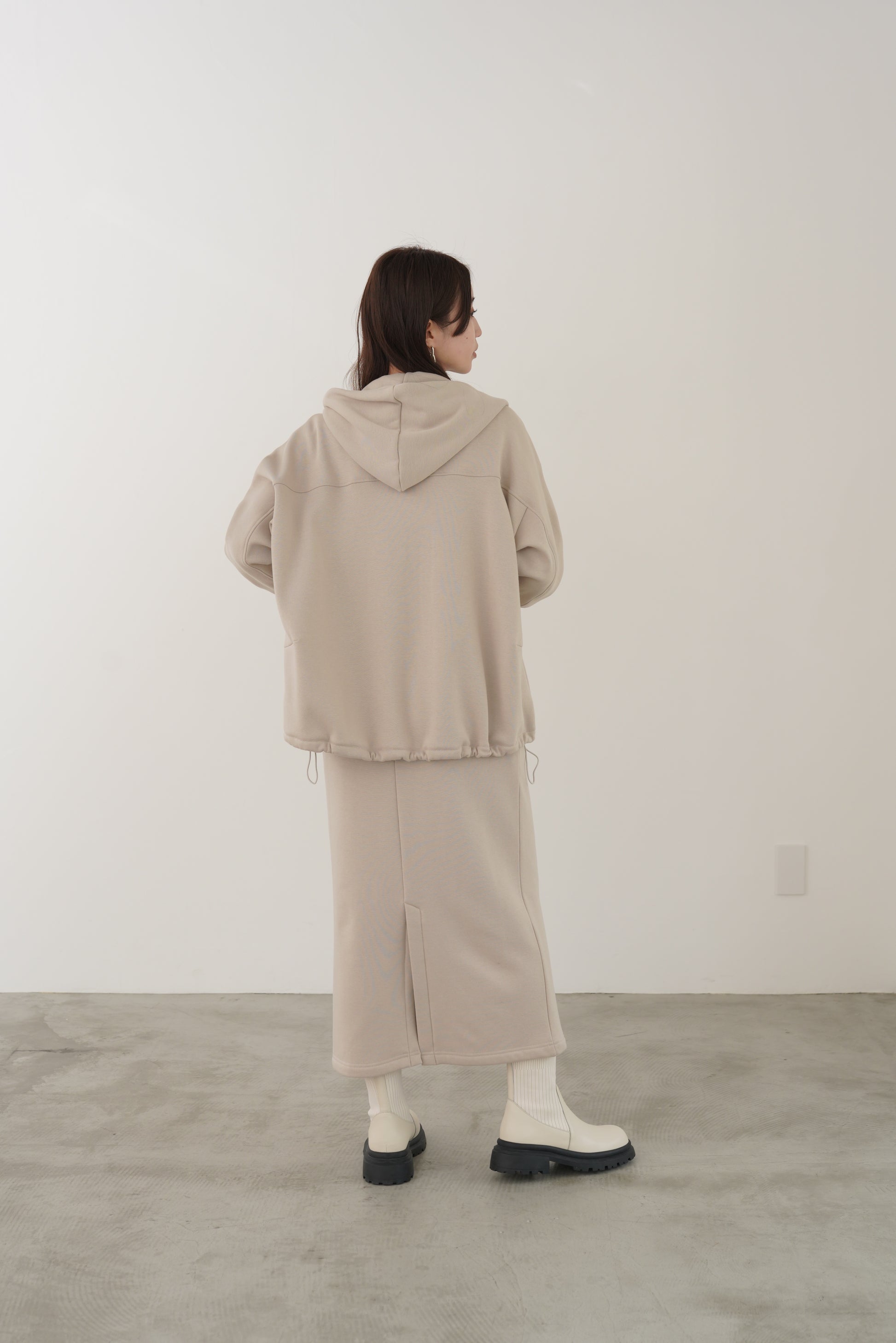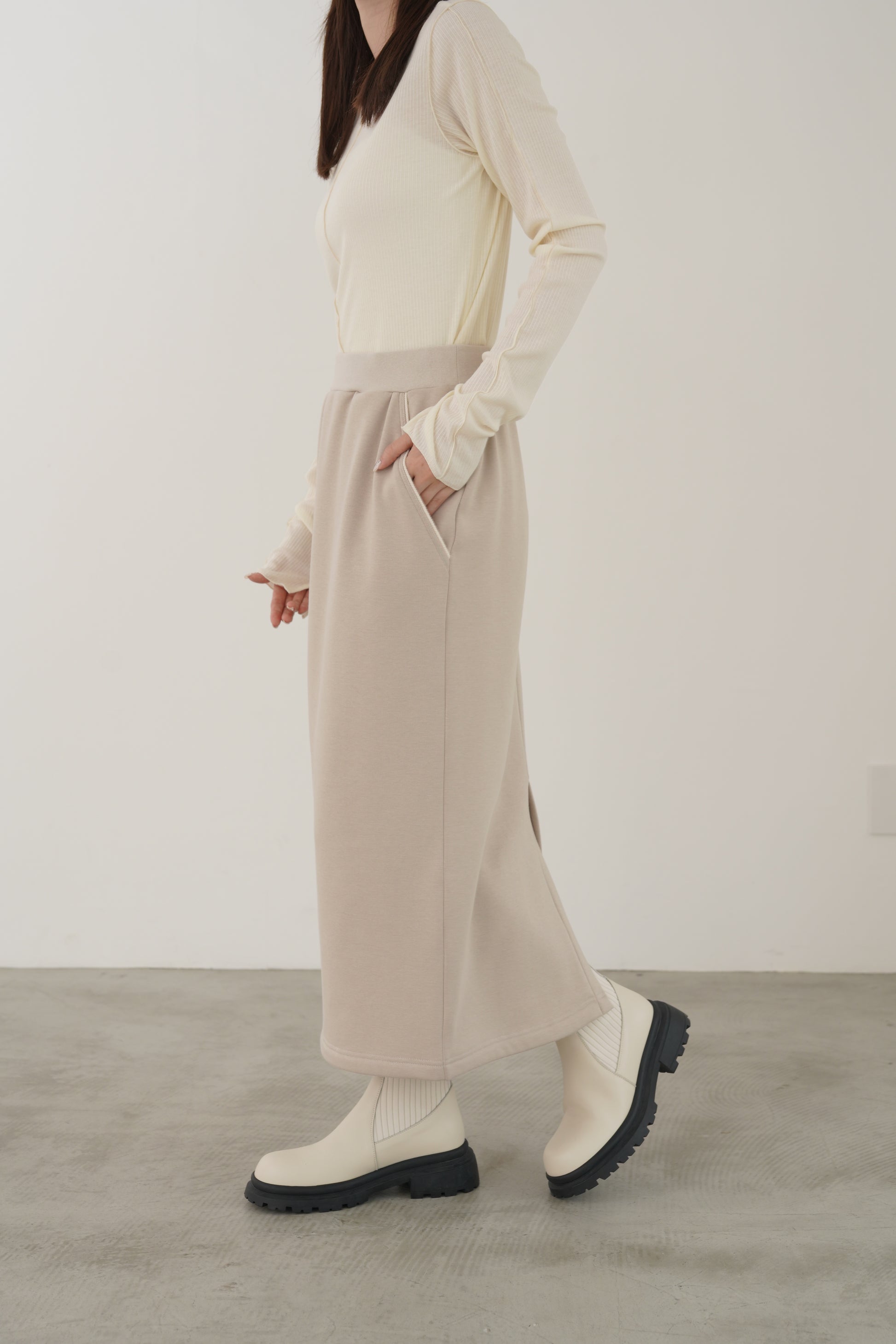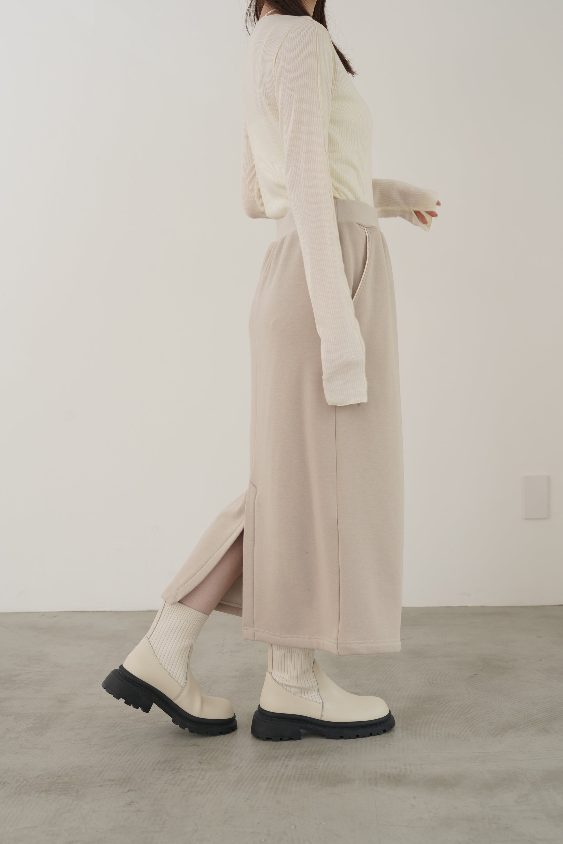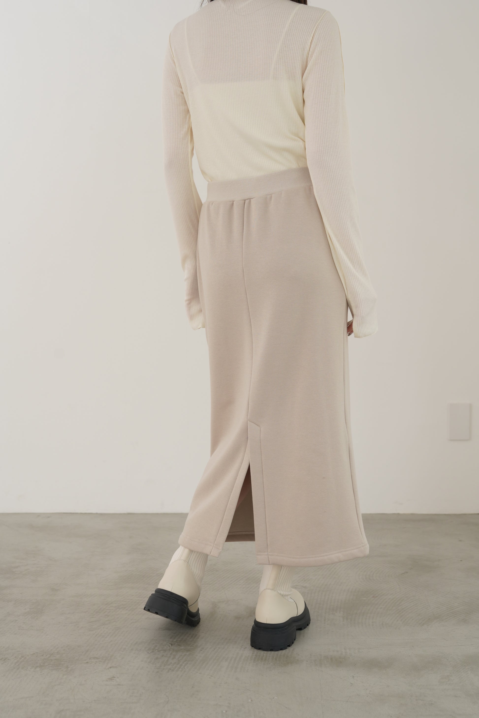 毛布に包まれるような、柔らかな裏起毛ムートン素材のタイトスカート。ストレッチの効いた着心地で、裏面には部分的に制電糸が使用されているため帯電防止性に優れています。ウインターシーズンに定番人気のタイトスカート型です。ポケット口のコードテープがシンプルなアクセント。