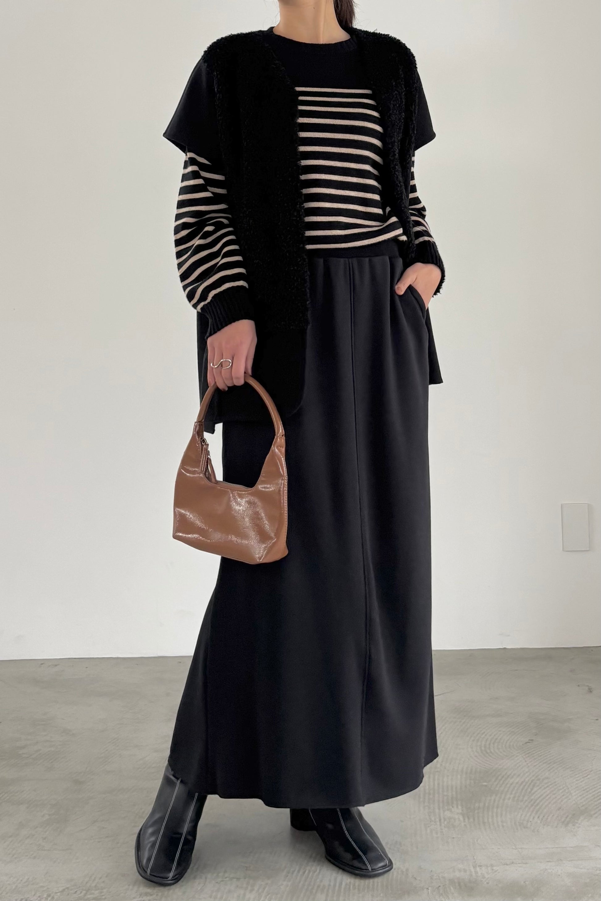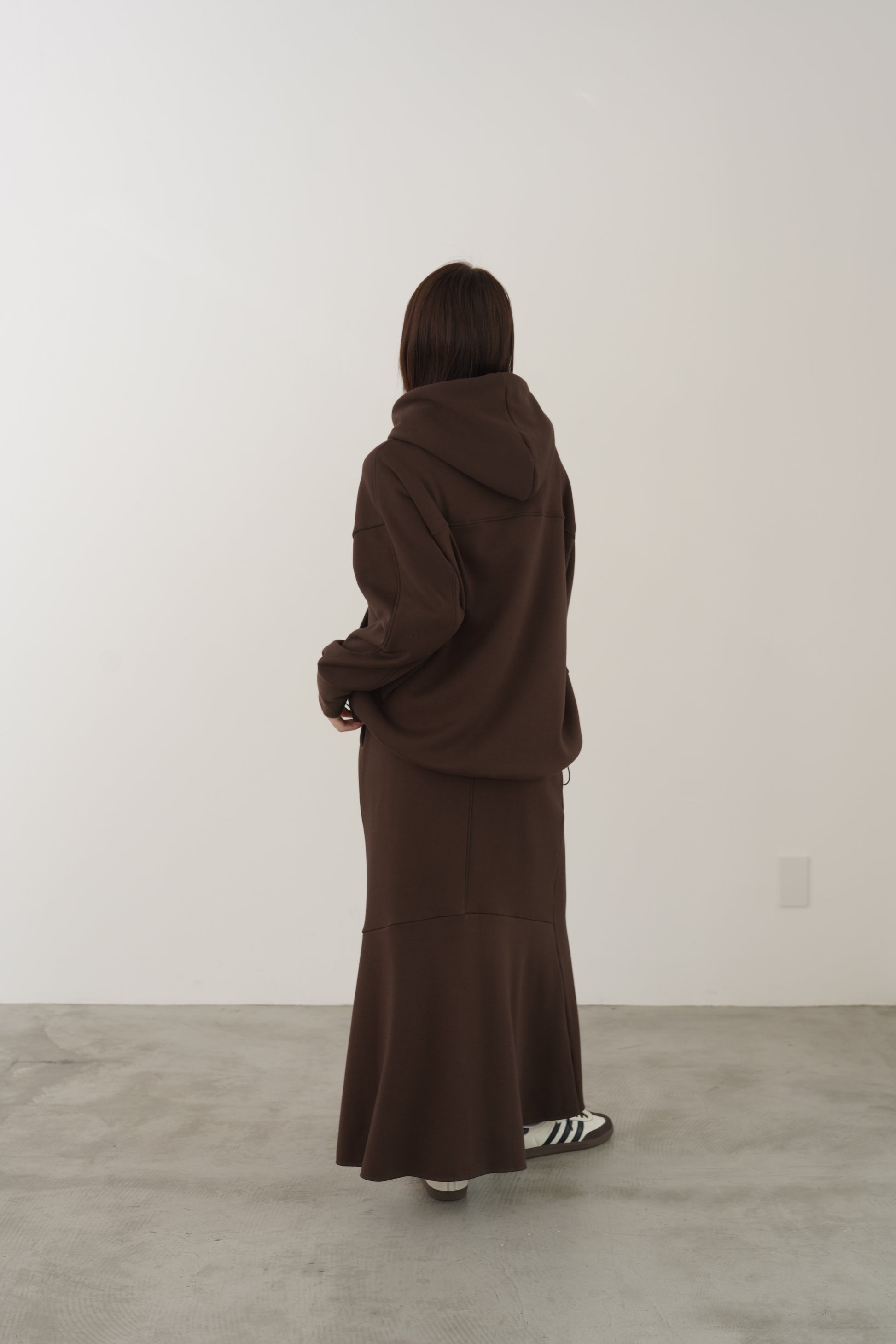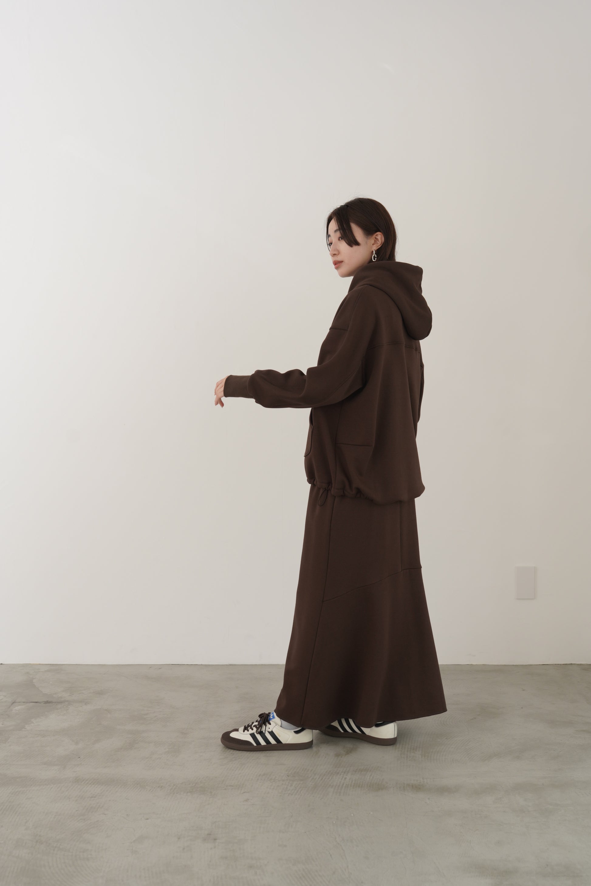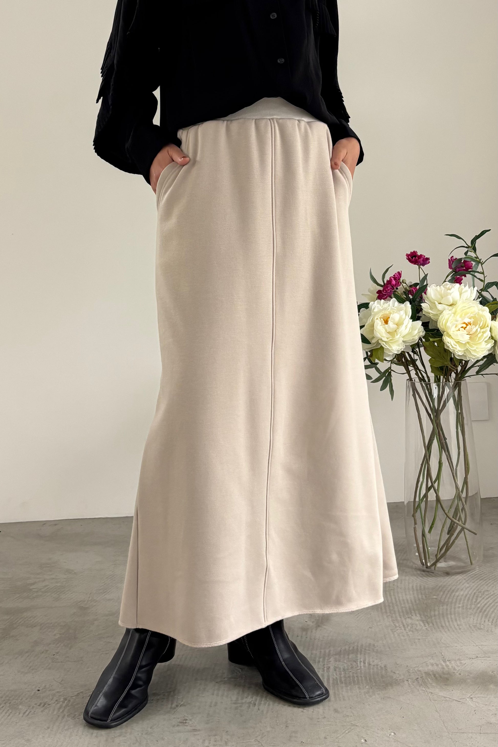 毛布に包まれるような、柔らかな裏起毛ムートン素材のフレアスカート。ストレッチの効いた着心地で、裏面には部分的に制電糸が使用されているため帯電防止性に優れています。バックスタイルの切り替えから波打つフレアがきれいで、足捌きも良いスカートです。