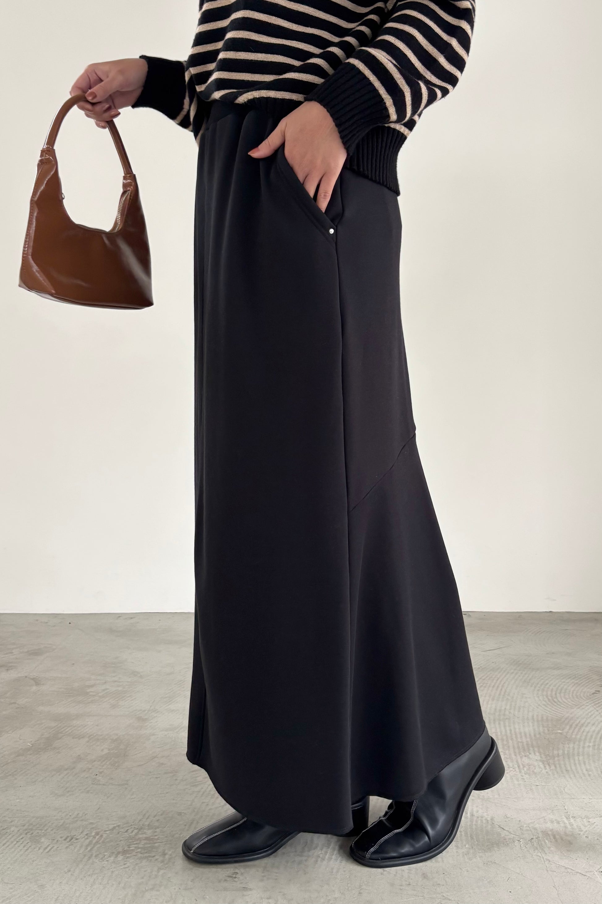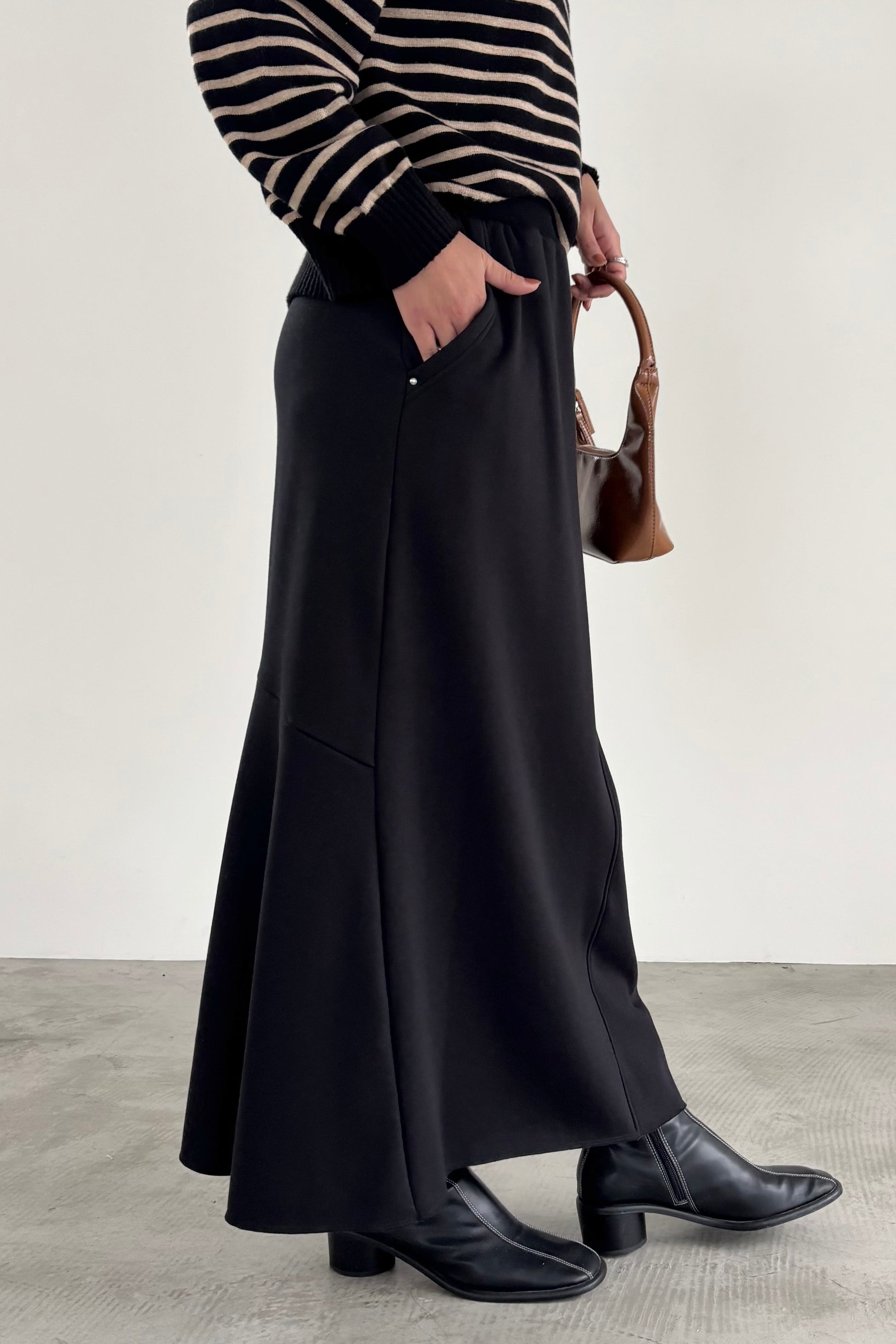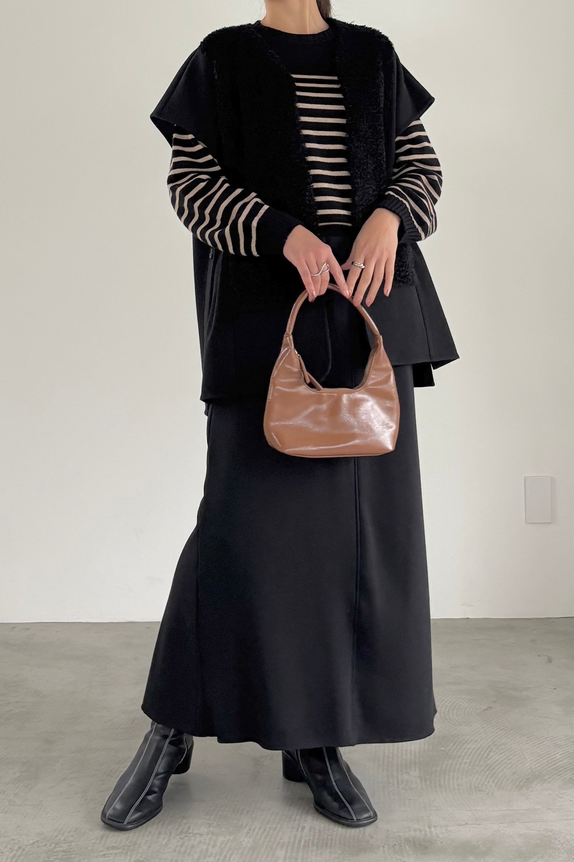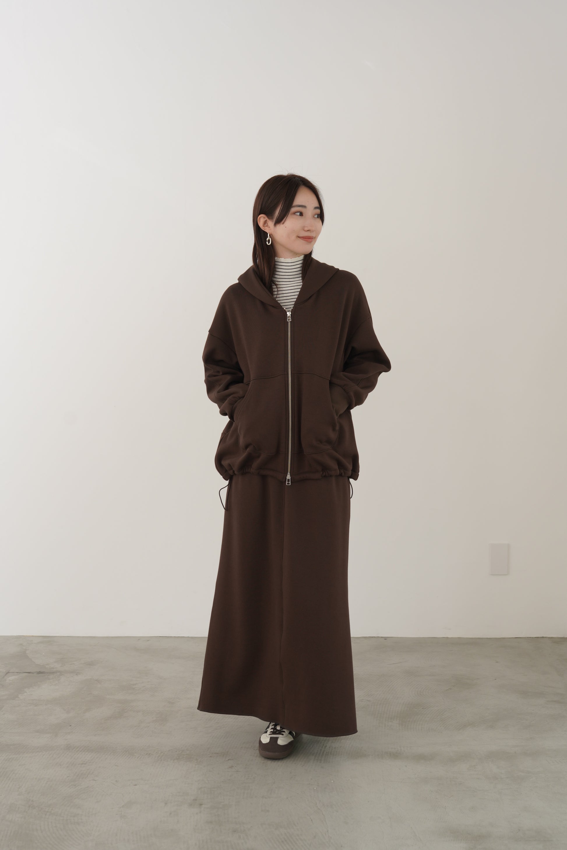 毛布に包まれるような、柔らかな裏起毛ムートン素材のフレアスカート。ストレッチの効いた着心地で、裏面には部分的に制電糸が使用されているため帯電防止性に優れています。バックスタイルの切り替えから波打つフレアがきれいで、足捌きも良いスカートです。