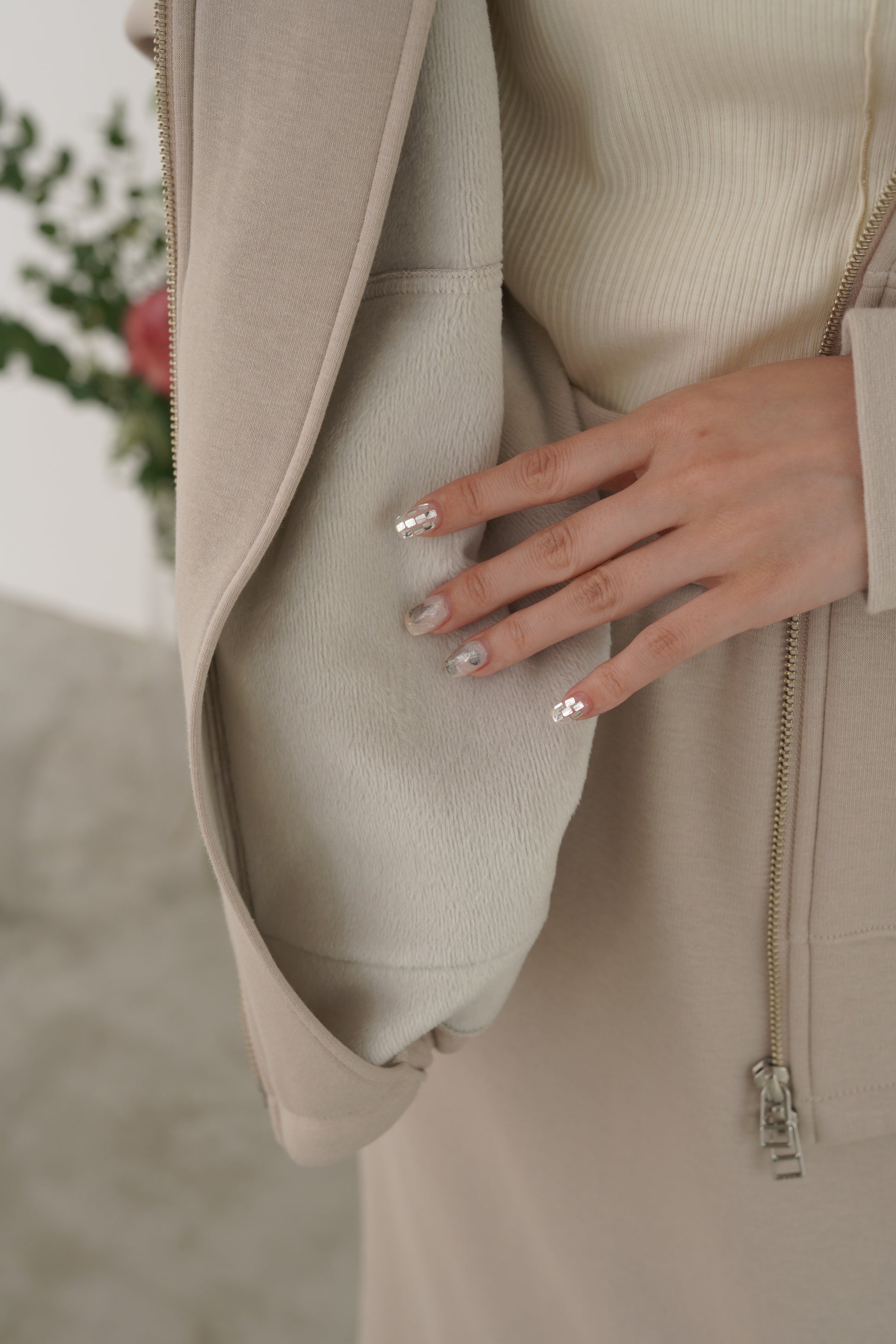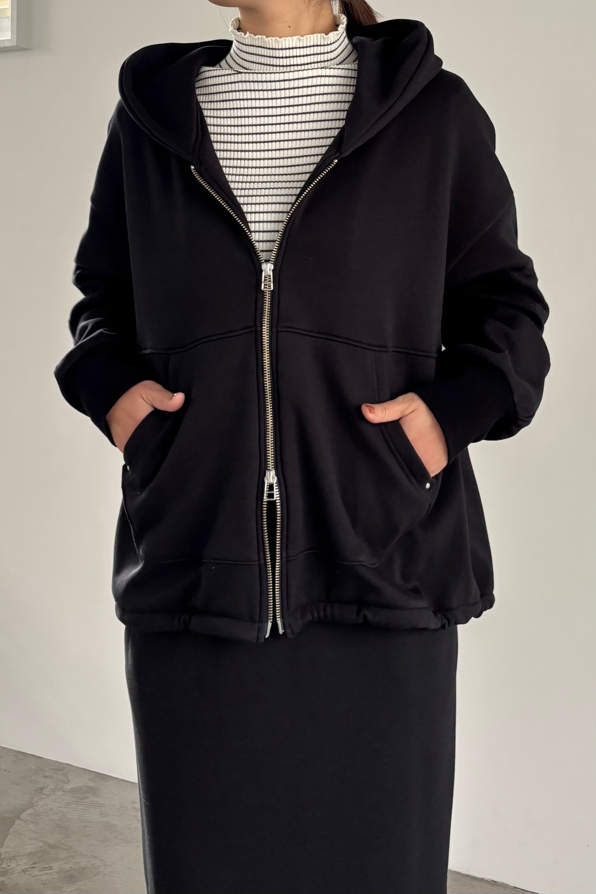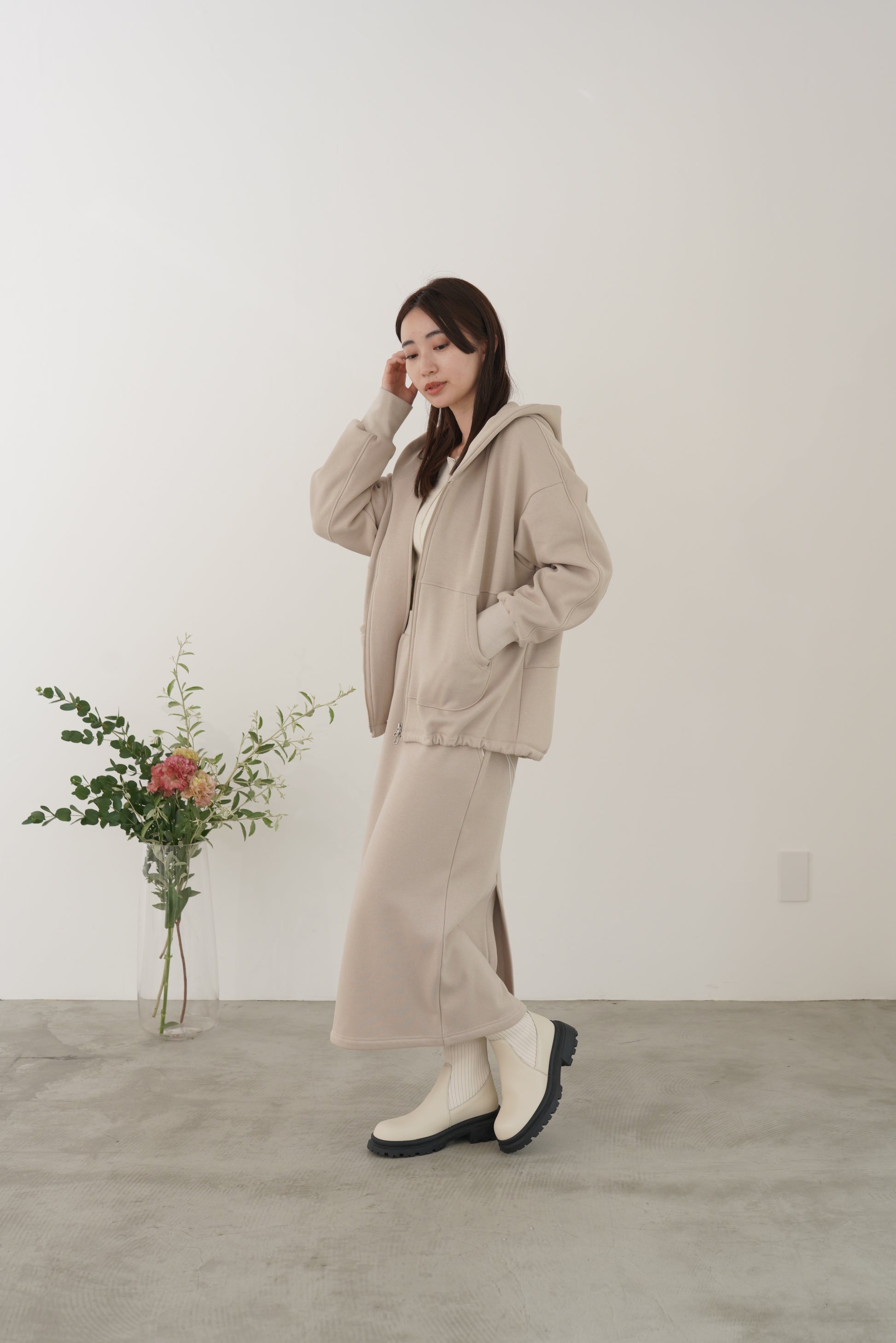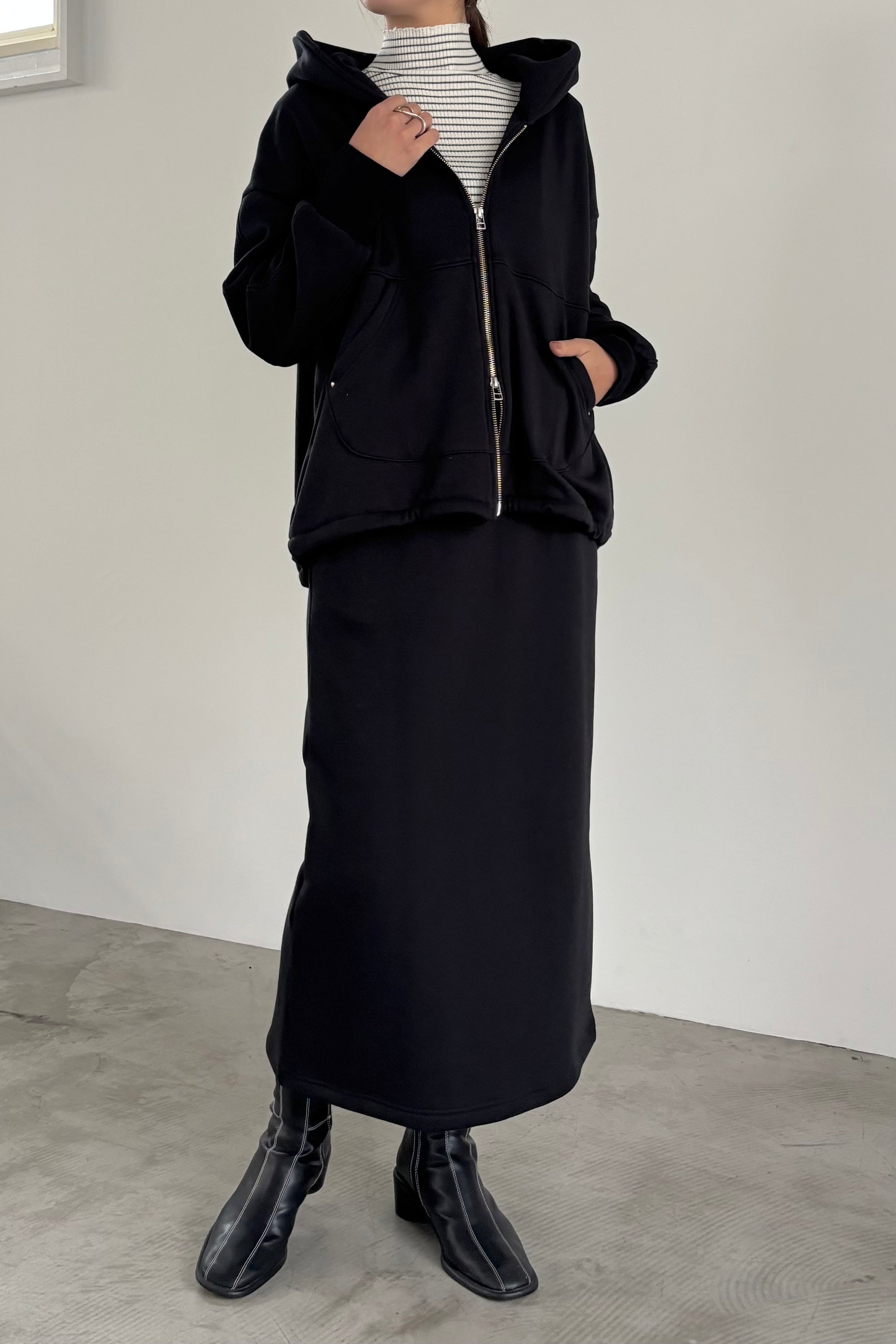 毛布に包まれるような、柔らかな裏起毛ムートン素材のブルゾン。ストレッチの効いた着心地で、裏面には部分的に制電防止糸が使用されているため帯電防止に優れています。中に着込みやすく気軽に羽織れるサイズ感で、デイリーに活躍するブルゾンです。