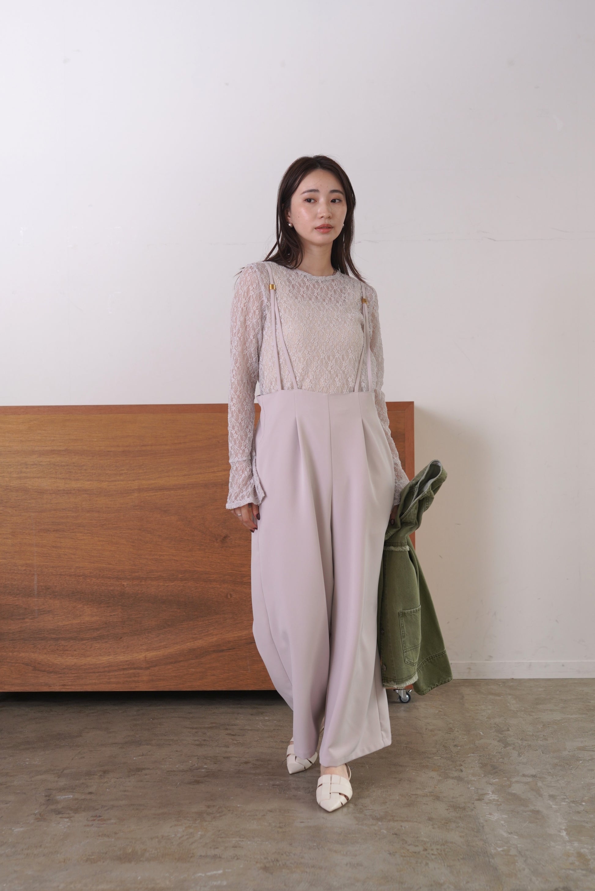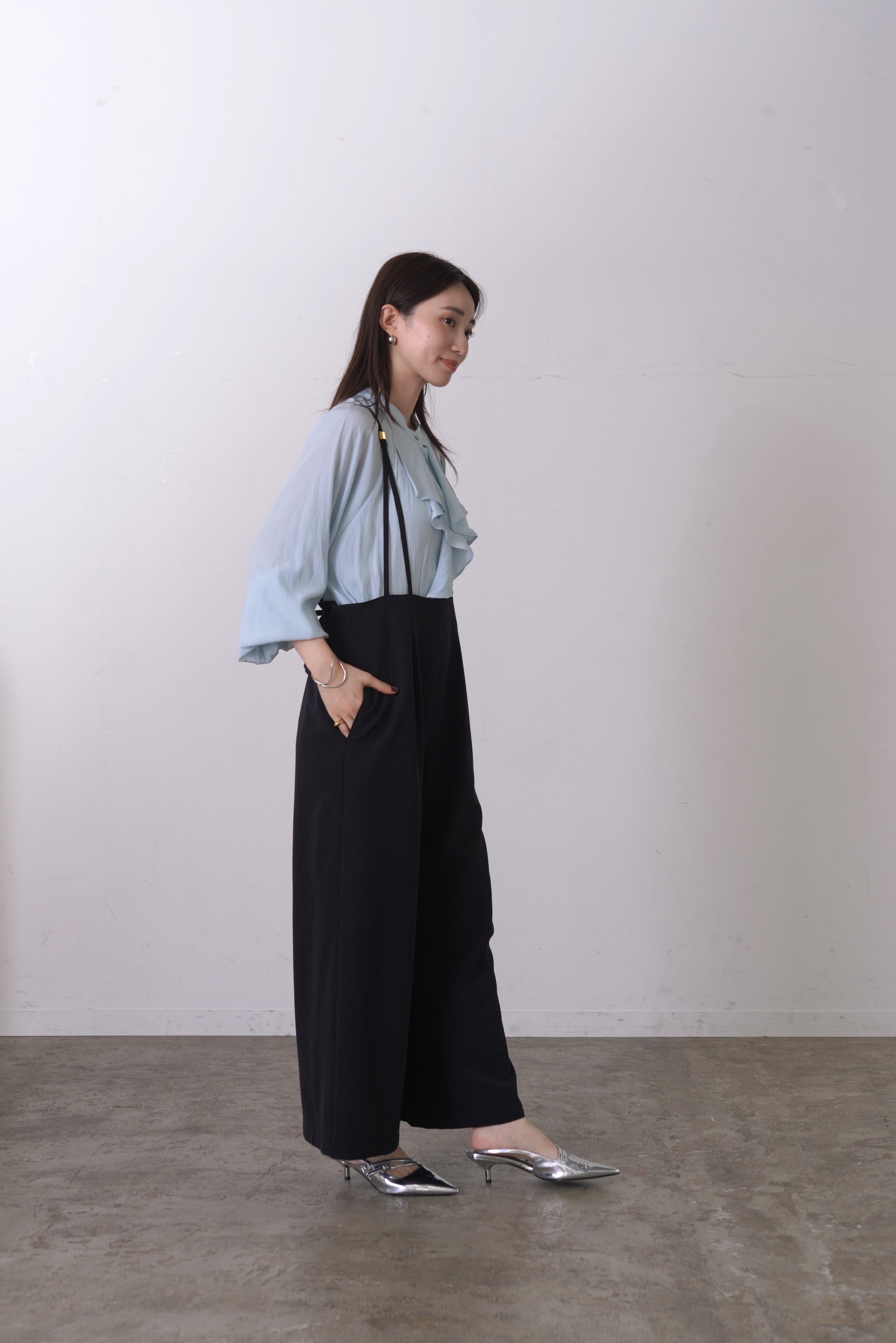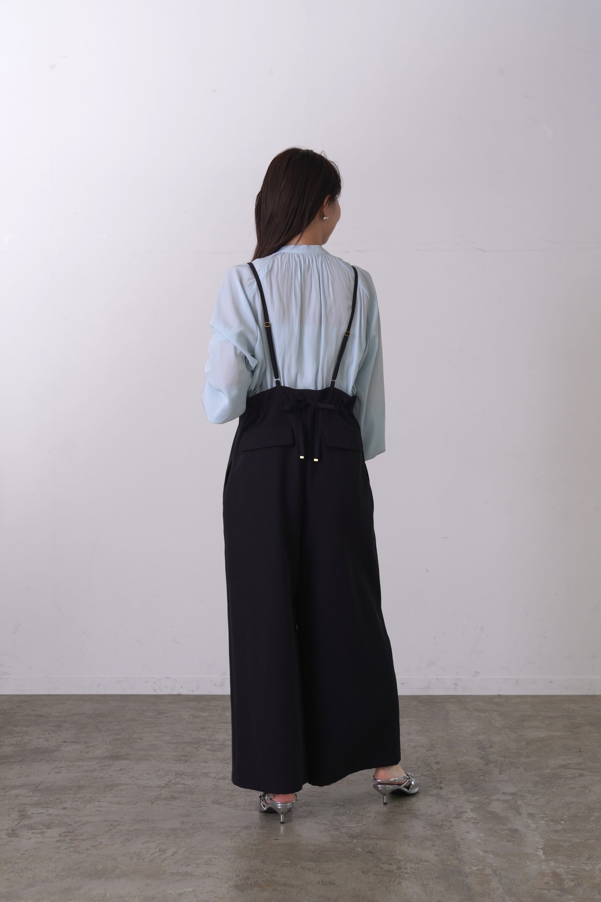 minkchair定番人気のダブルクロスサロペット。イージーケア、防シワ、抗ピリング、ストレッチ性に優れた軽量のダブルクロス素材を使用しています。後身頃のリボンでウエストの調節ができ、どんな体型の方にもアジャストするサイズ感が人気のポイント。