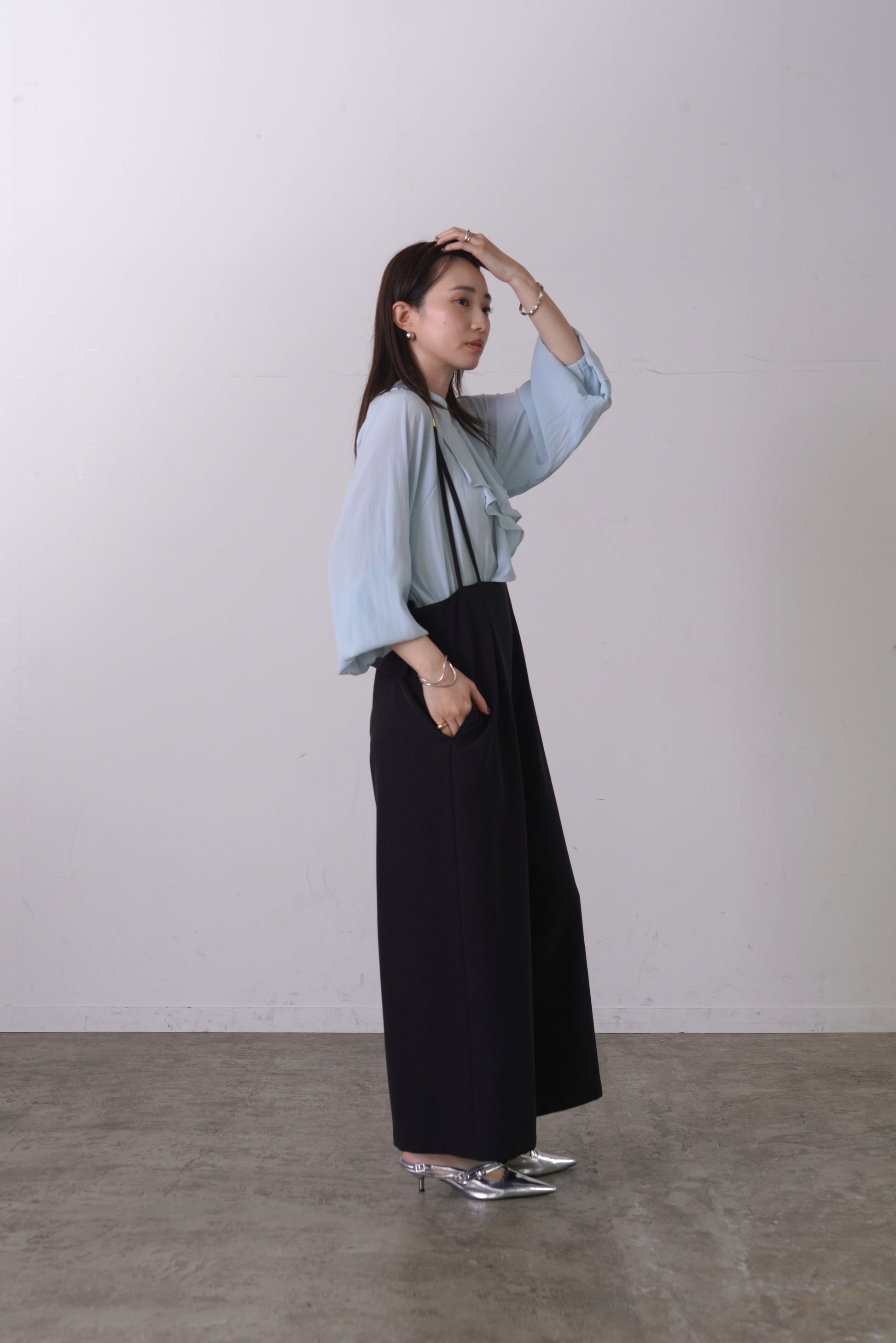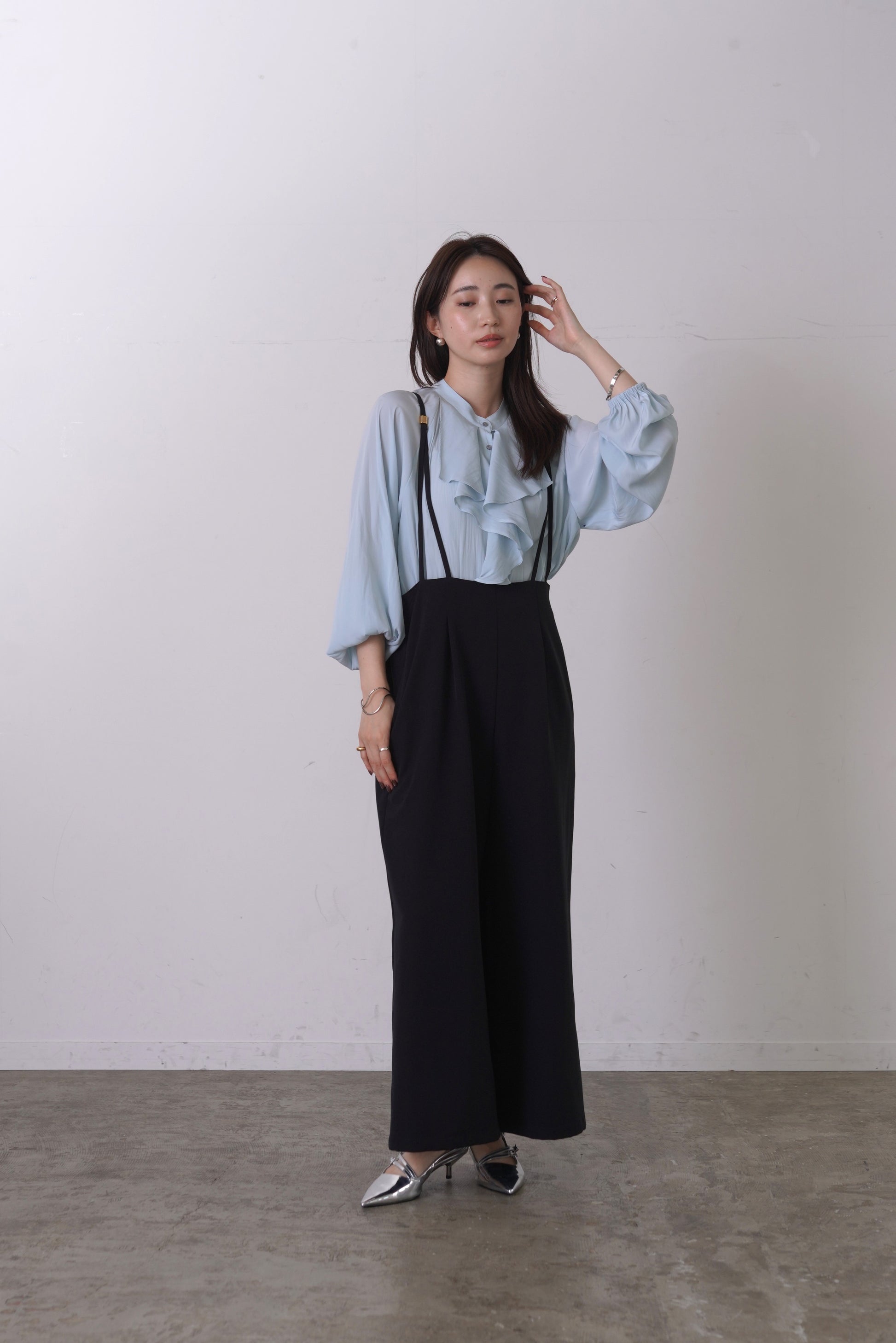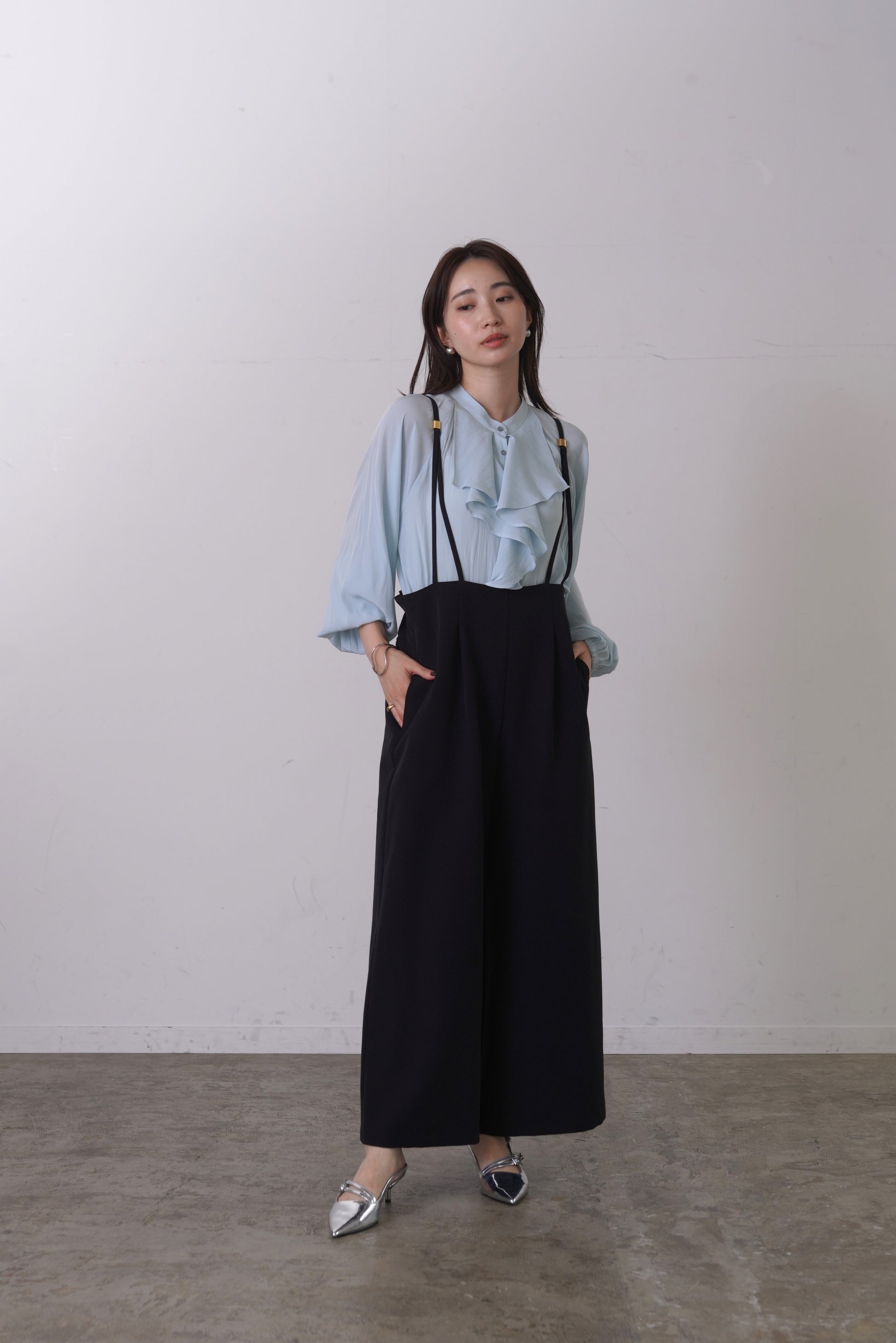 minkchair定番人気のダブルクロスサロペット。イージーケア、防シワ、抗ピリング、ストレッチ性に優れた軽量のダブルクロス素材を使用しています。後身頃のリボンでウエストの調節ができ、どんな体型の方にもアジャストするサイズ感が人気のポイント。