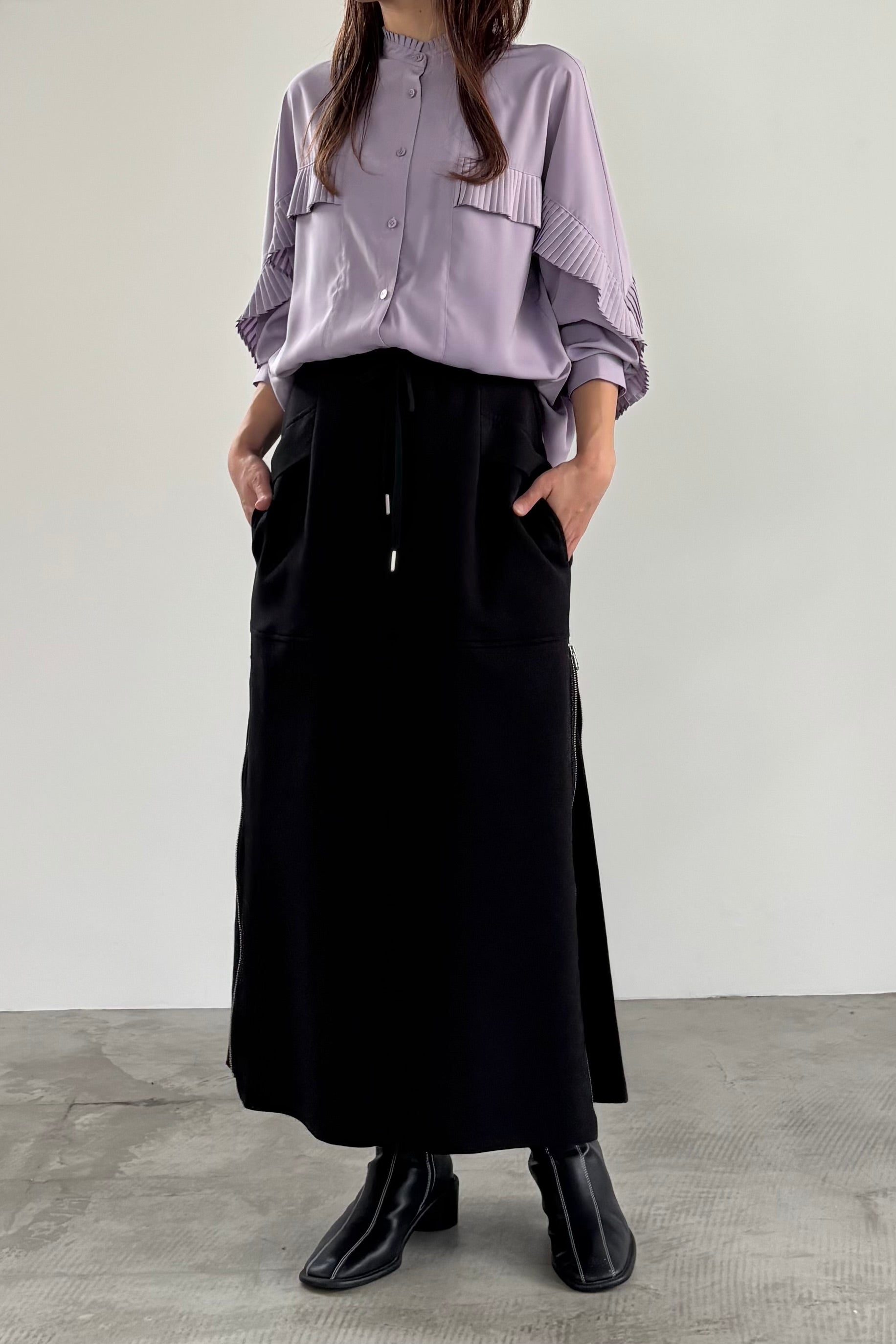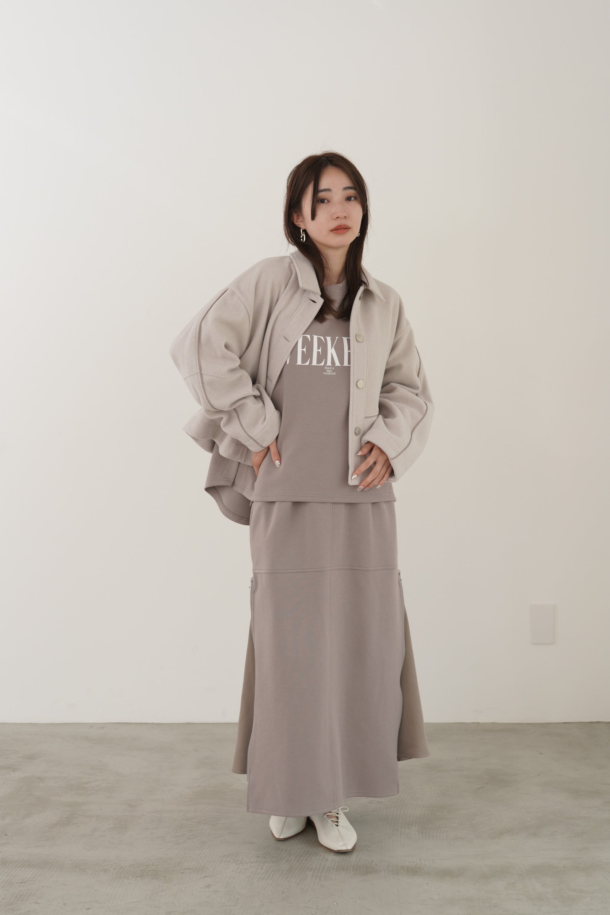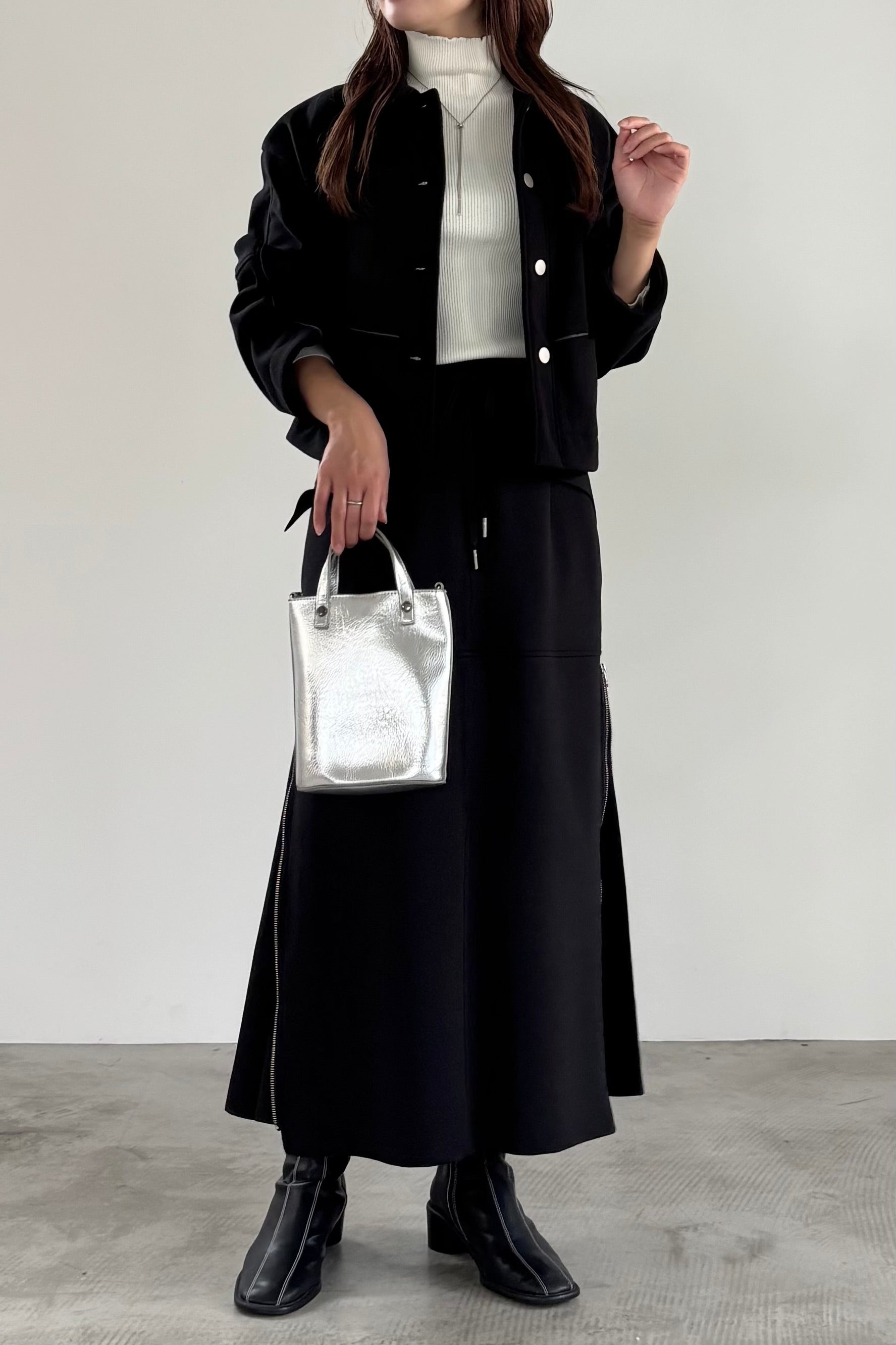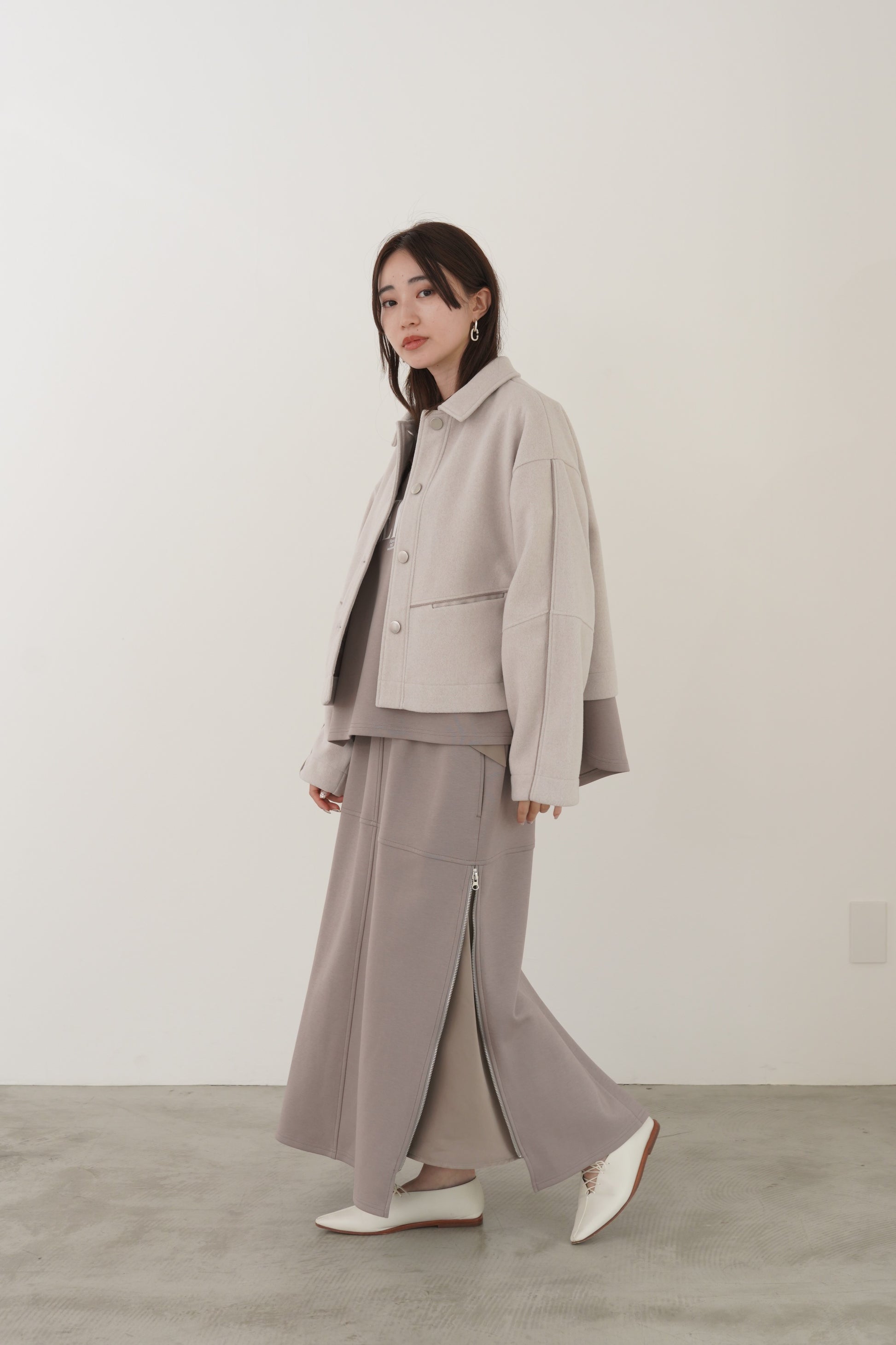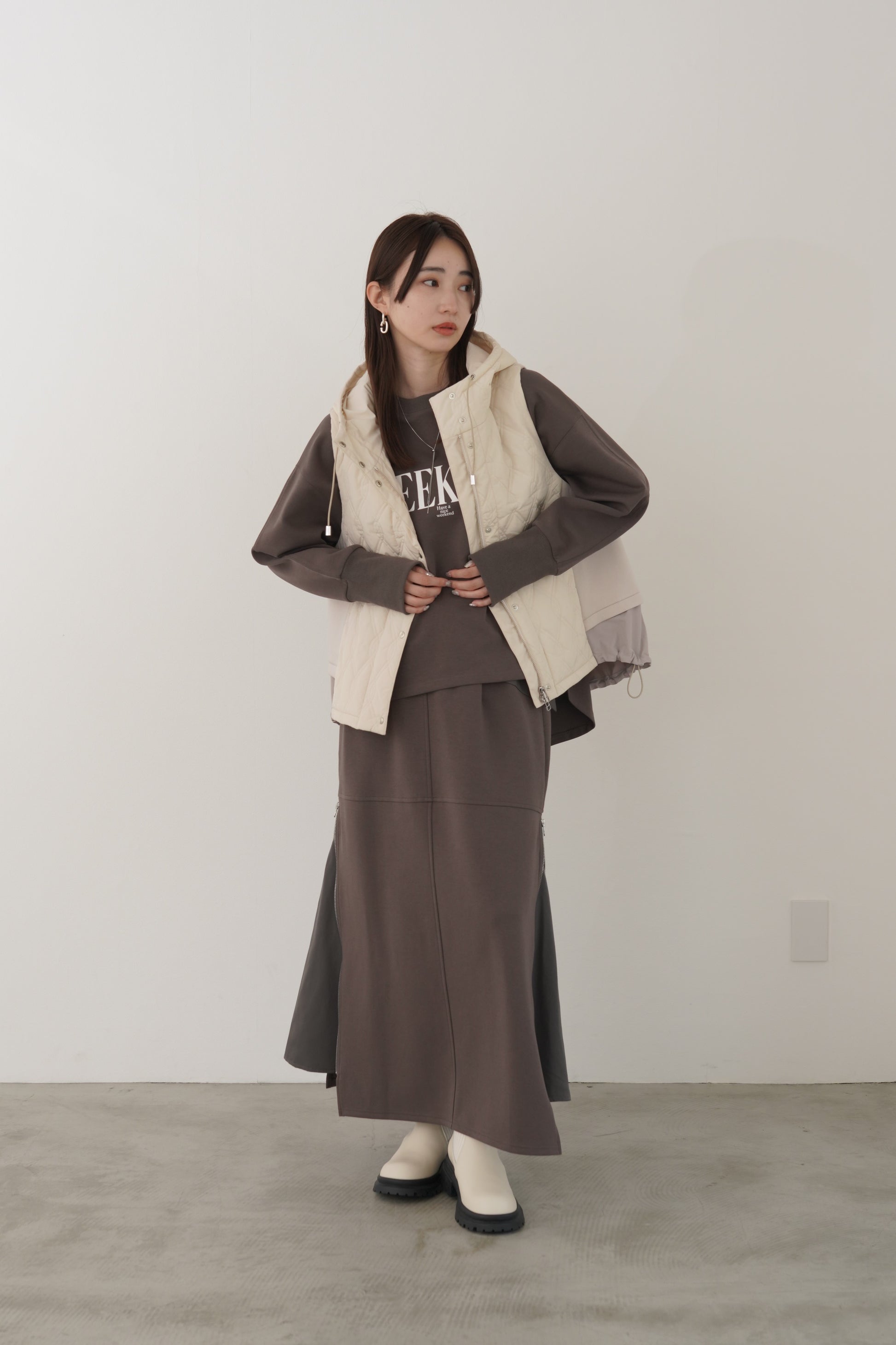 ハリ感となめらかさを併せ持つダンボールニットのタイトスカート。安心感のある肉感でストレッチ性も高く着心地は抜群です。サイドのファスナーを開けるとツヤのあるツイルがのぞき、動くたびに揺れるフレアツイルが女性らしいスカートです。