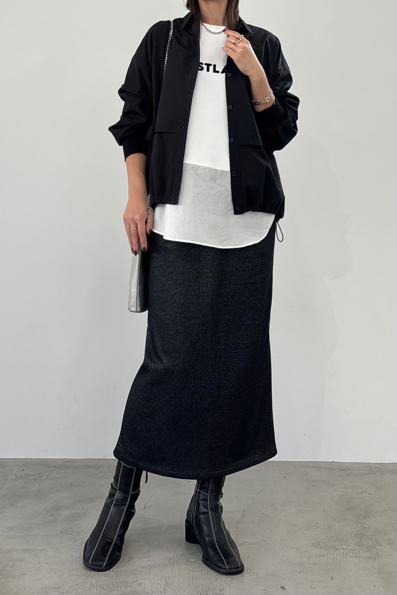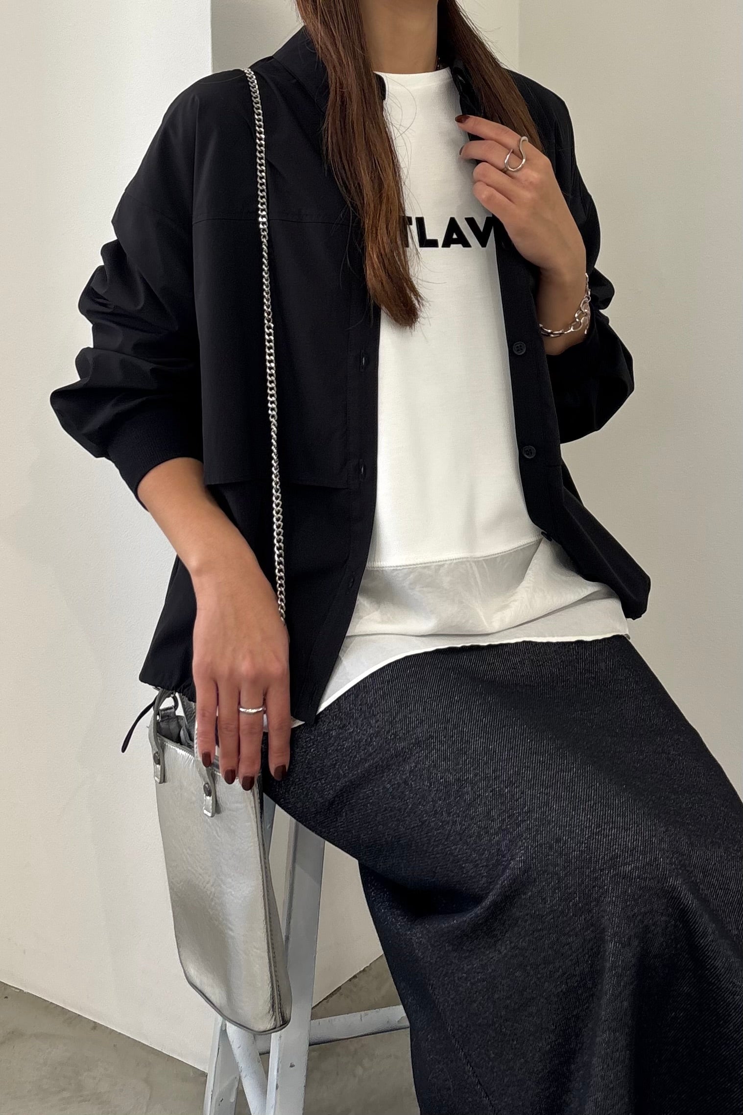 アイコンディテールのティアードシャツブルゾン。コットンライクの風合いのポリエステル素材でストレッチ性があり気楽に羽織れるややオーバーサイズに仕上げています。シーズンレスに長く活躍するライトブルゾンです。