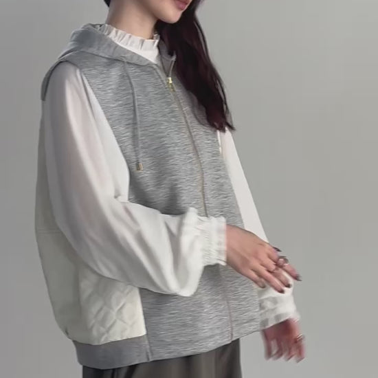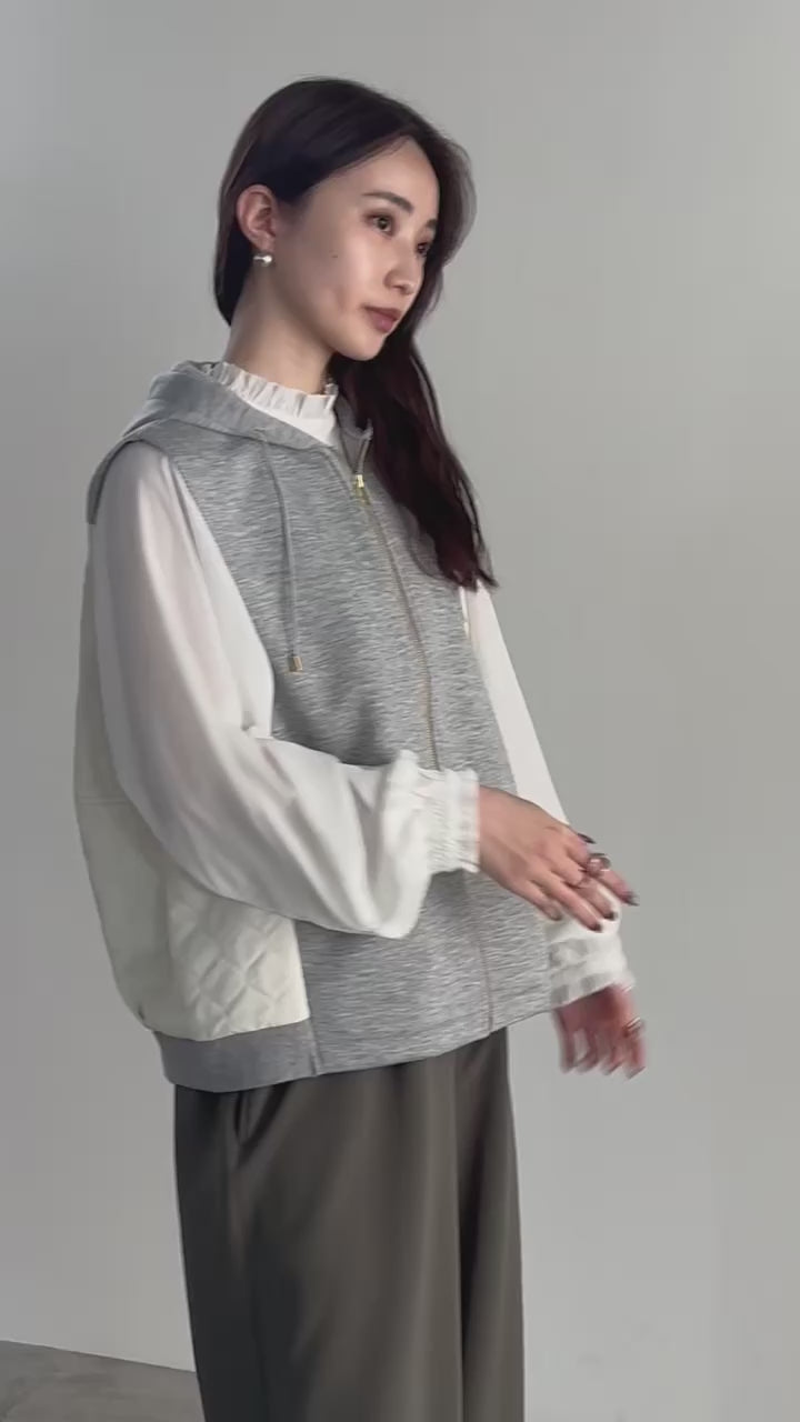 minkchair定番人気のボンディングニットベスト。後ろ見頃をライトキルト素材で仕立て、切替とタックで丸みのあるコクーンシルエットに仕上げました。さっと羽織れてシーズンレスに活躍する1着です。