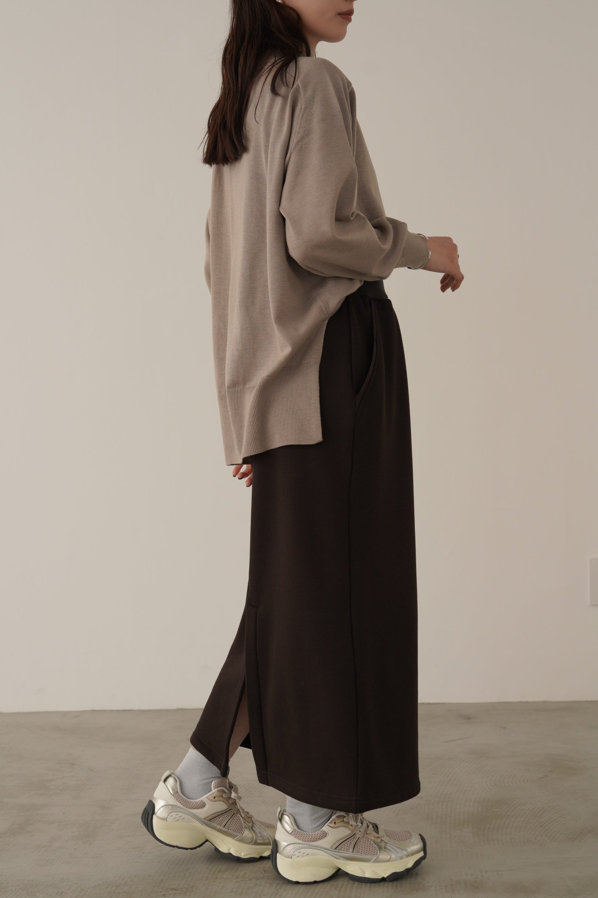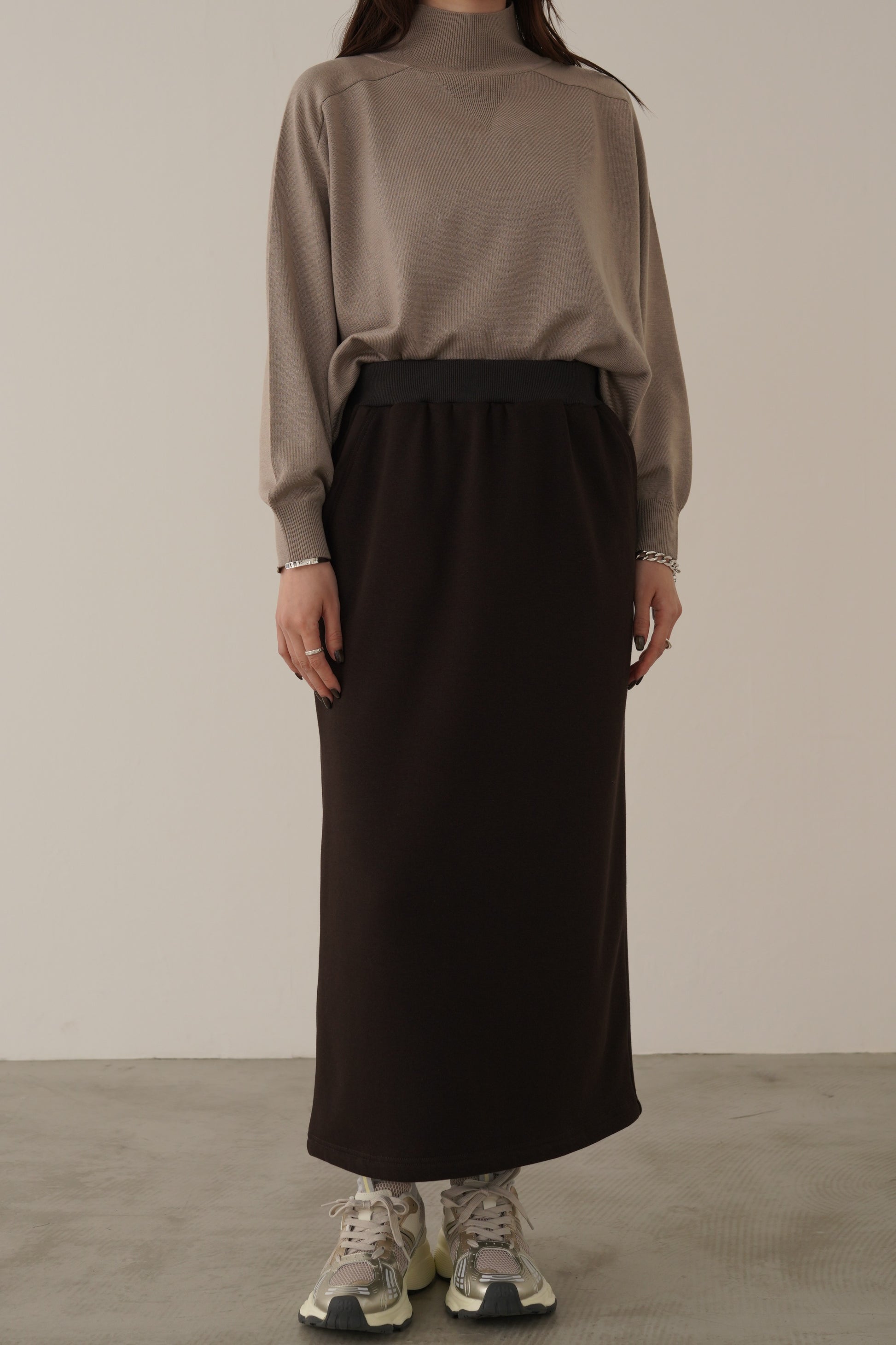 毛布に包まれているような着心地の柔らかな裏起毛のボンバーヒート素材のスカート。