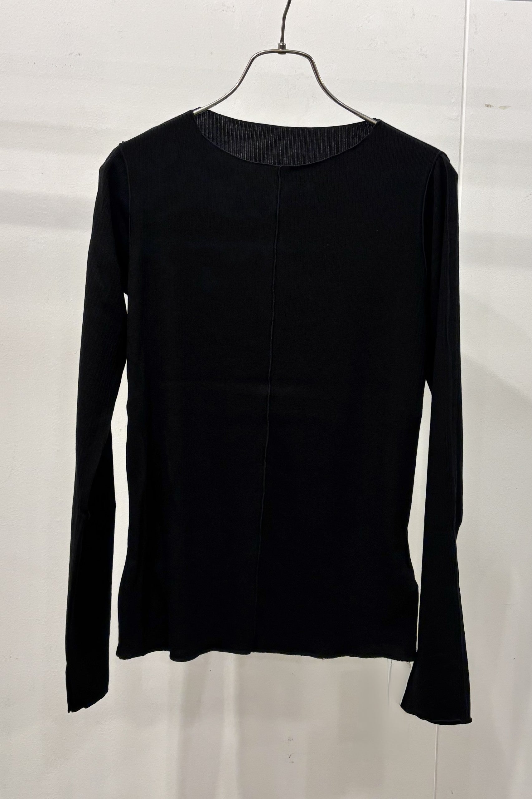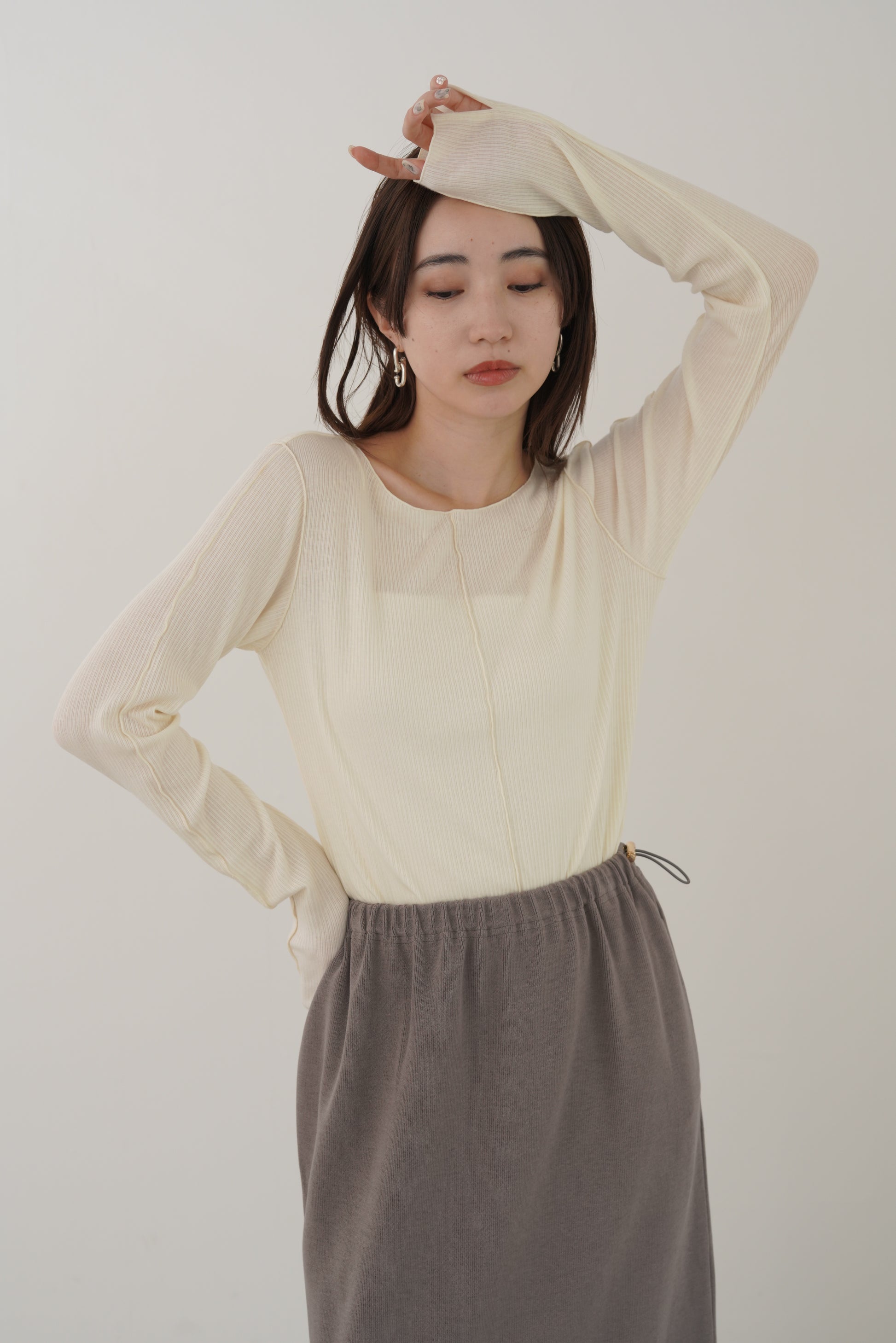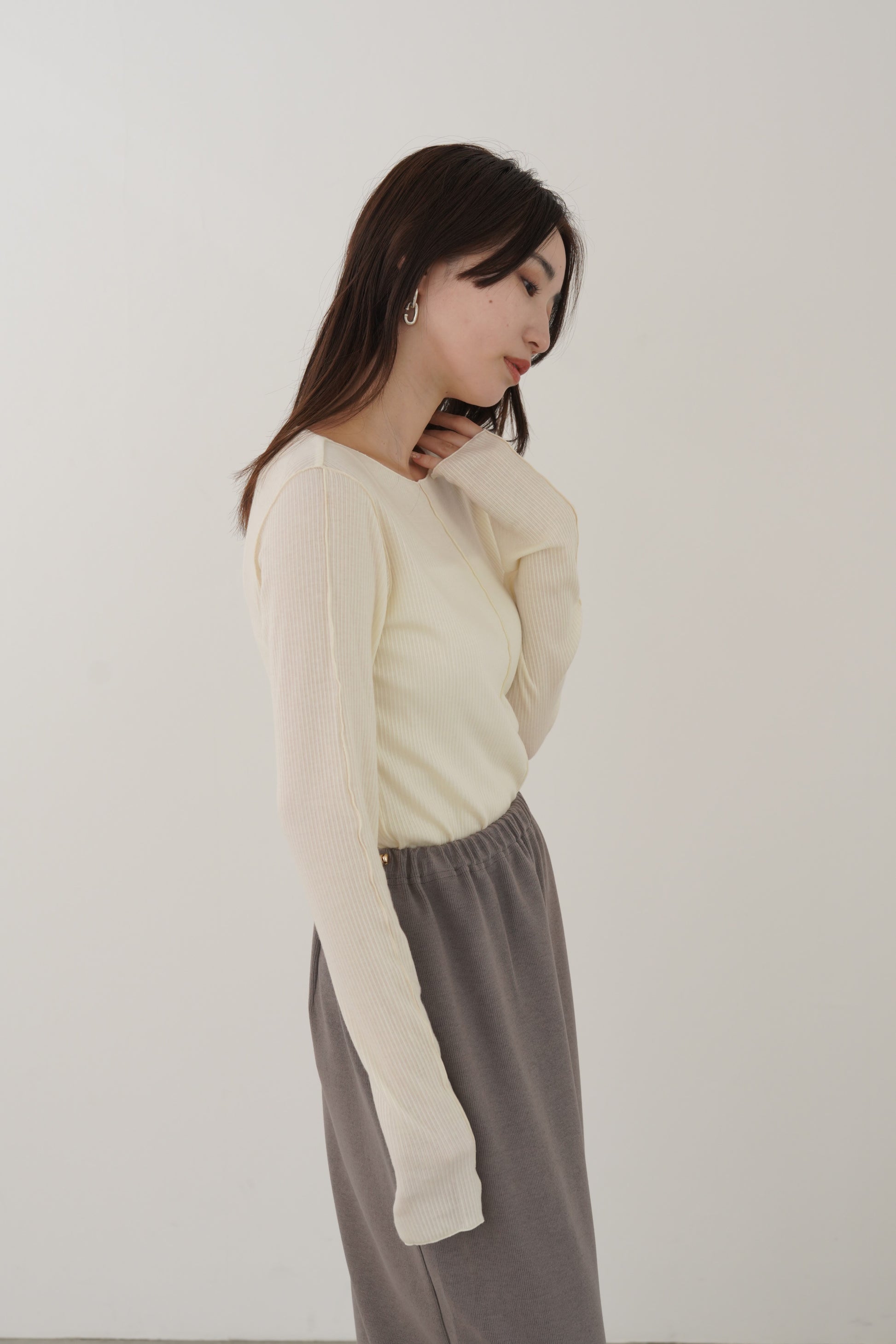 カシミヤ/シルクが混紡された、極上の肌触りのテンセルベロアテレコカットソー。リッチな風合いで、心地よいストレッチ性も兼ね備えています。ミシン始末をメロー仕上にし、1枚で着用してもデザインのあるカットソーに仕上げました。