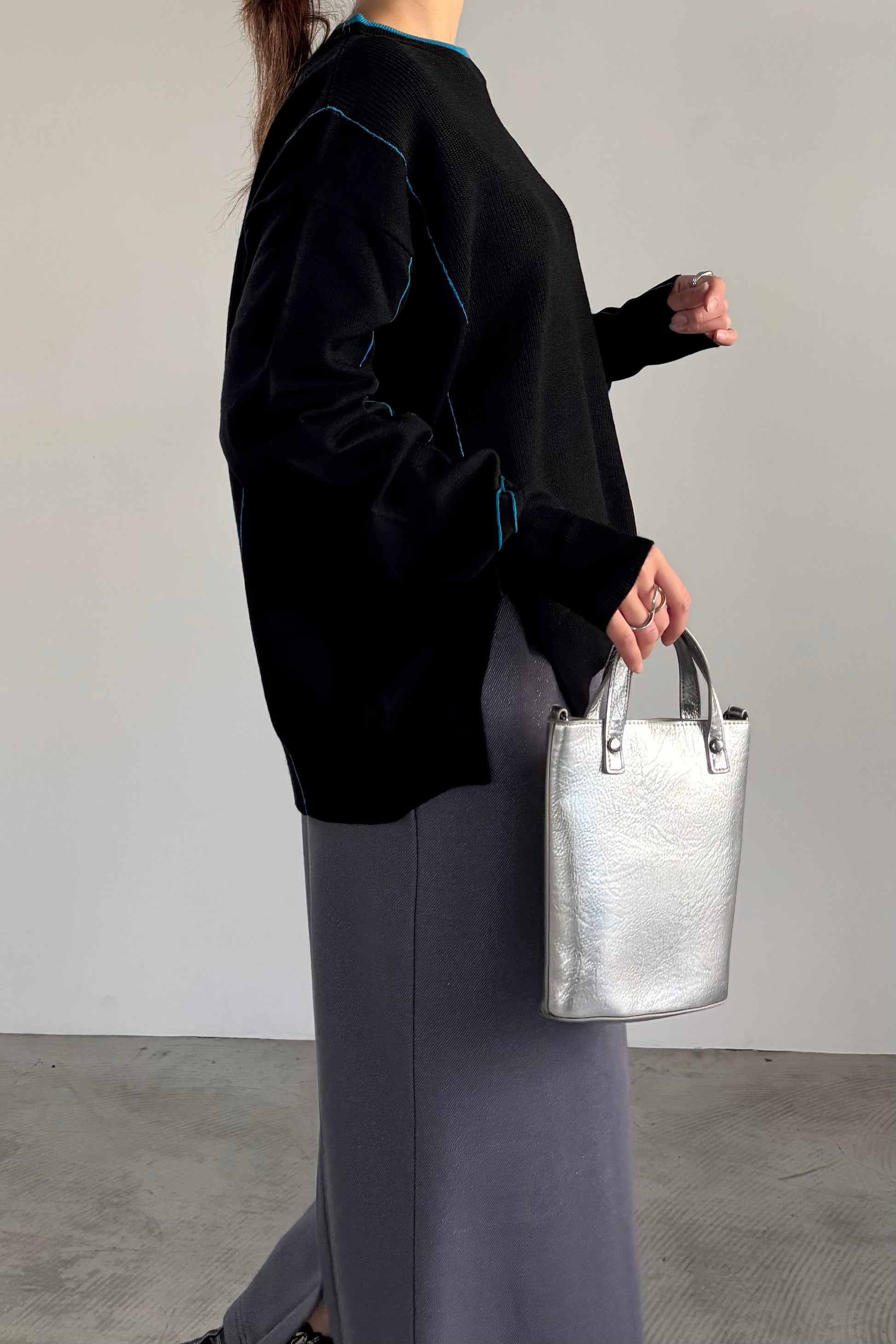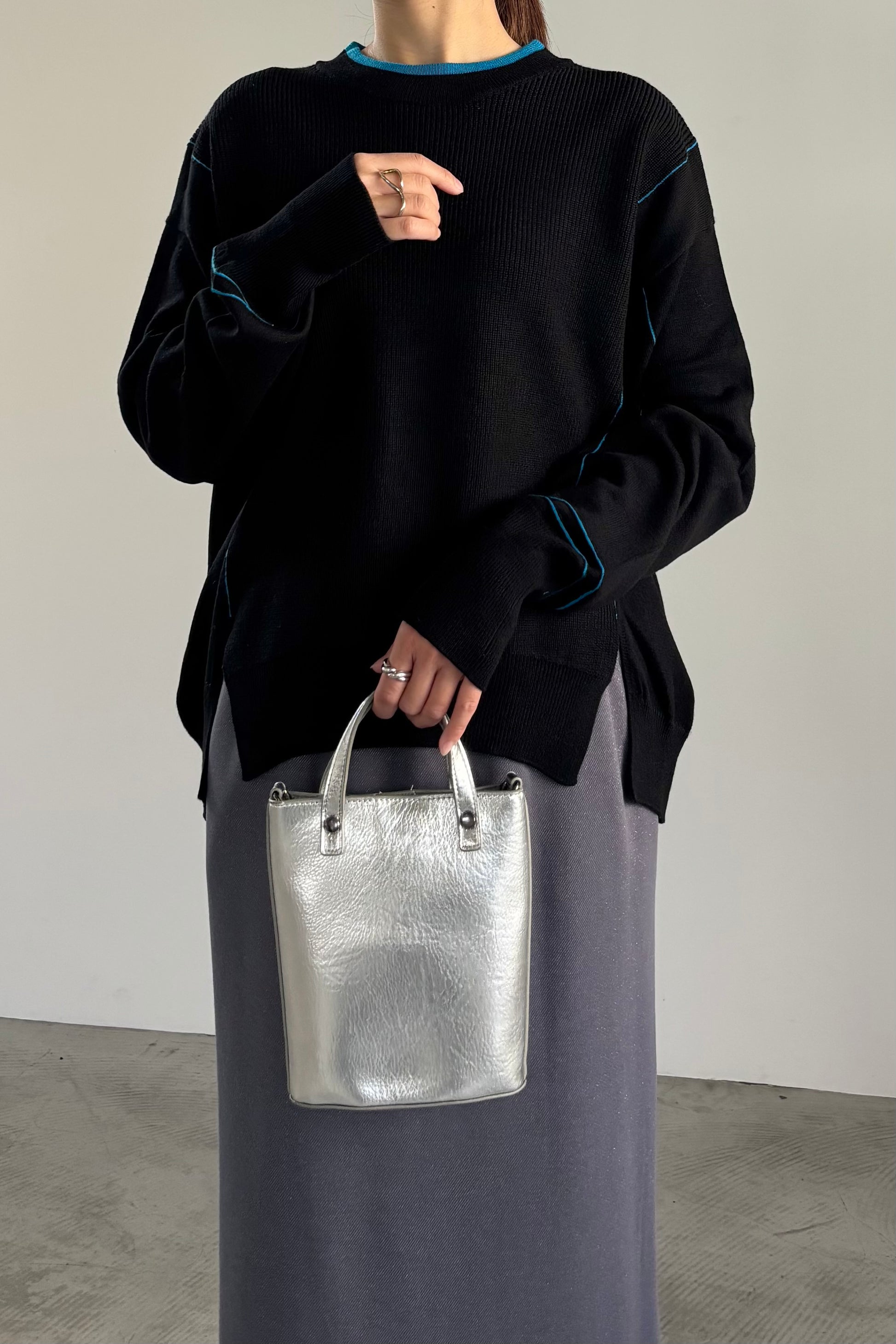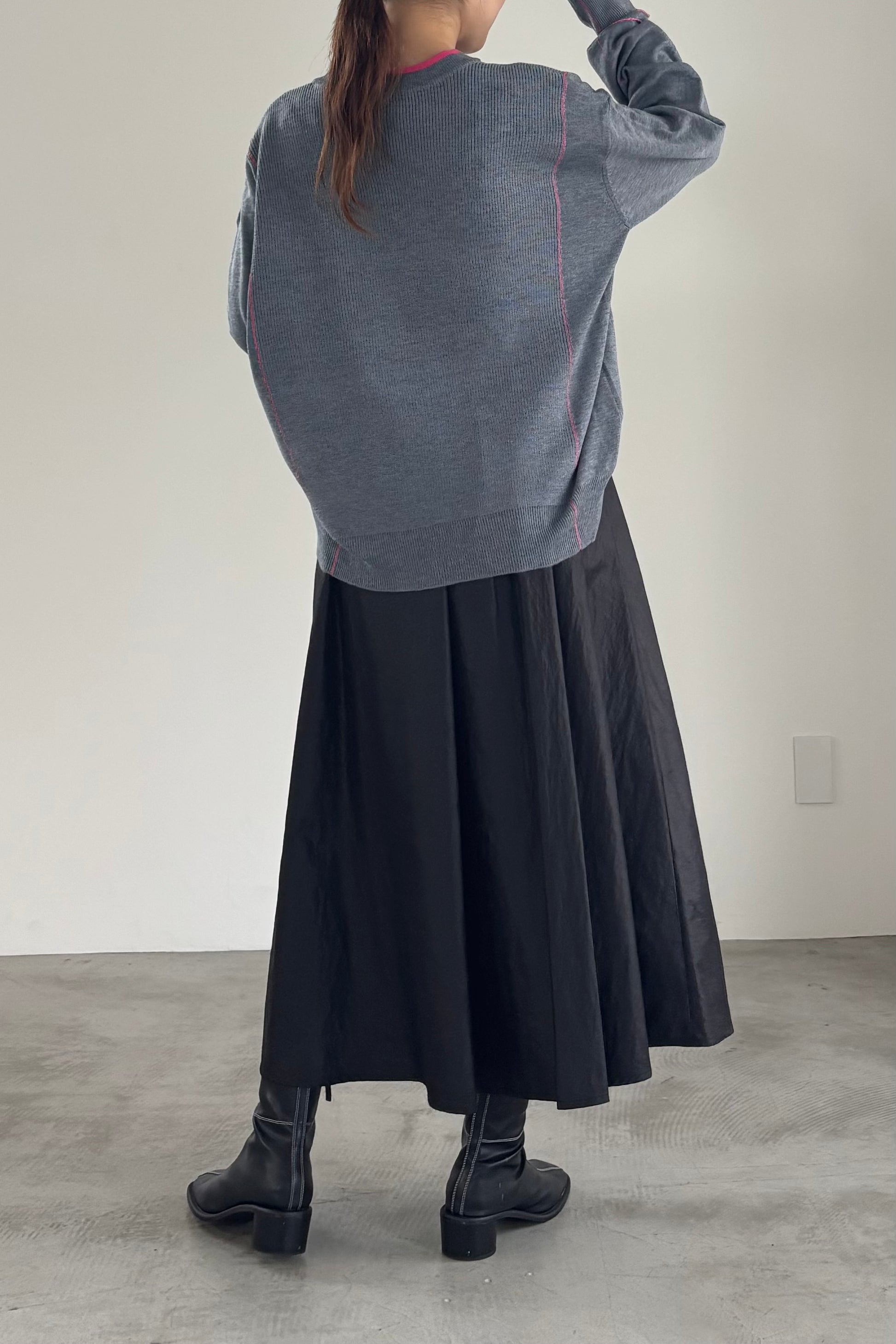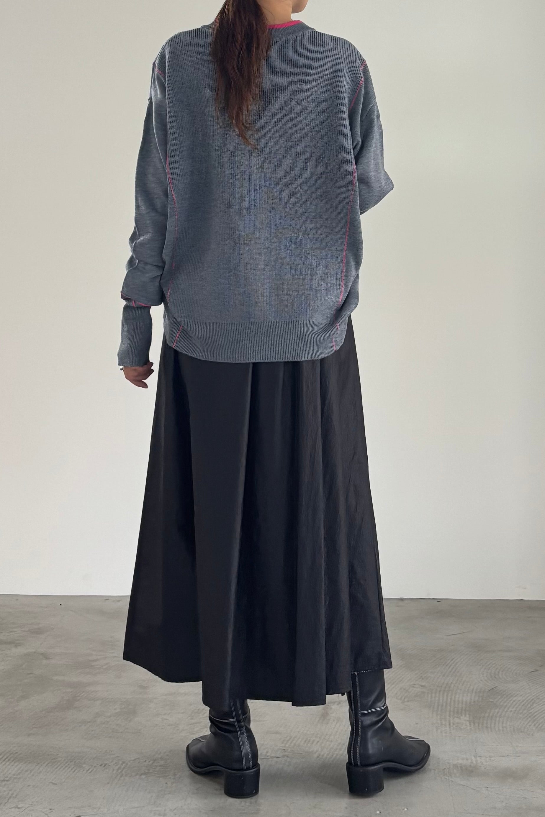 袖口や衿元に施したポップなカラーが目を惹くバイカラーニット。さりげない配色が華やかさをプラスしてくれます。柔らかくしっとりした肌触り且つゆとりのあるシルエットなのでデイリー使いにぴったりのアイテムです。