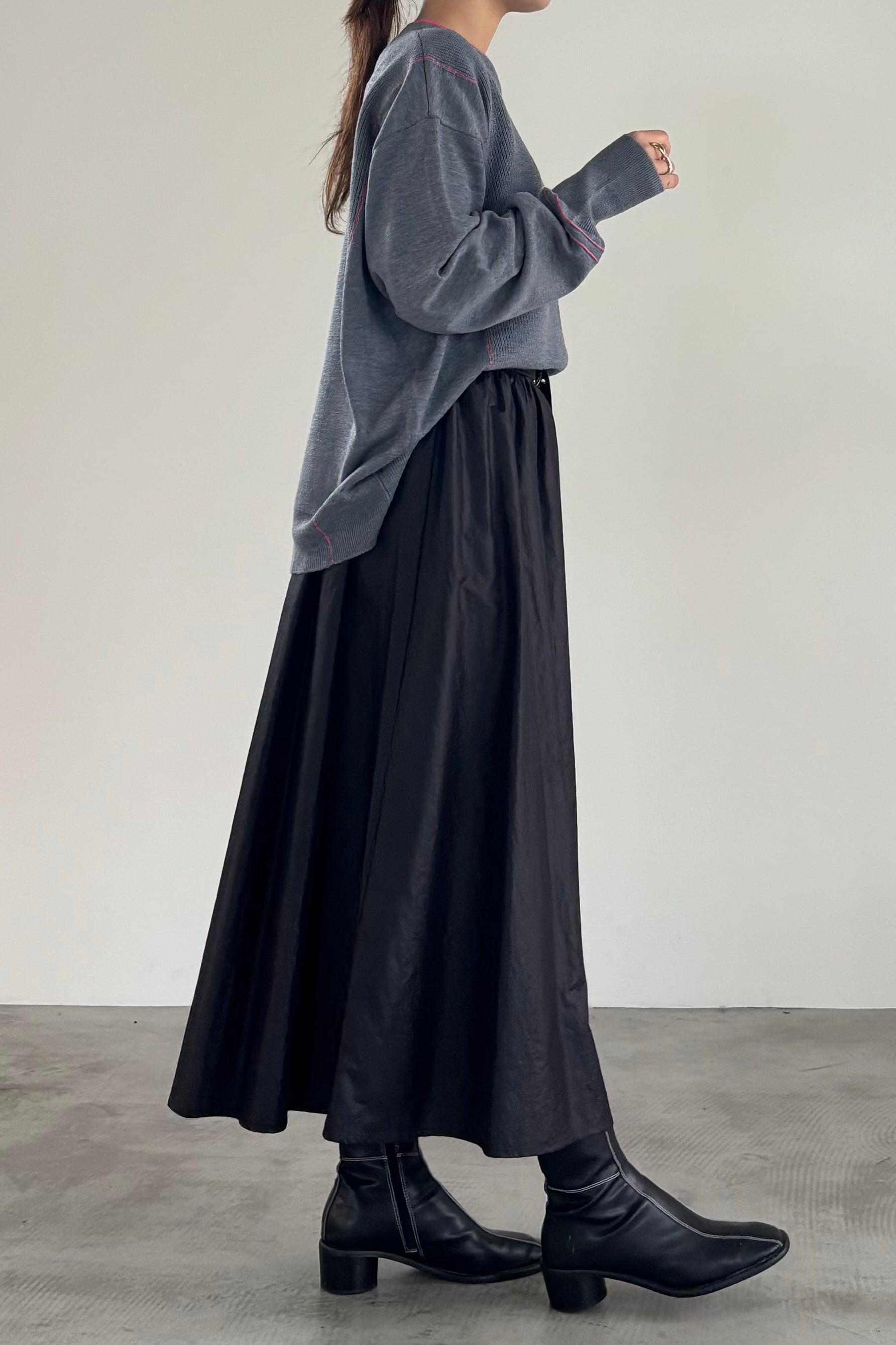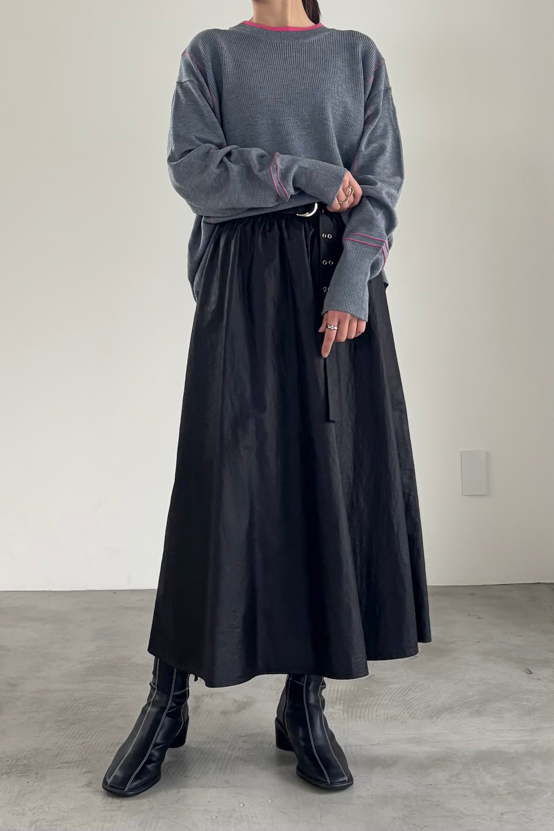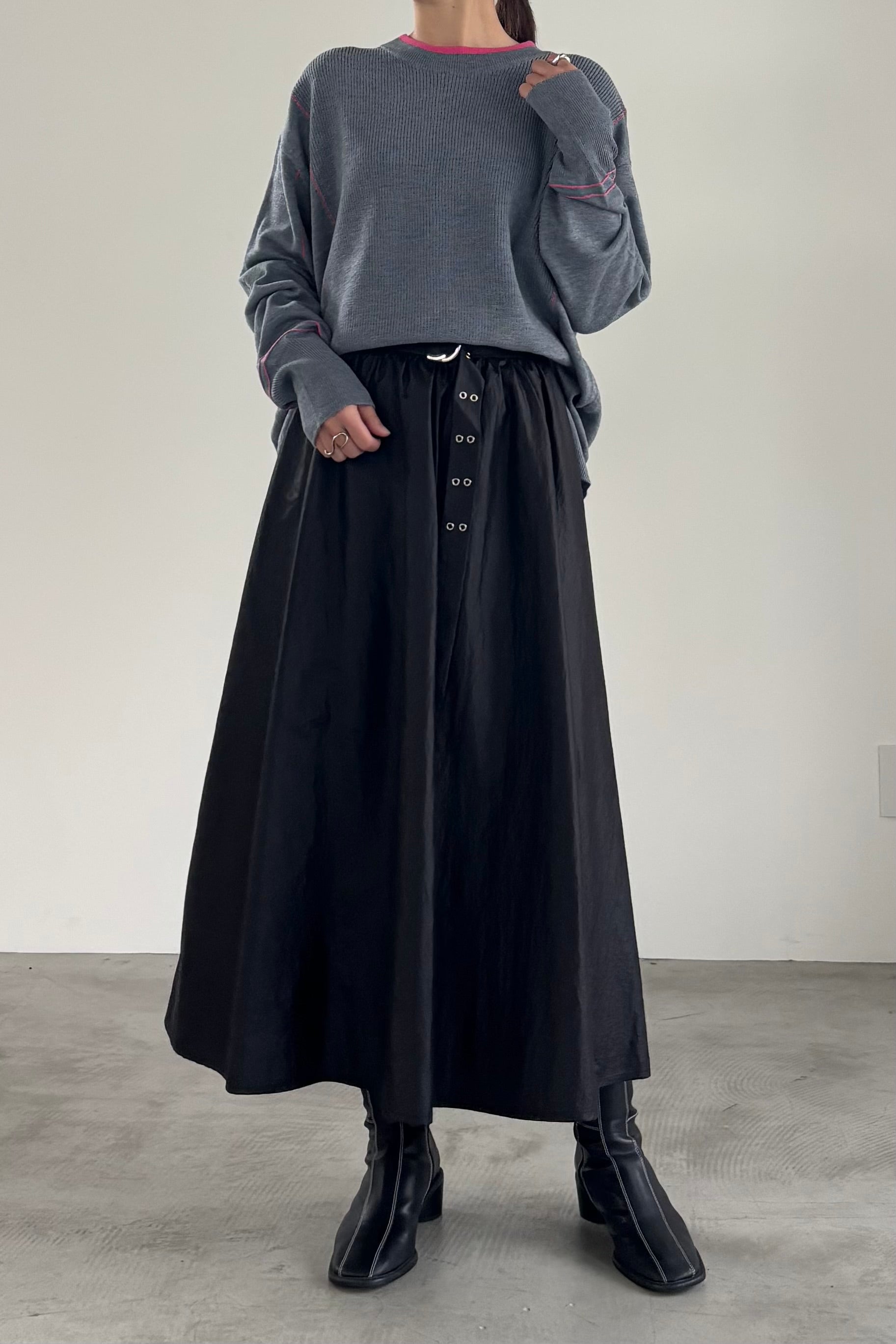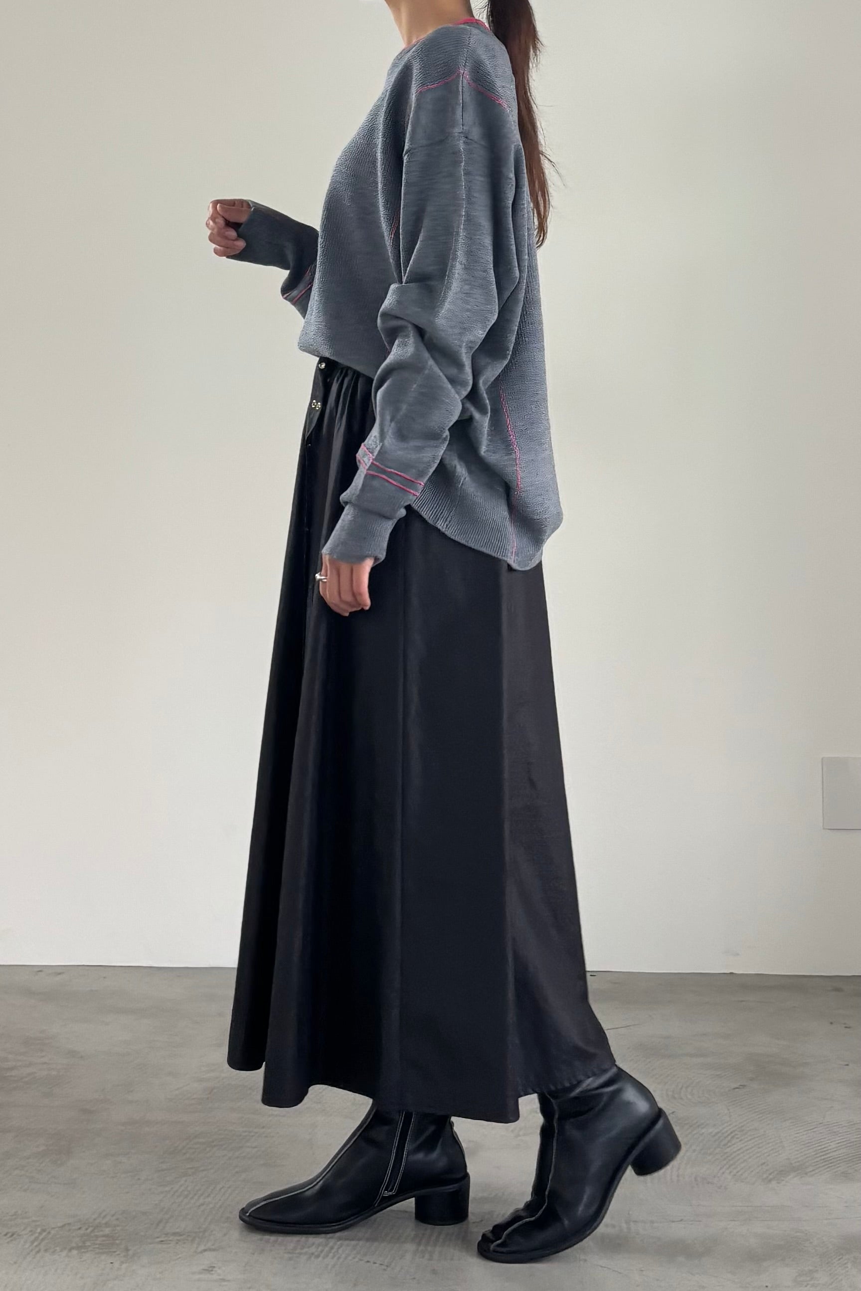 袖口や衿元に施したポップなカラーが目を惹くバイカラーニット。さりげない配色が華やかさをプラスしてくれます。柔らかくしっとりした肌触り且つゆとりのあるシルエットなのでデイリー使いにぴったりのアイテムです。