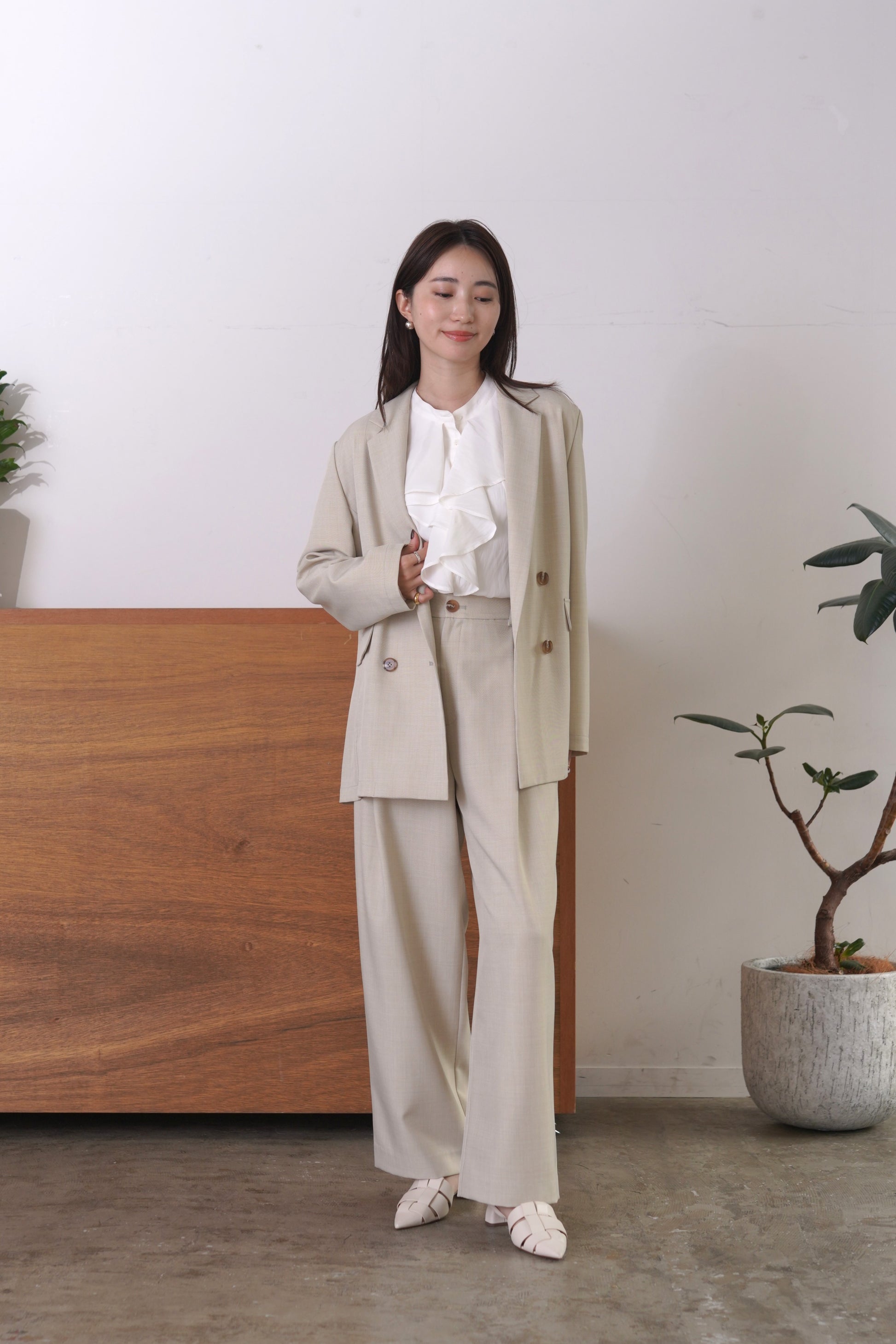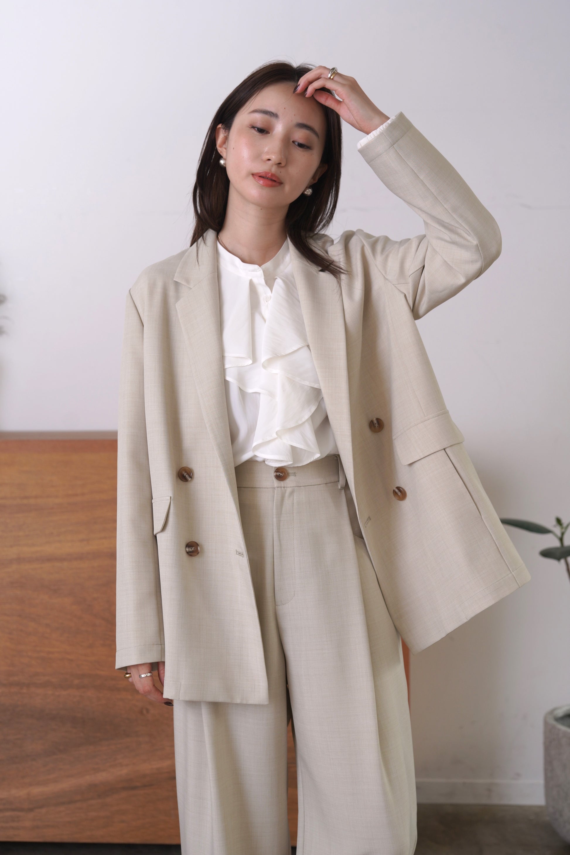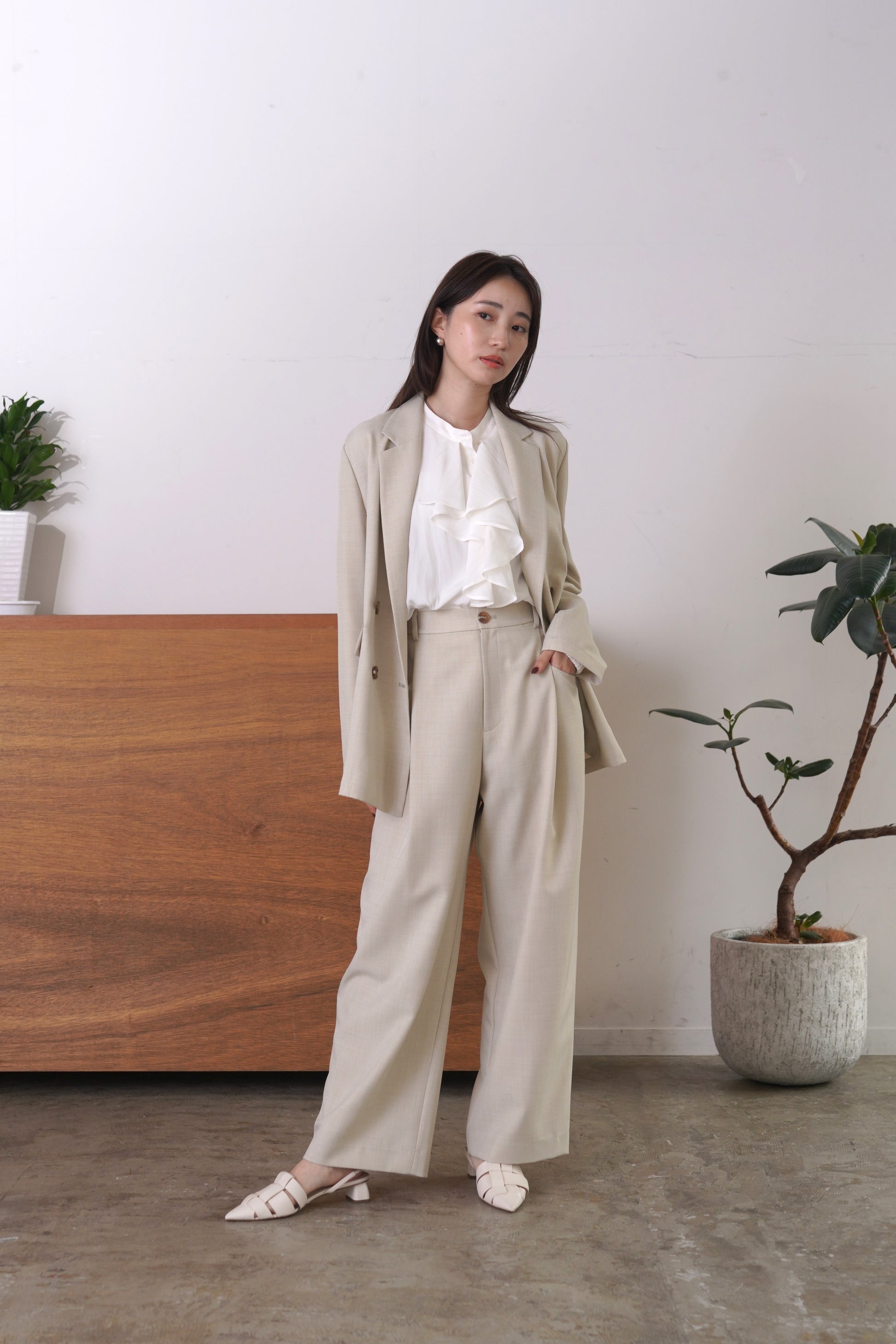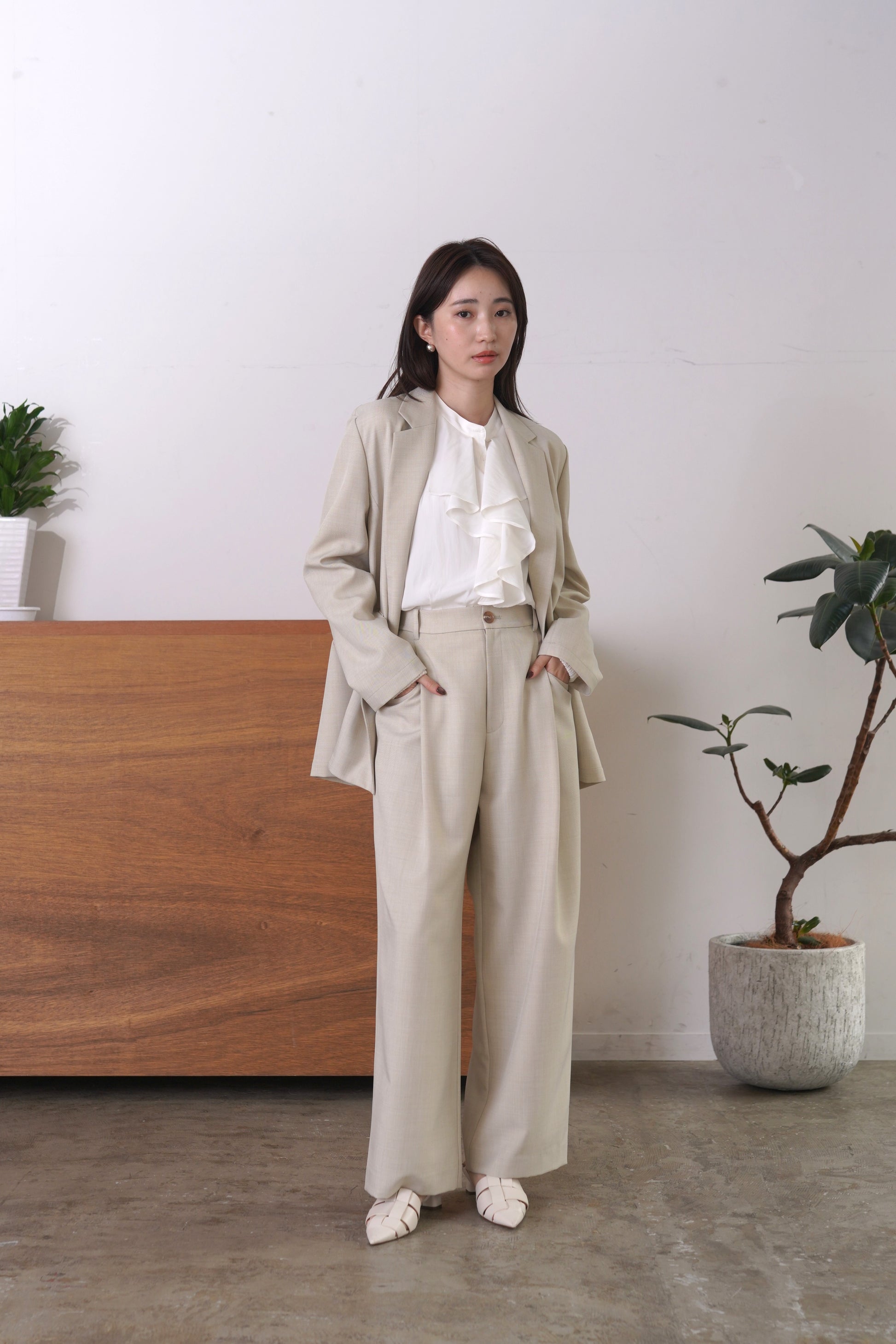 シルクの様な光沢感と軽さの割線サテンブラウス。フロントにあしらったフリルがゆらめき、オフィスやオケージョンシーンはもちろん、あらゆるシーンにフィットする優秀ブラウス。袖口はゴムを入れて、捲り上げやすく仕上げました。イージーケアで、シーズンレスに活躍します。