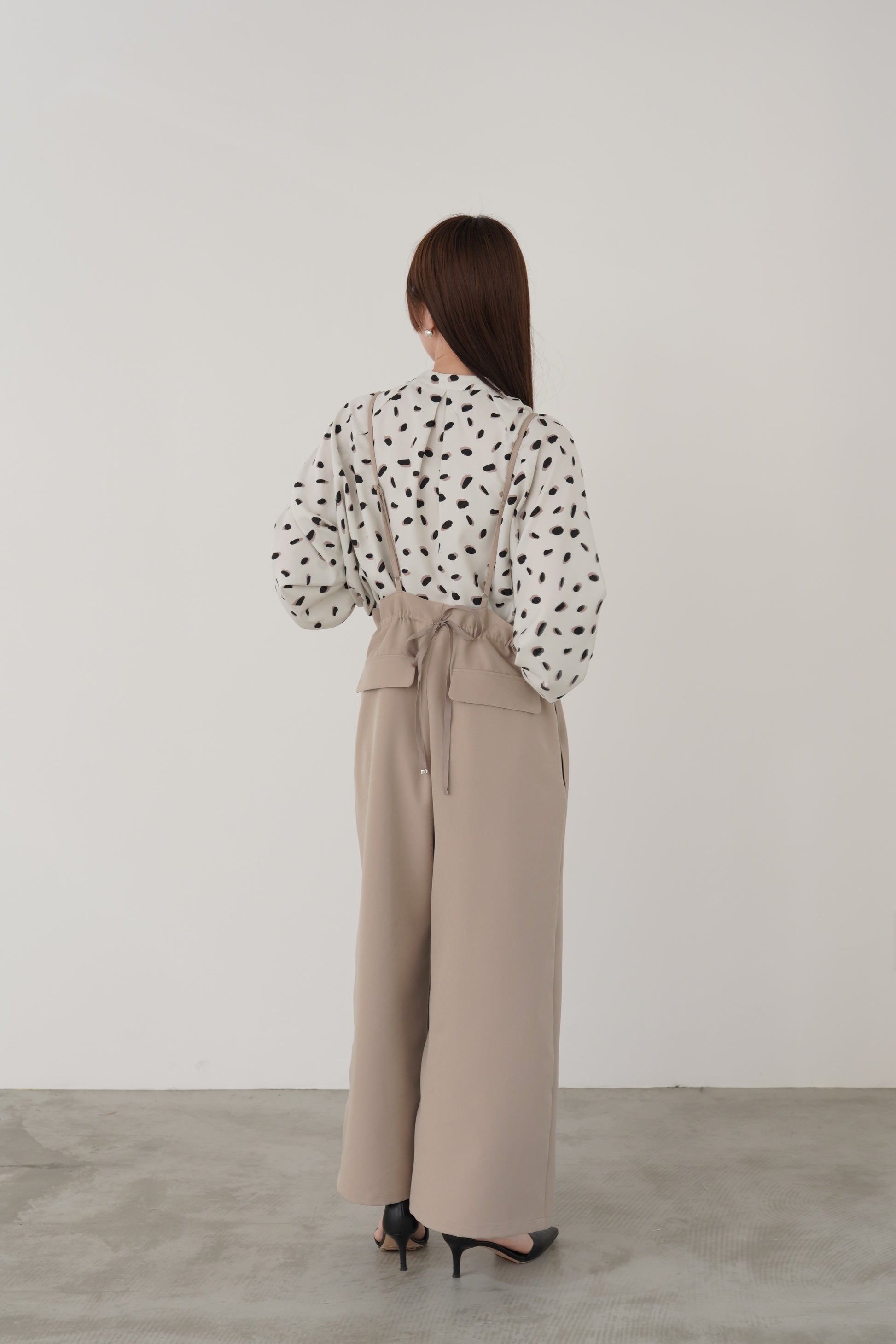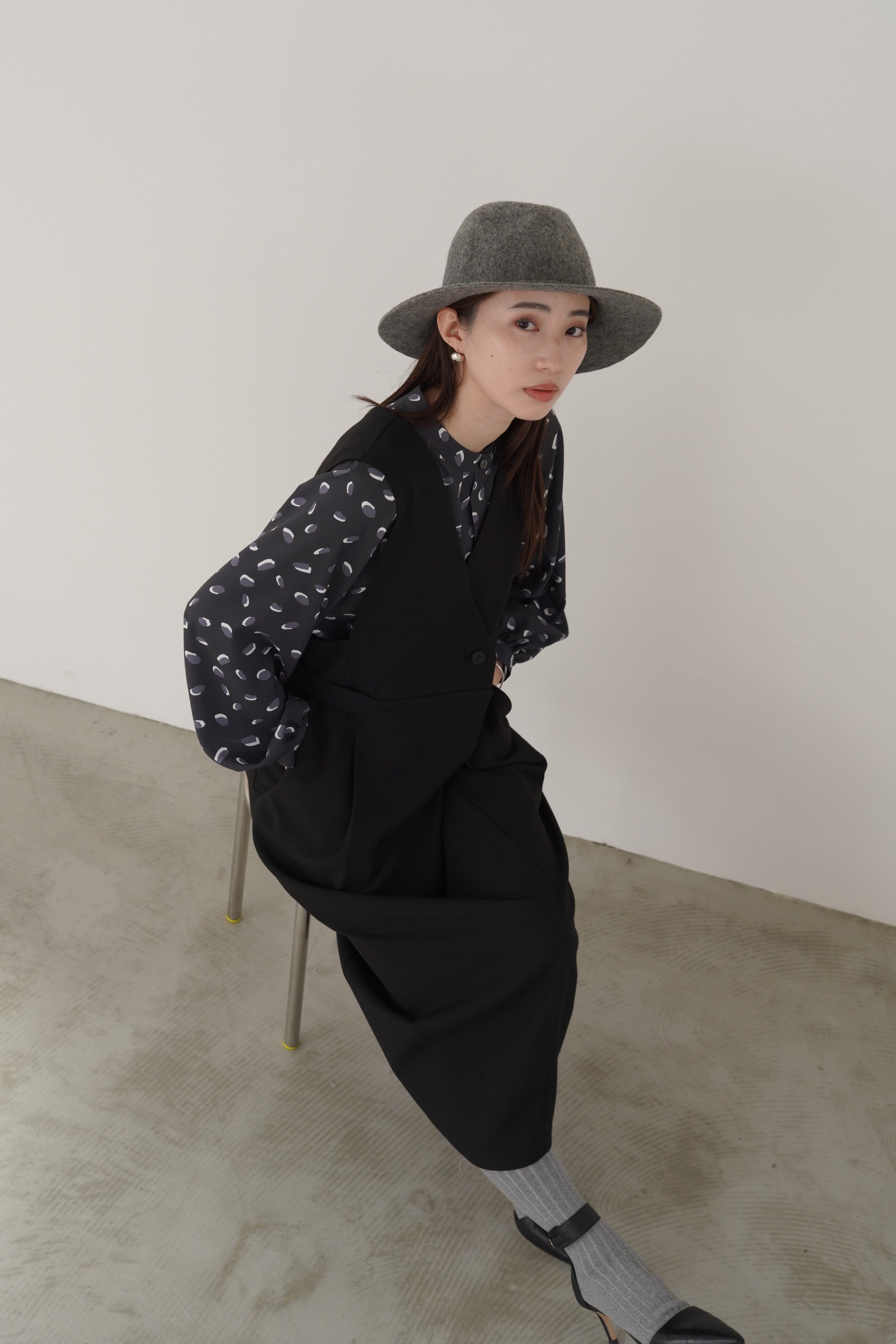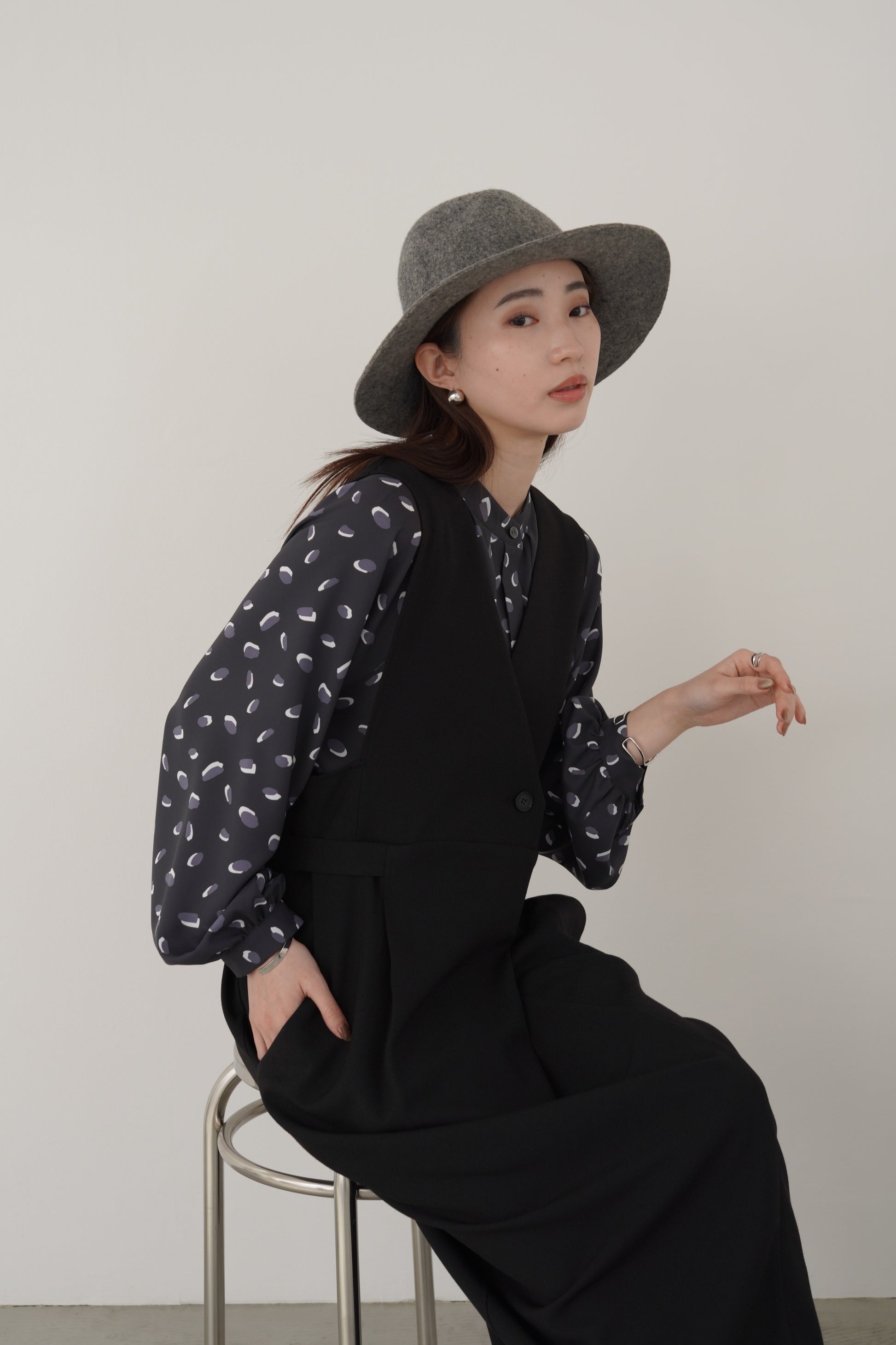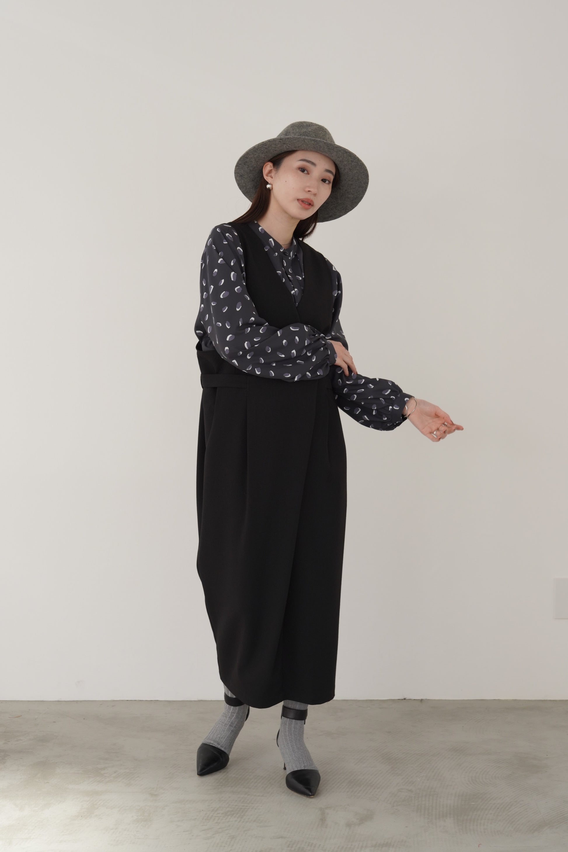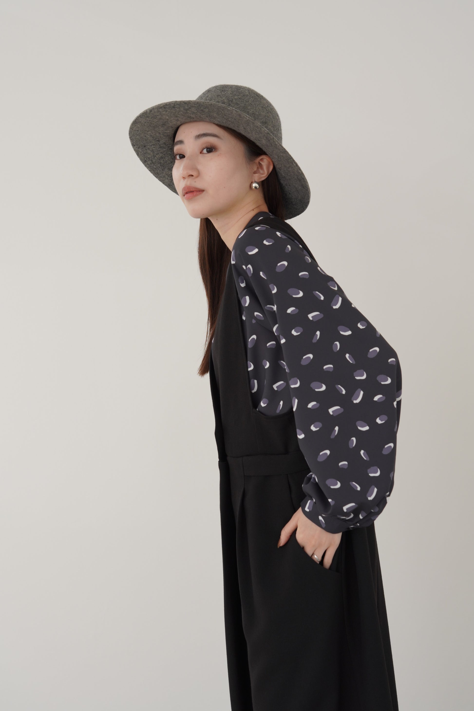 比翼デザインできちんと感のある、タックデザインのブラウス。優しい風合いの柔らかいデシン素材の無地と、アート風なドットプリントの展開で、スイッチシーズンに活躍する1着。