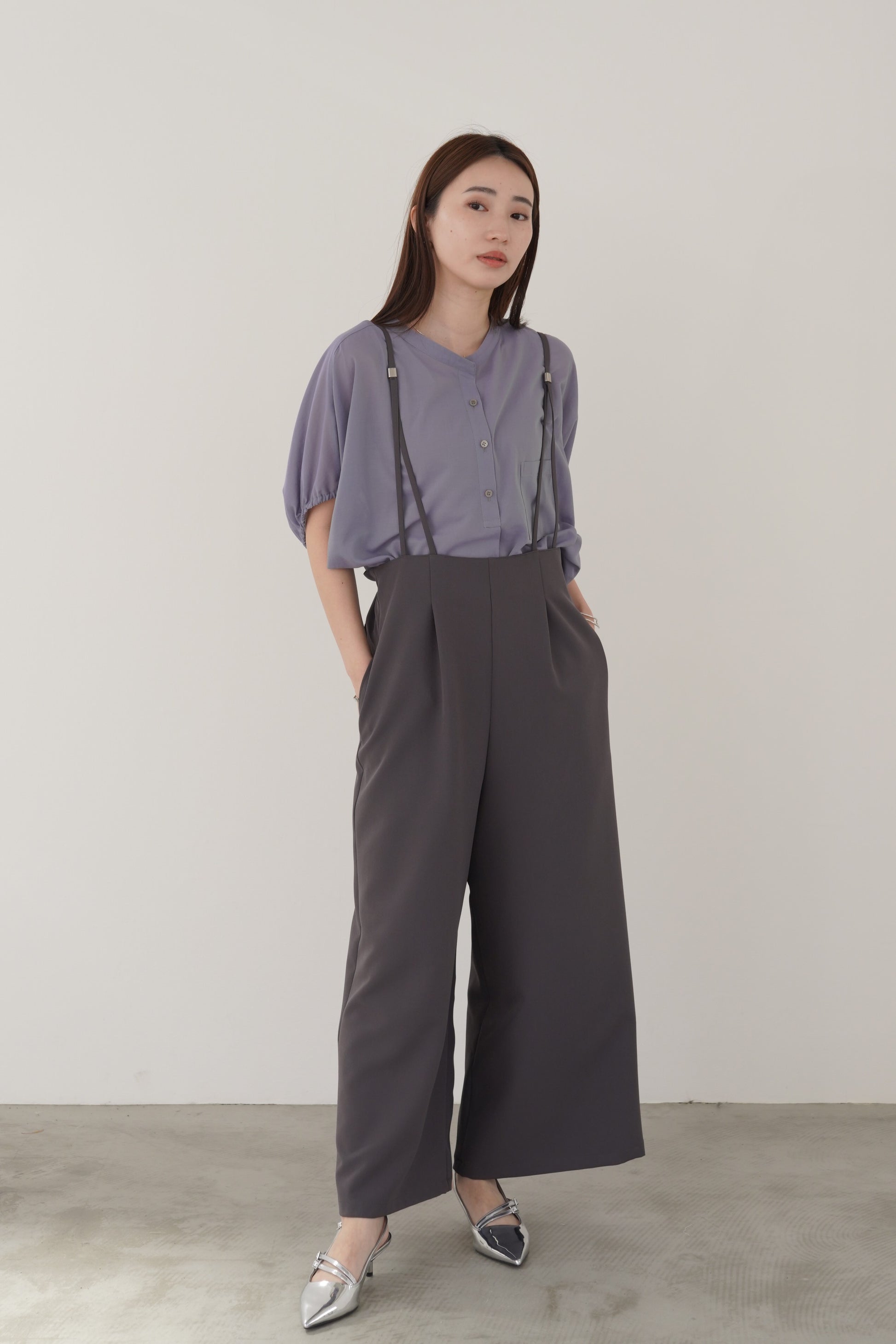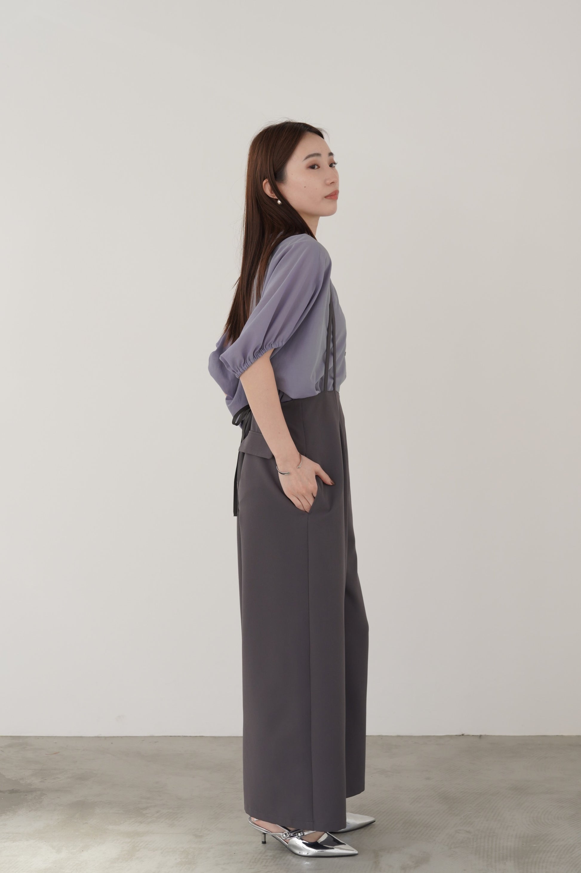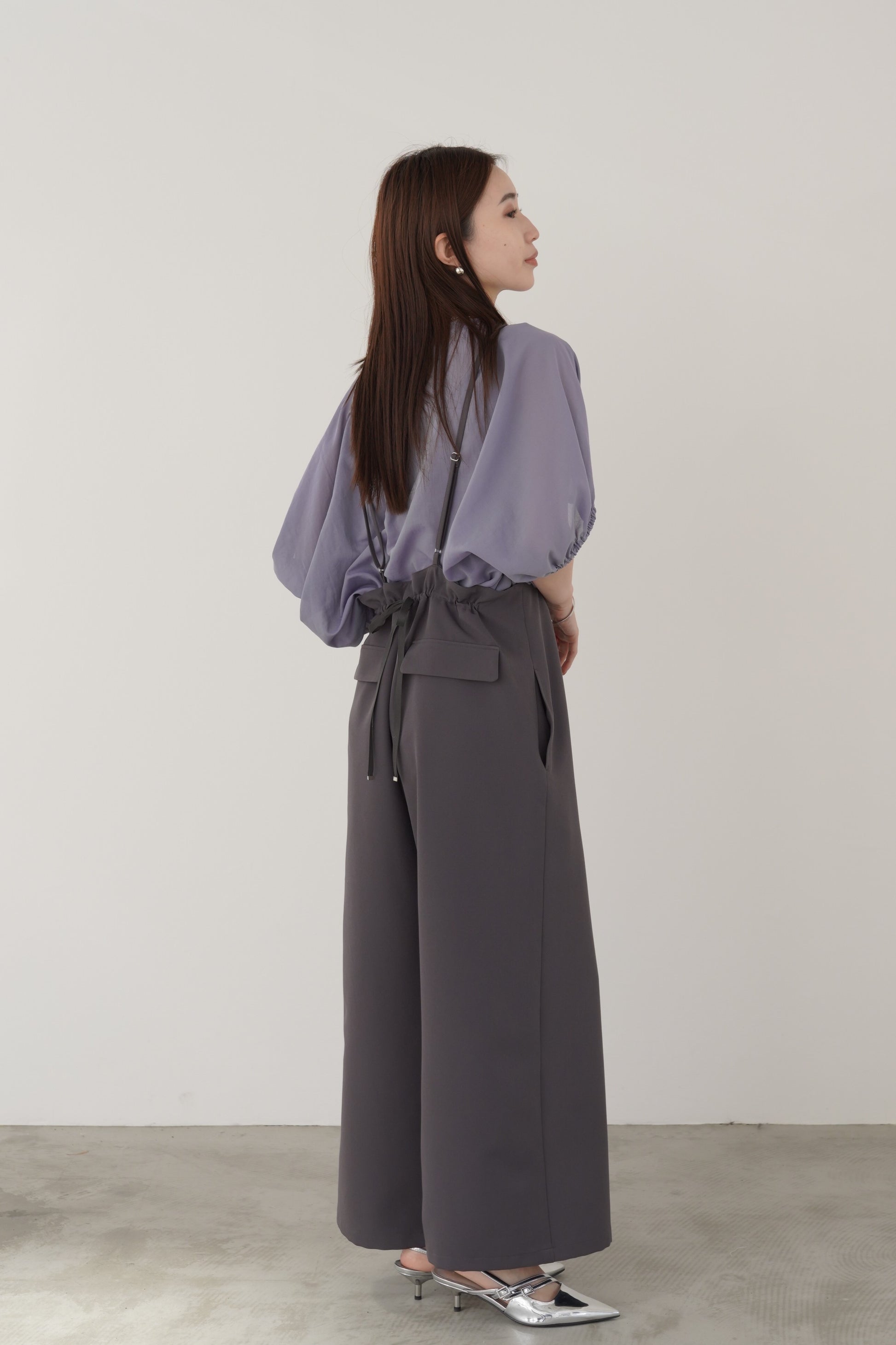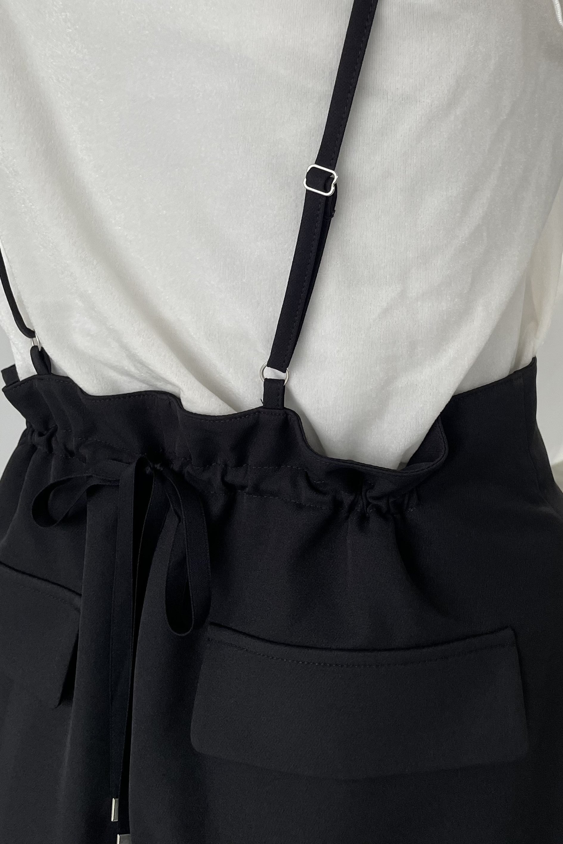 minkchair定番のダブルクロスサロペット。イージーケア、防シワ、抗ピリング、ストレッチ性に優れた軽量のダブルクロス素材を使用しています。後ろ身頃のリボンでウエストの調節ができるため、幅広い体型の方に着用頂けるサイズ感が人気のポイント。