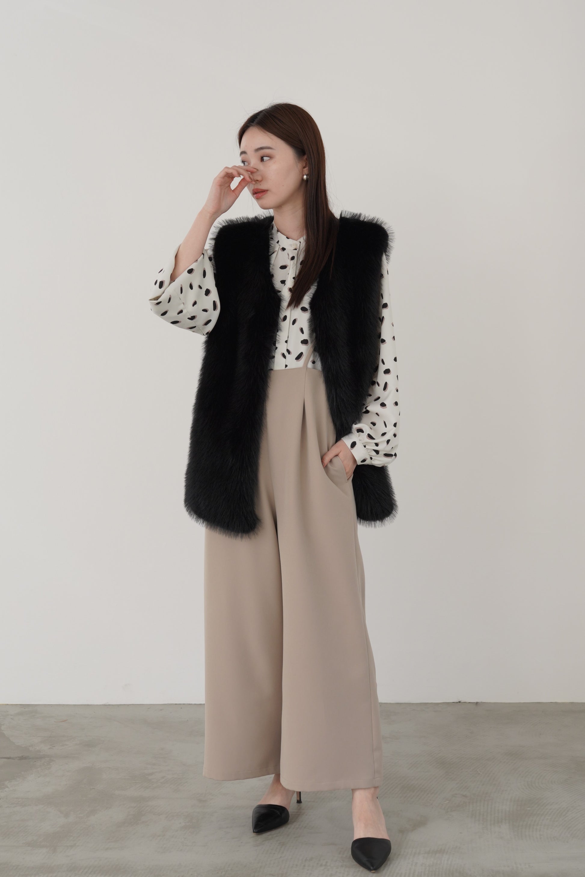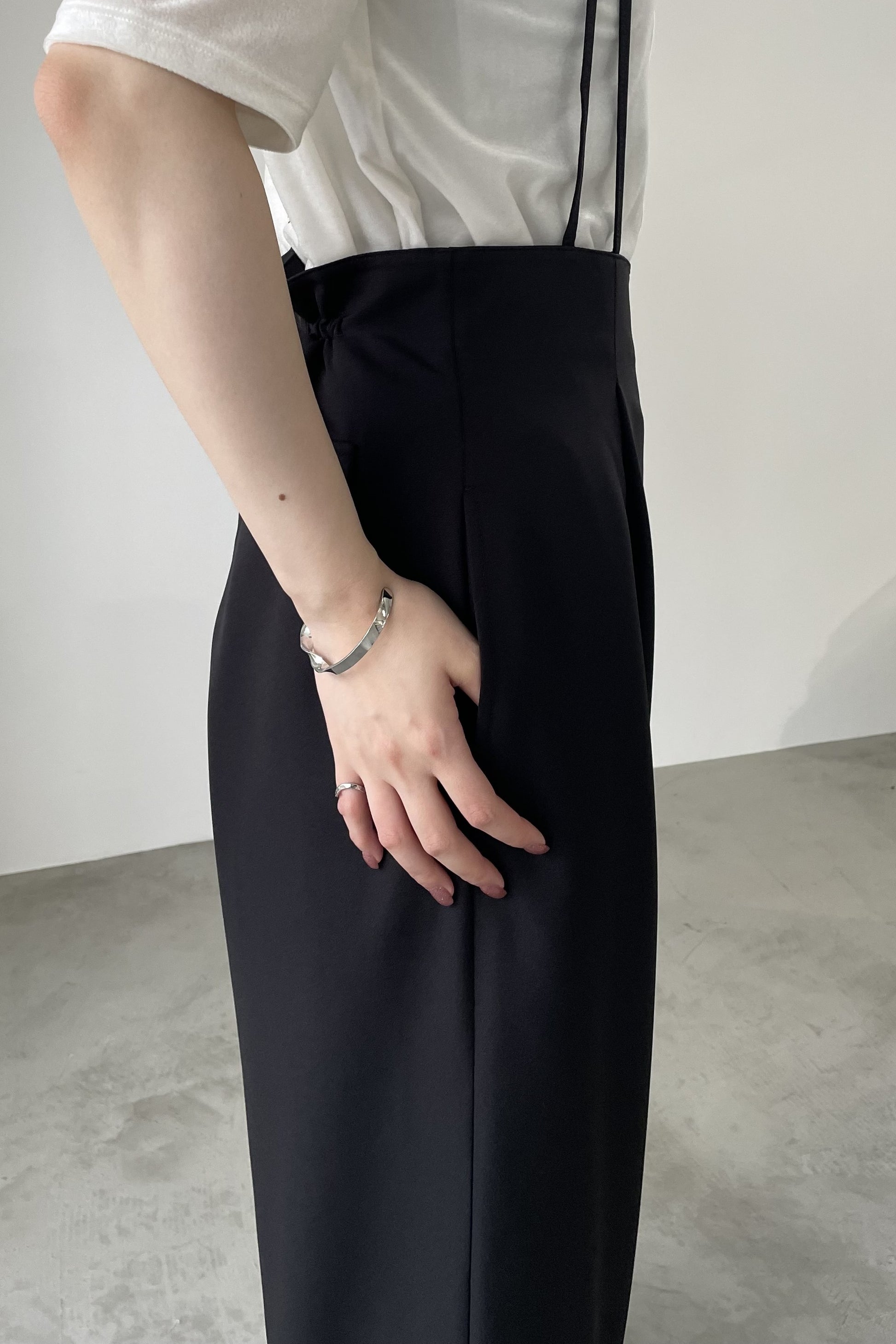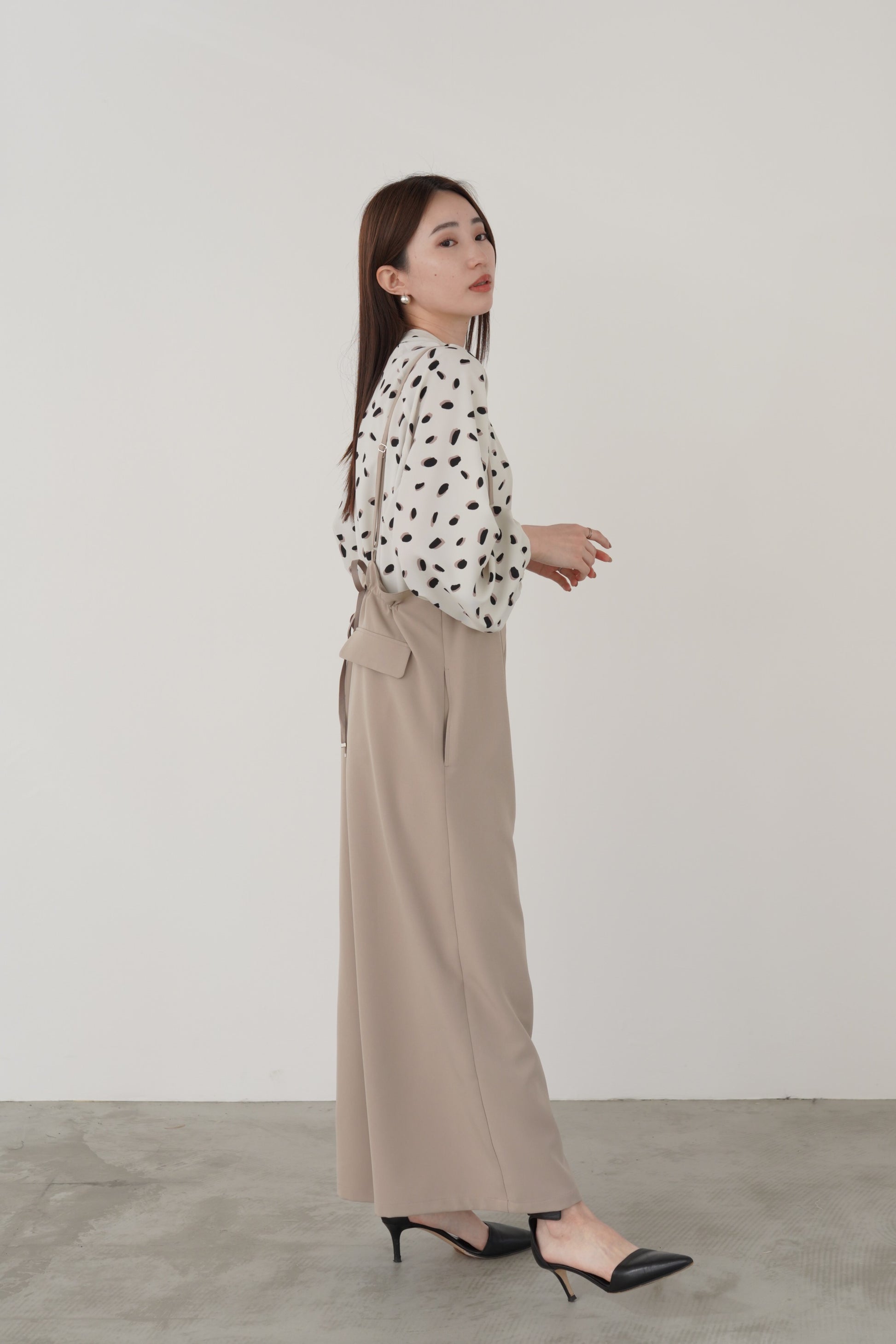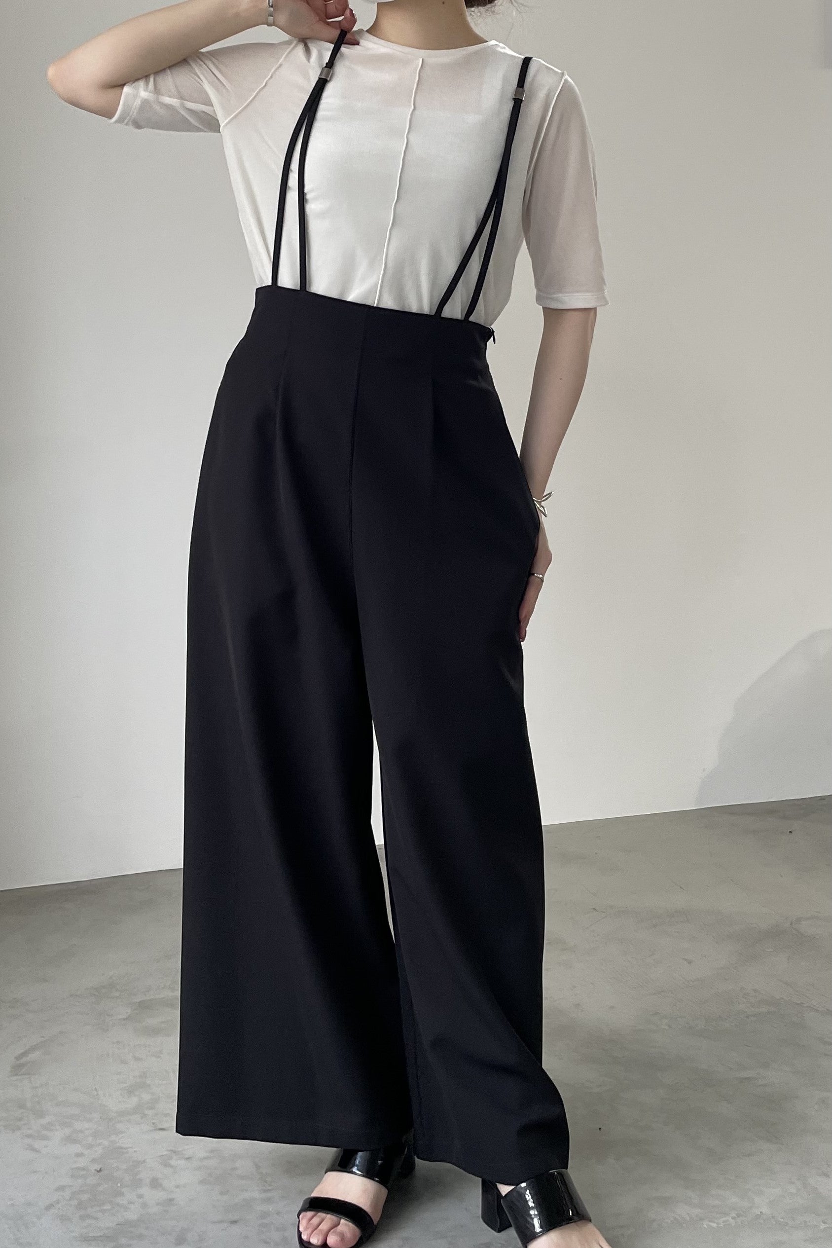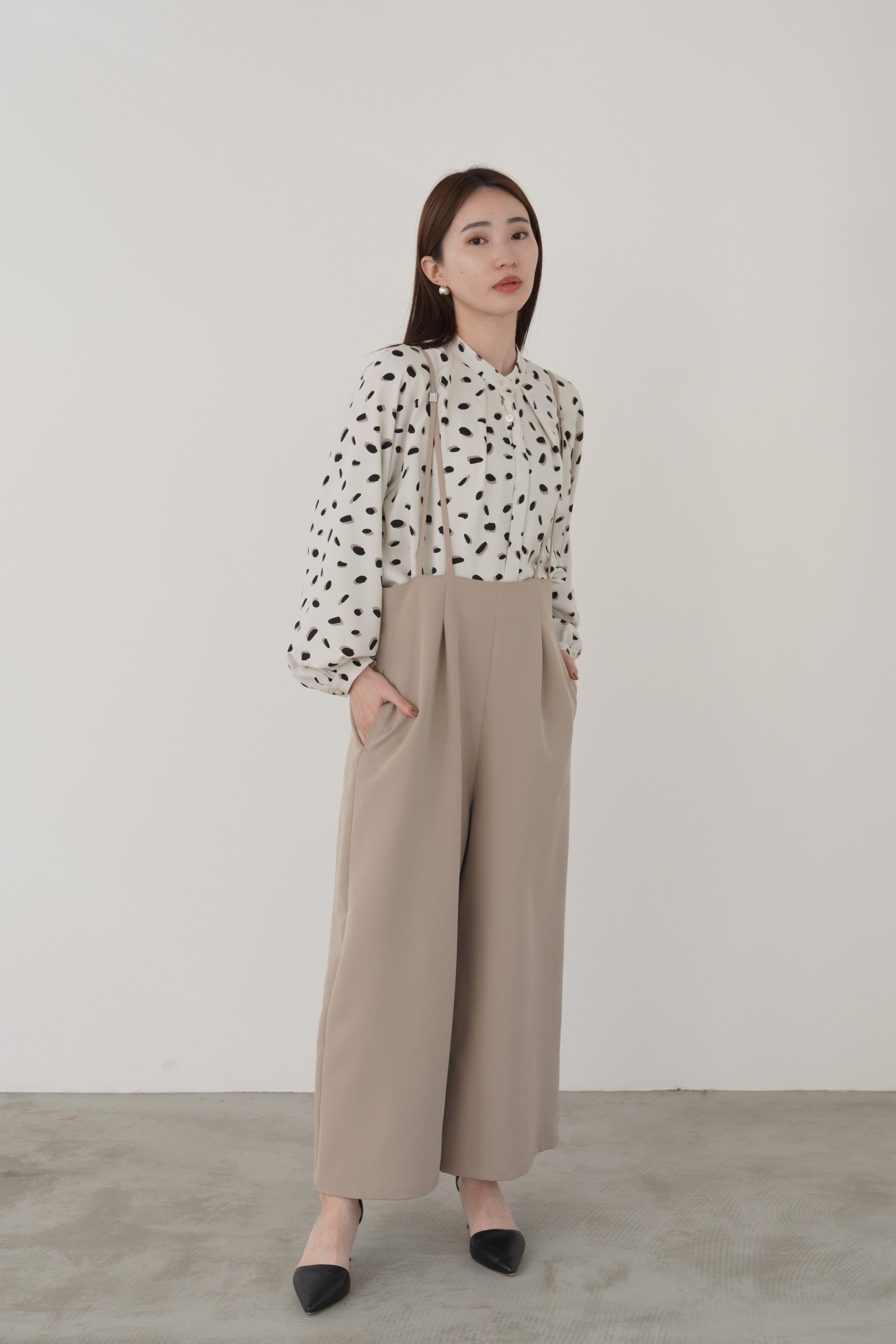 minkchair定番のダブルクロスサロペット。イージーケア、防シワ、抗ピリング、ストレッチ性に優れた軽量のダブルクロス素材を使用しています。後ろ身頃のリボンでウエストの調節ができるため、幅広い体型の方に着用頂けるサイズ感が人気のポイント。