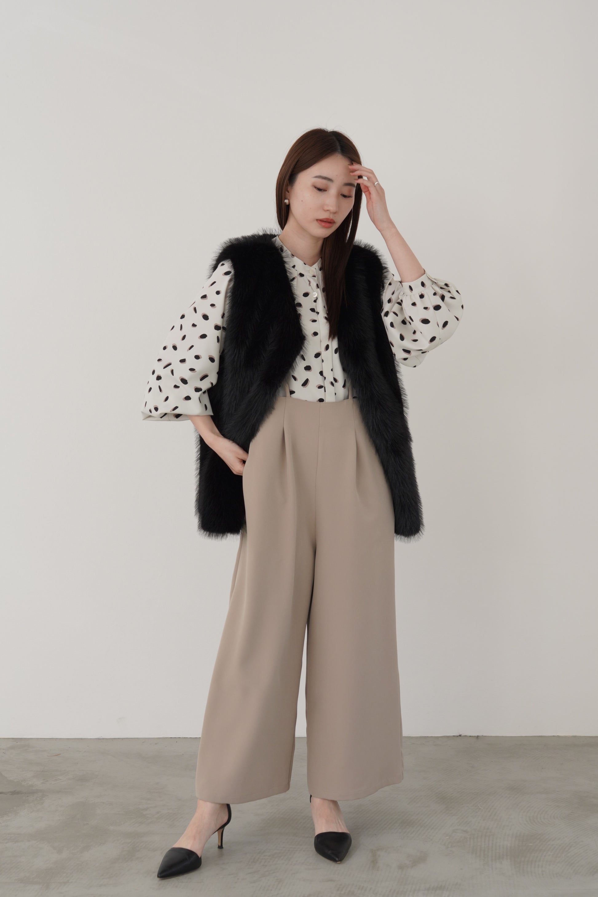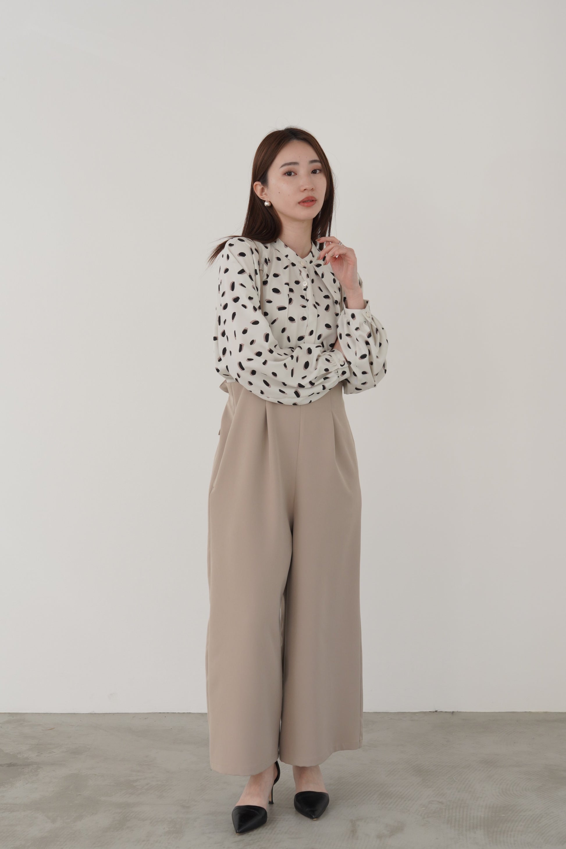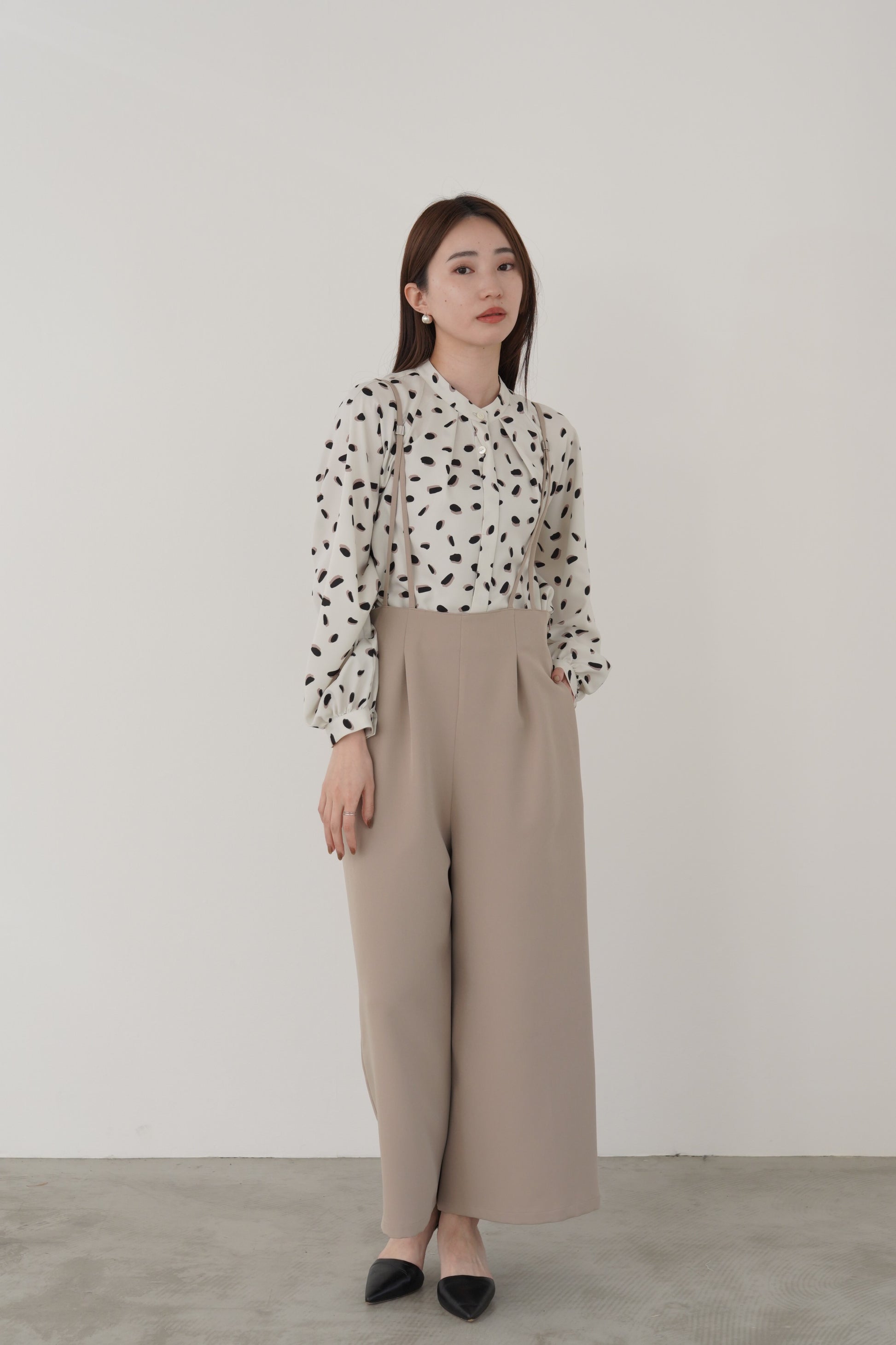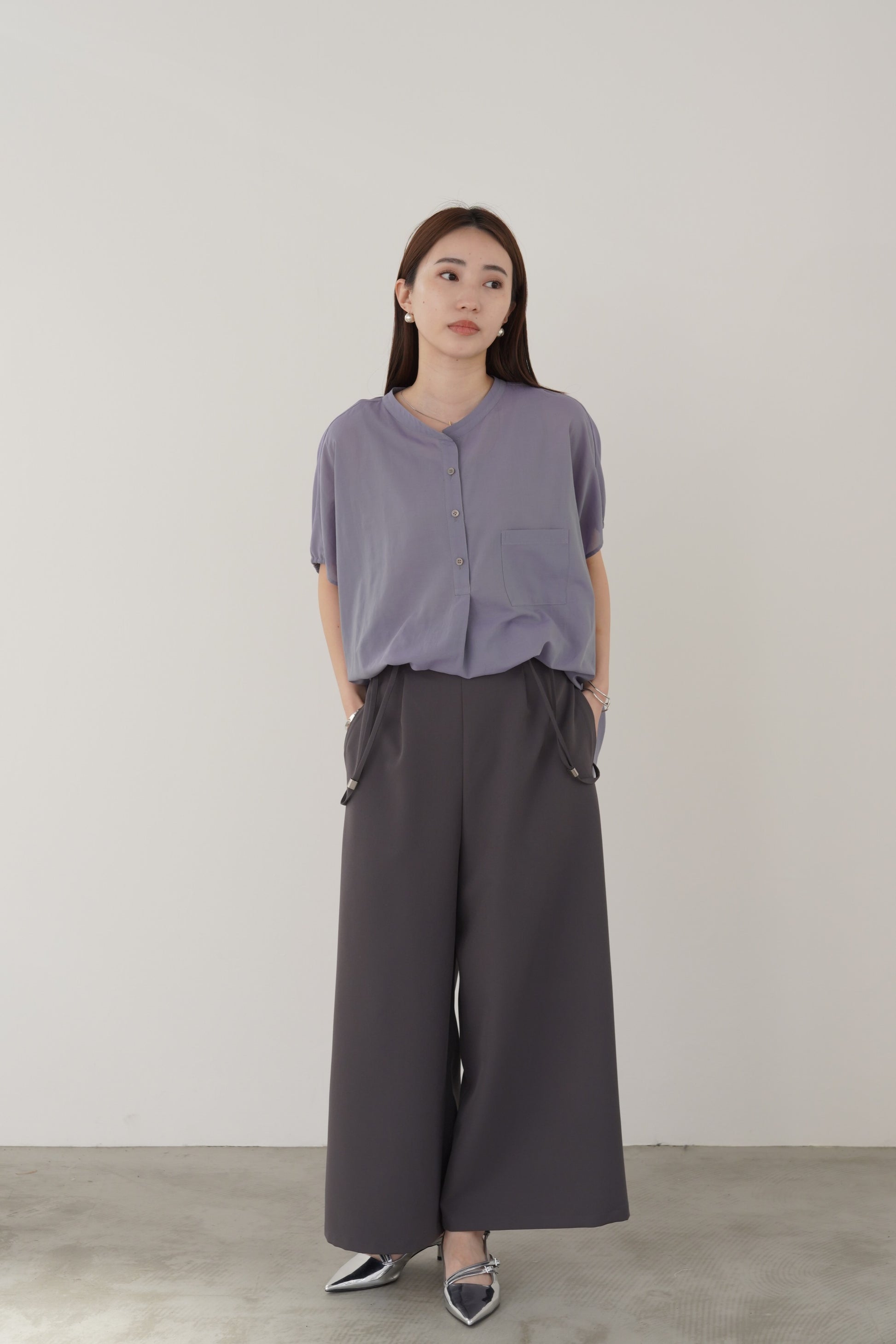 minkchair定番のダブルクロスサロペット。イージーケア、防シワ、抗ピリング、ストレッチ性に優れた軽量のダブルクロス素材を使用しています。後ろ身頃のリボンでウエストの調節ができるため、幅広い体型の方に着用頂けるサイズ感が人気のポイント。
