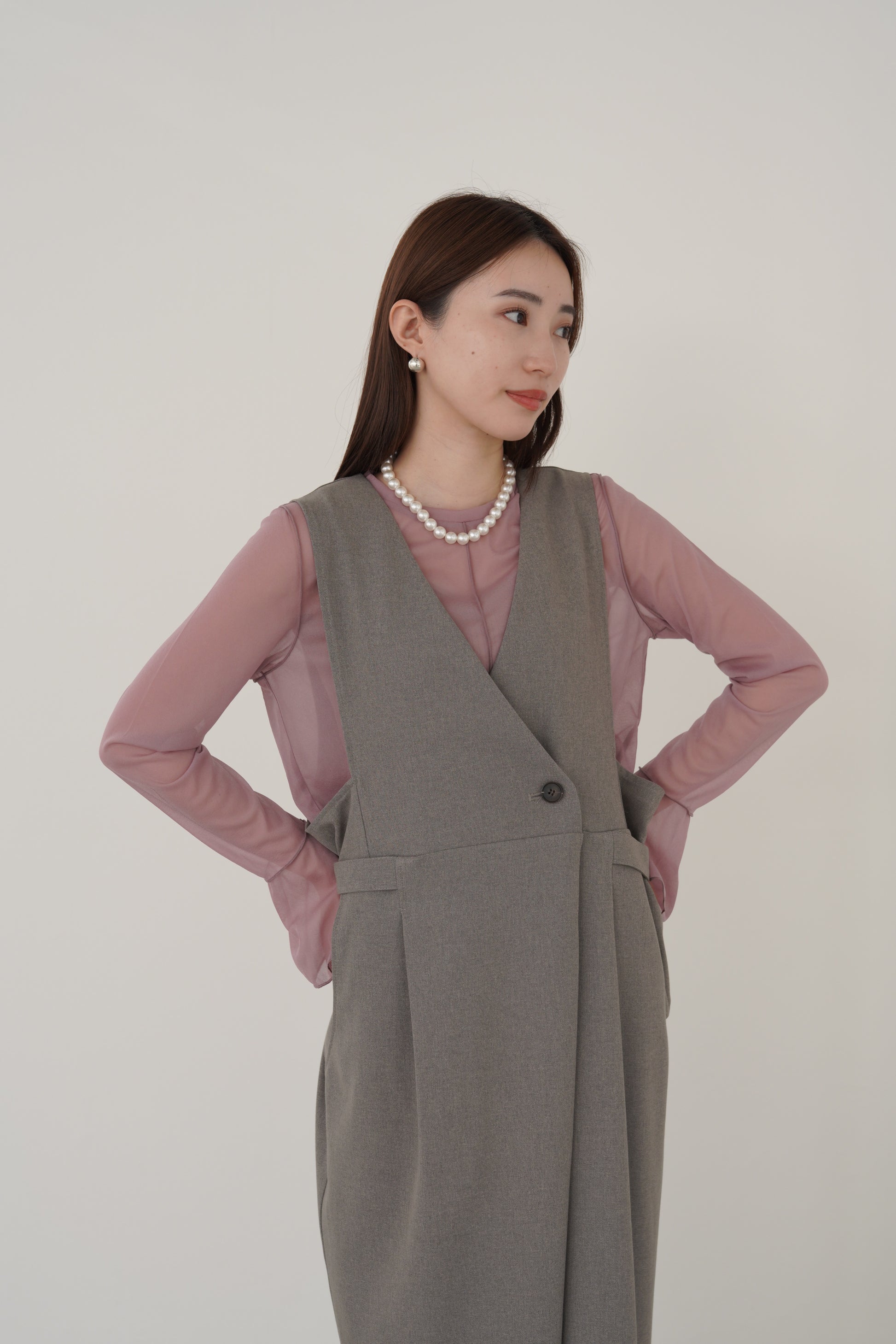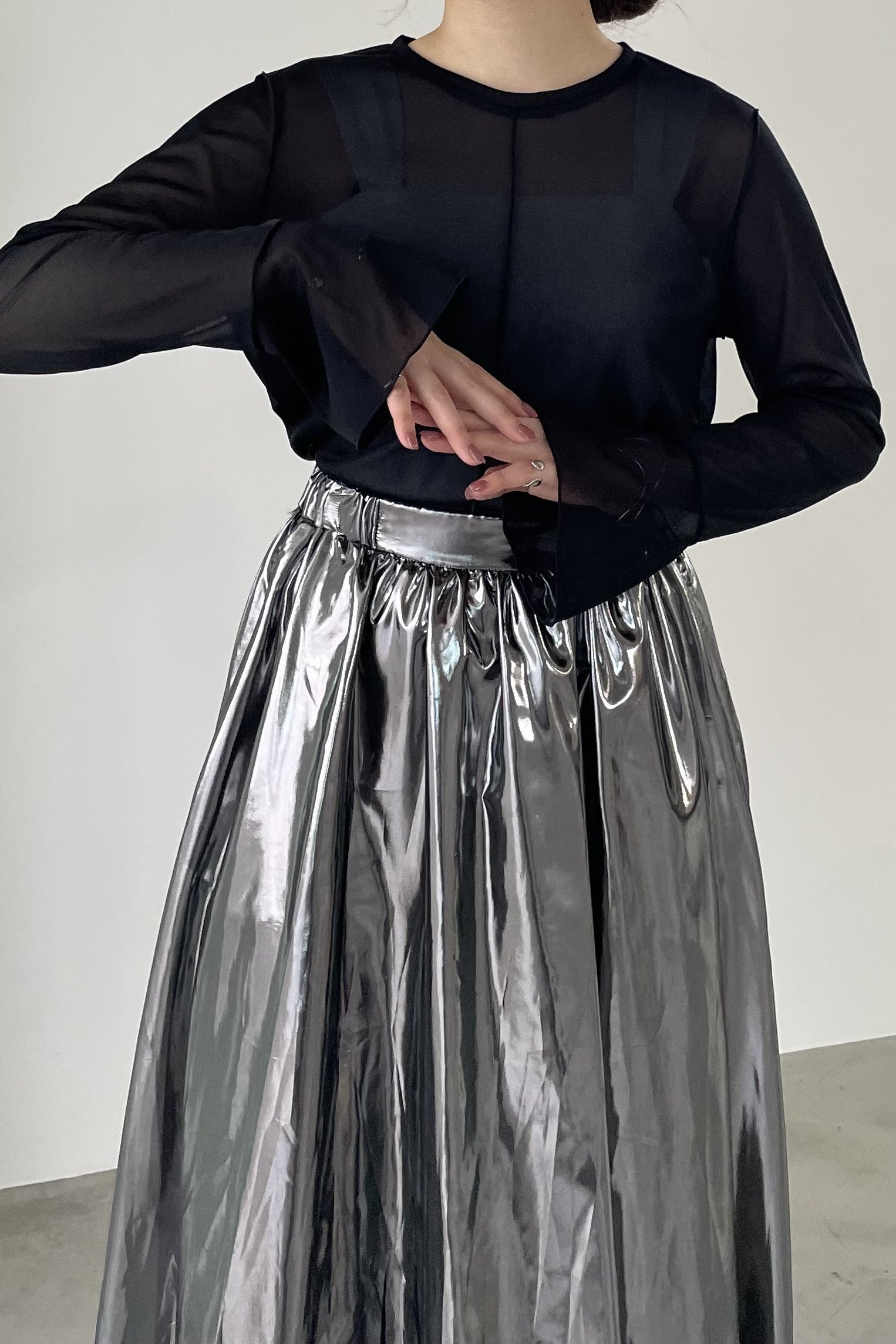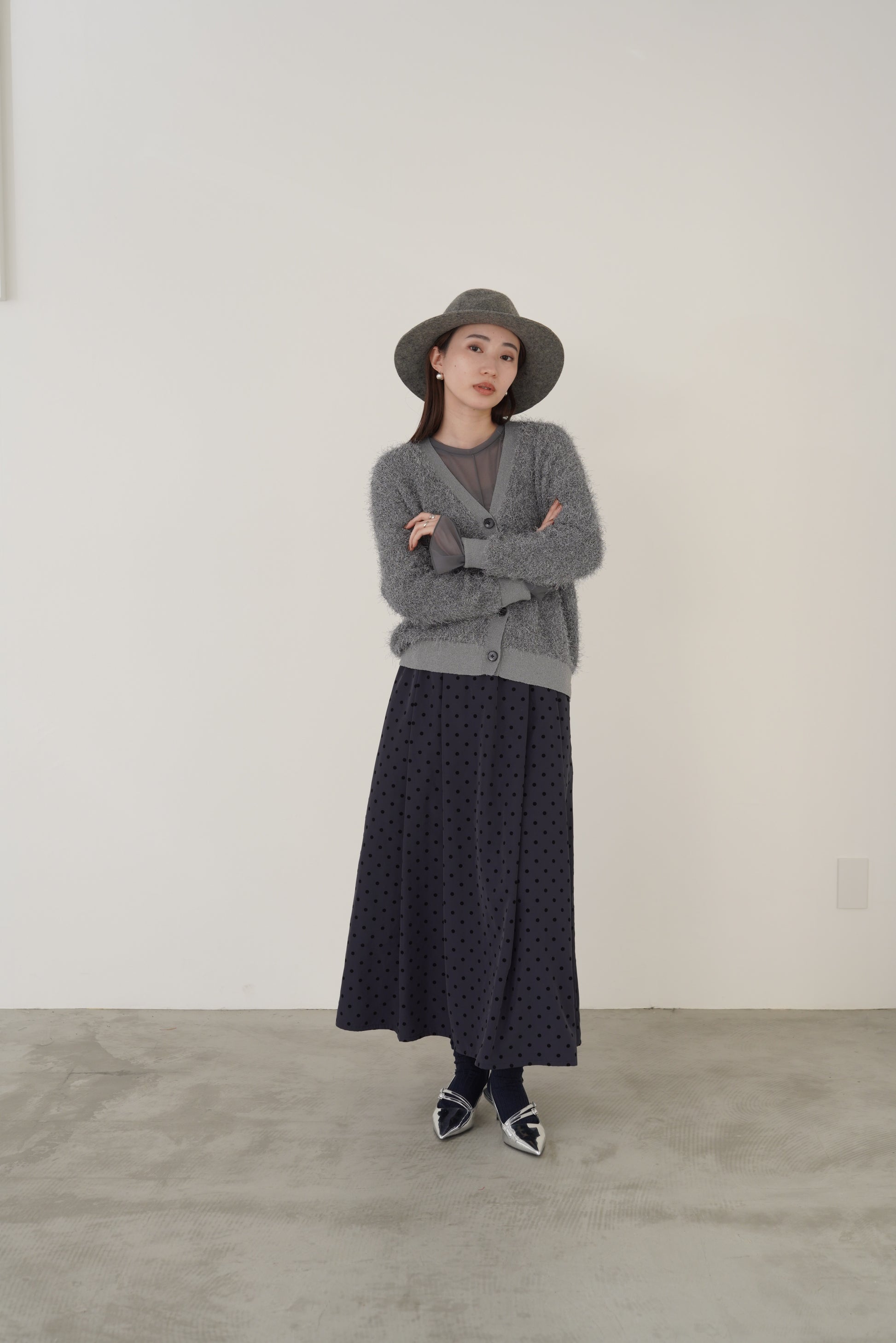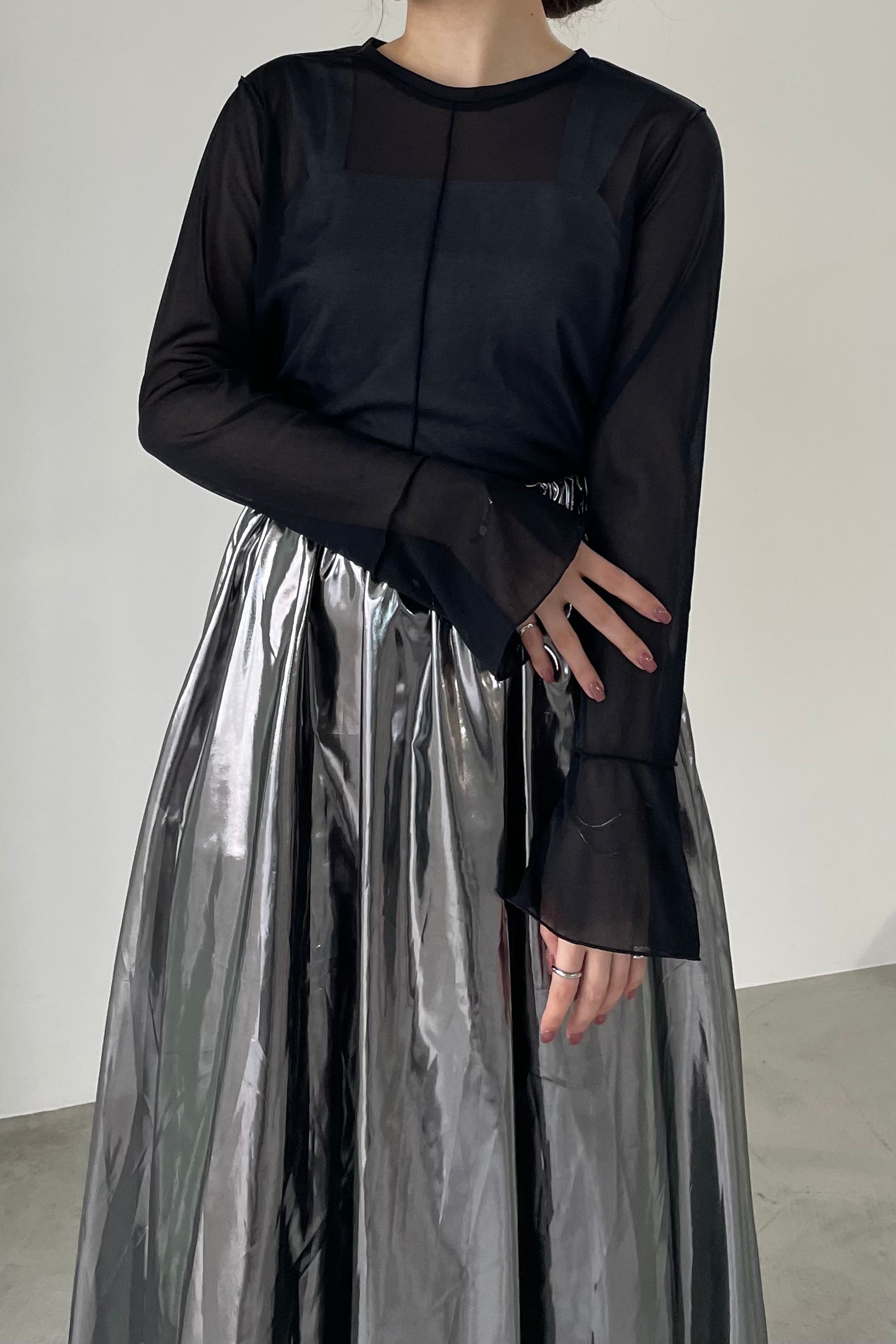 レイヤードスタイリングに欠かせないシアートップス。端の処理を、シアー感を引き立てるメロー始末で仕上げました。合繊素材ですが、天然素材の様なナチュラルで高級感のあるニットを使用しています。
