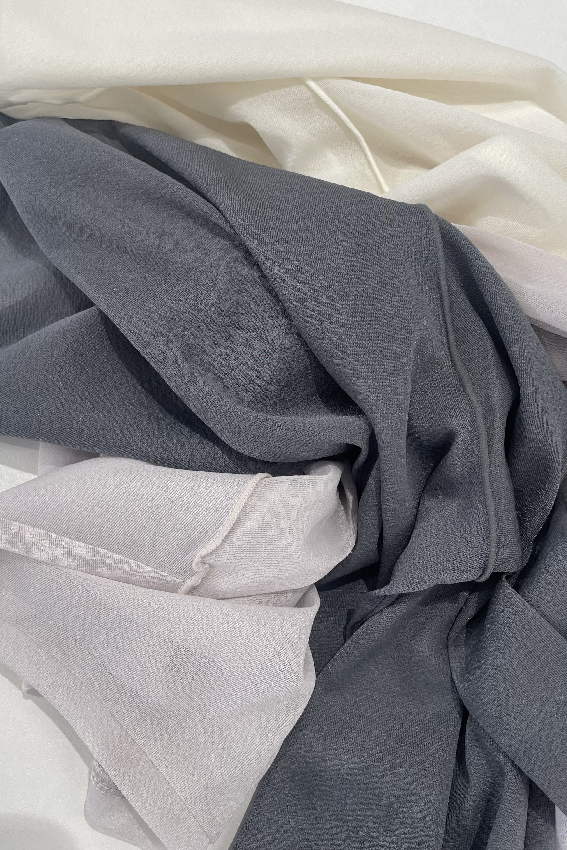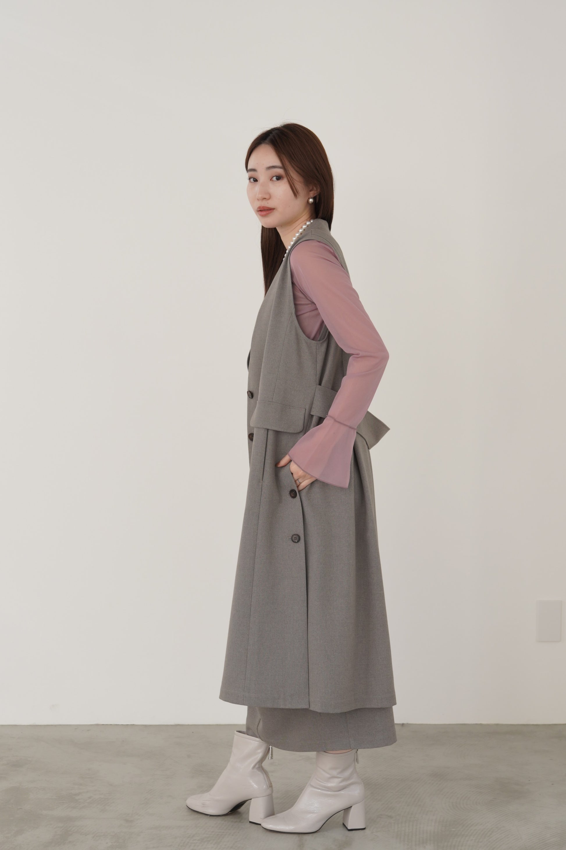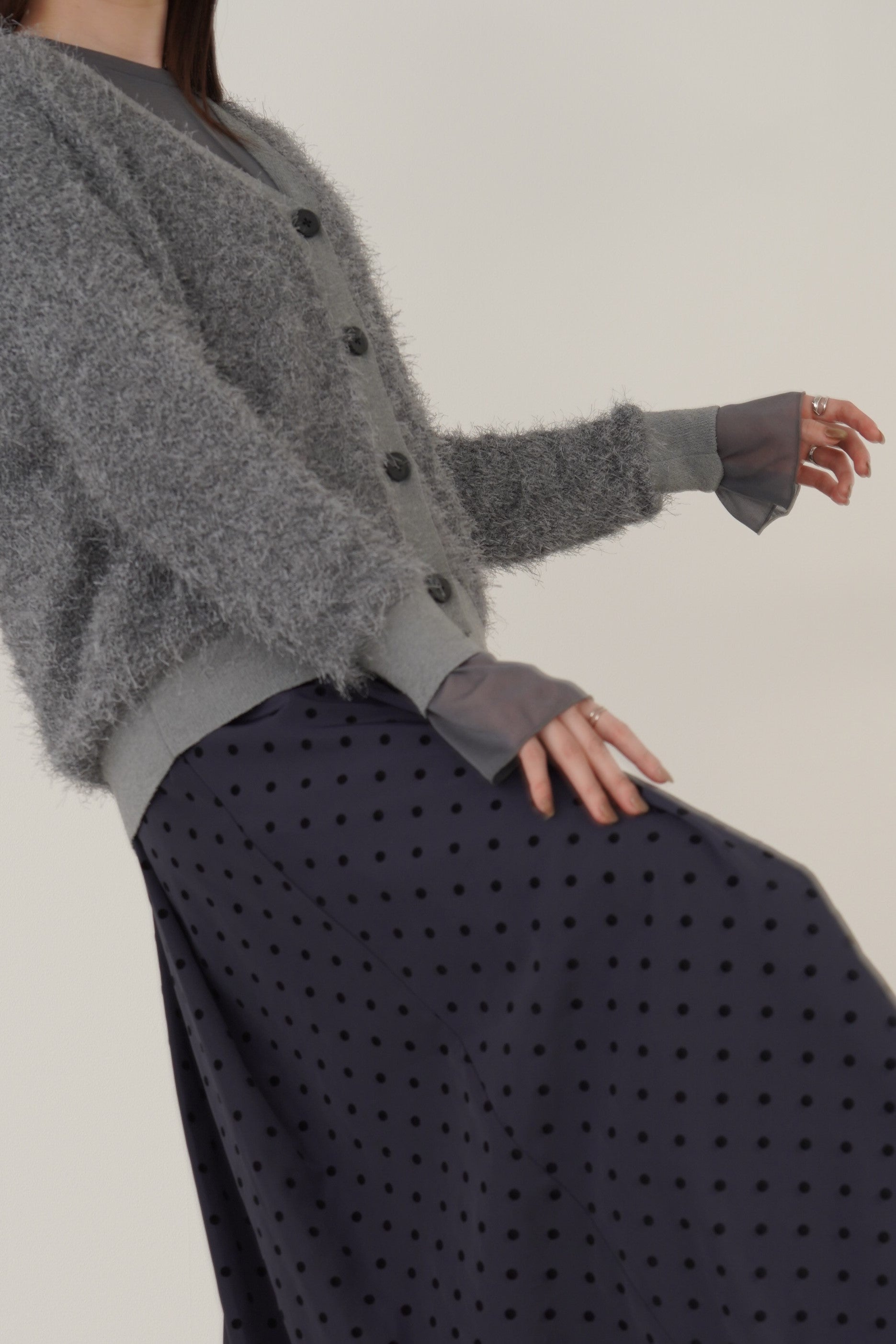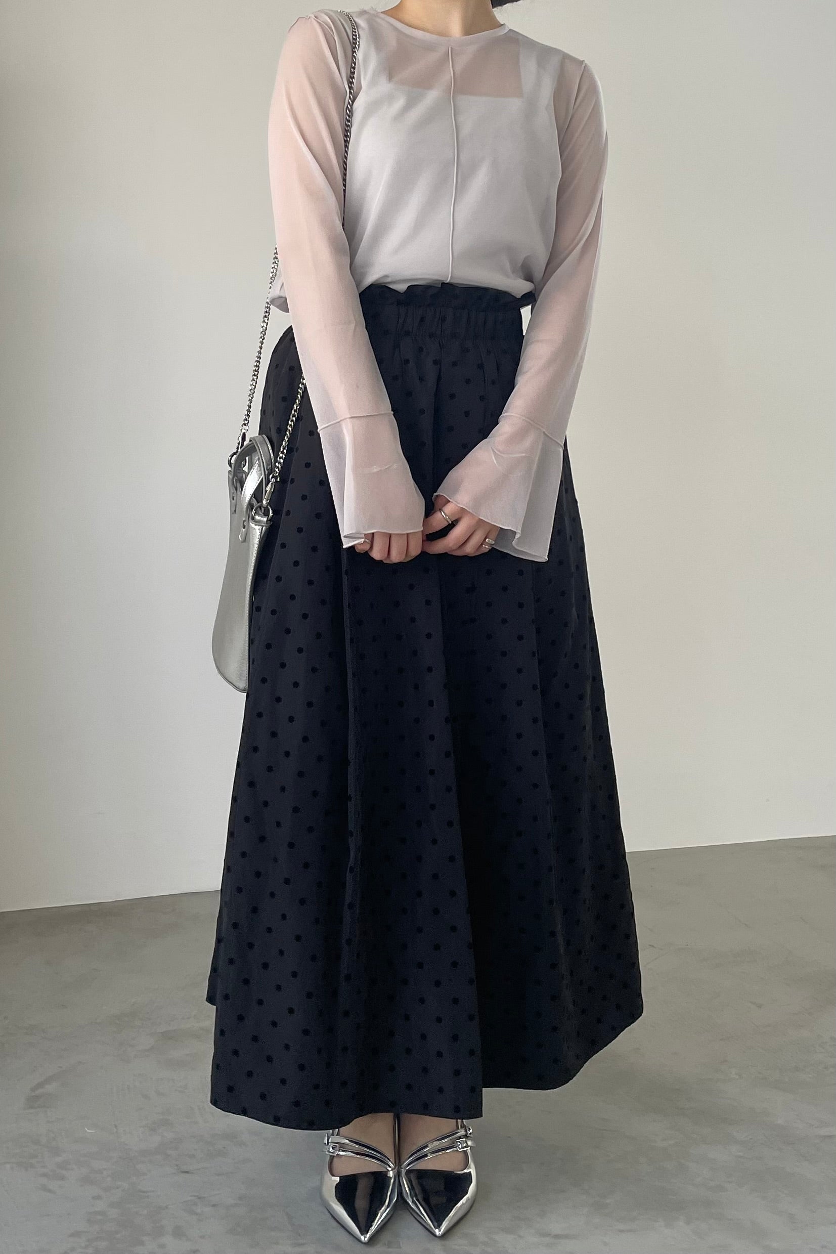 レイヤードスタイリングに欠かせないシアートップス。端の処理を、シアー感を引き立てるメロー始末で仕上げました。合繊素材ですが、天然素材の様なナチュラルで高級感のあるニットを使用しています。