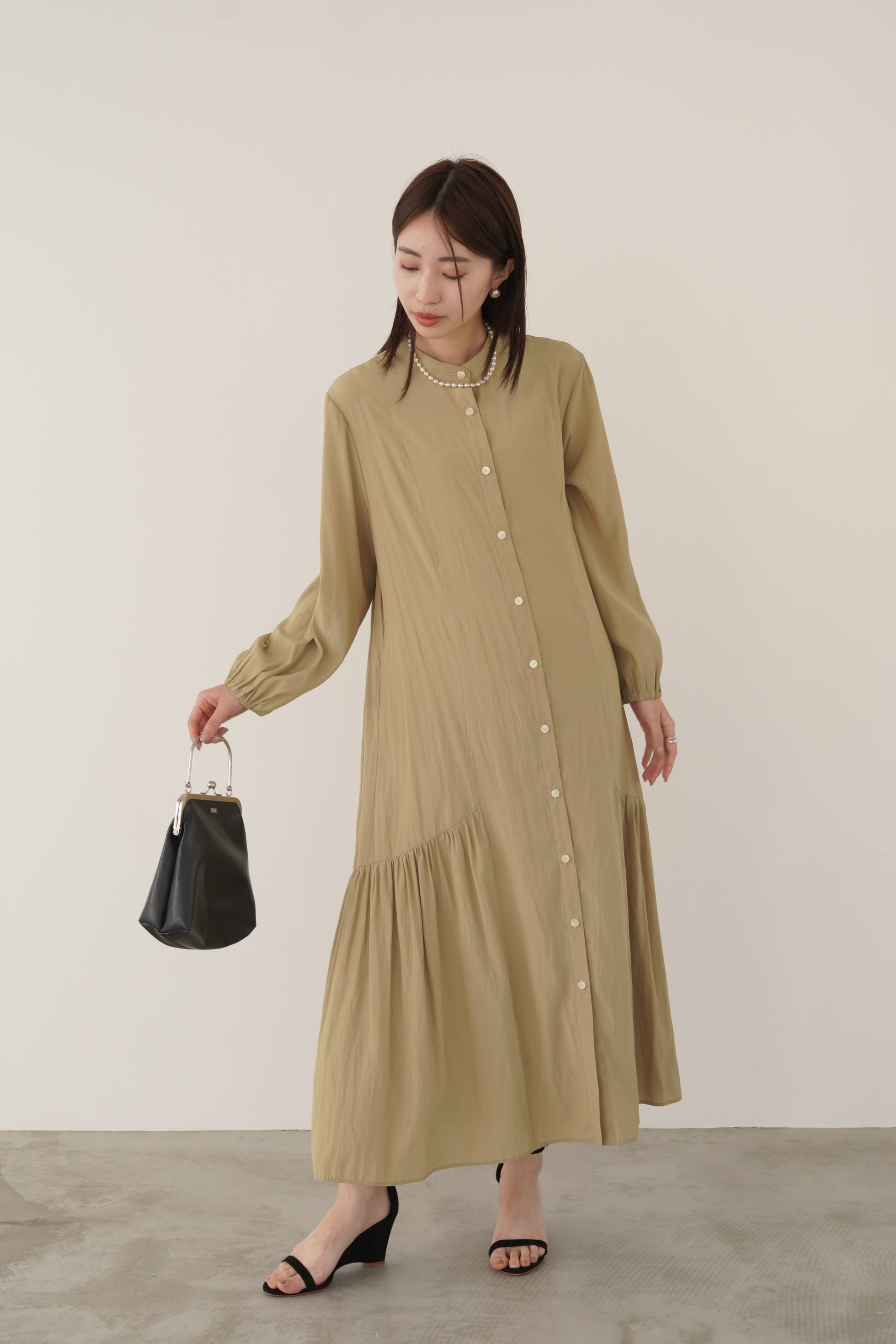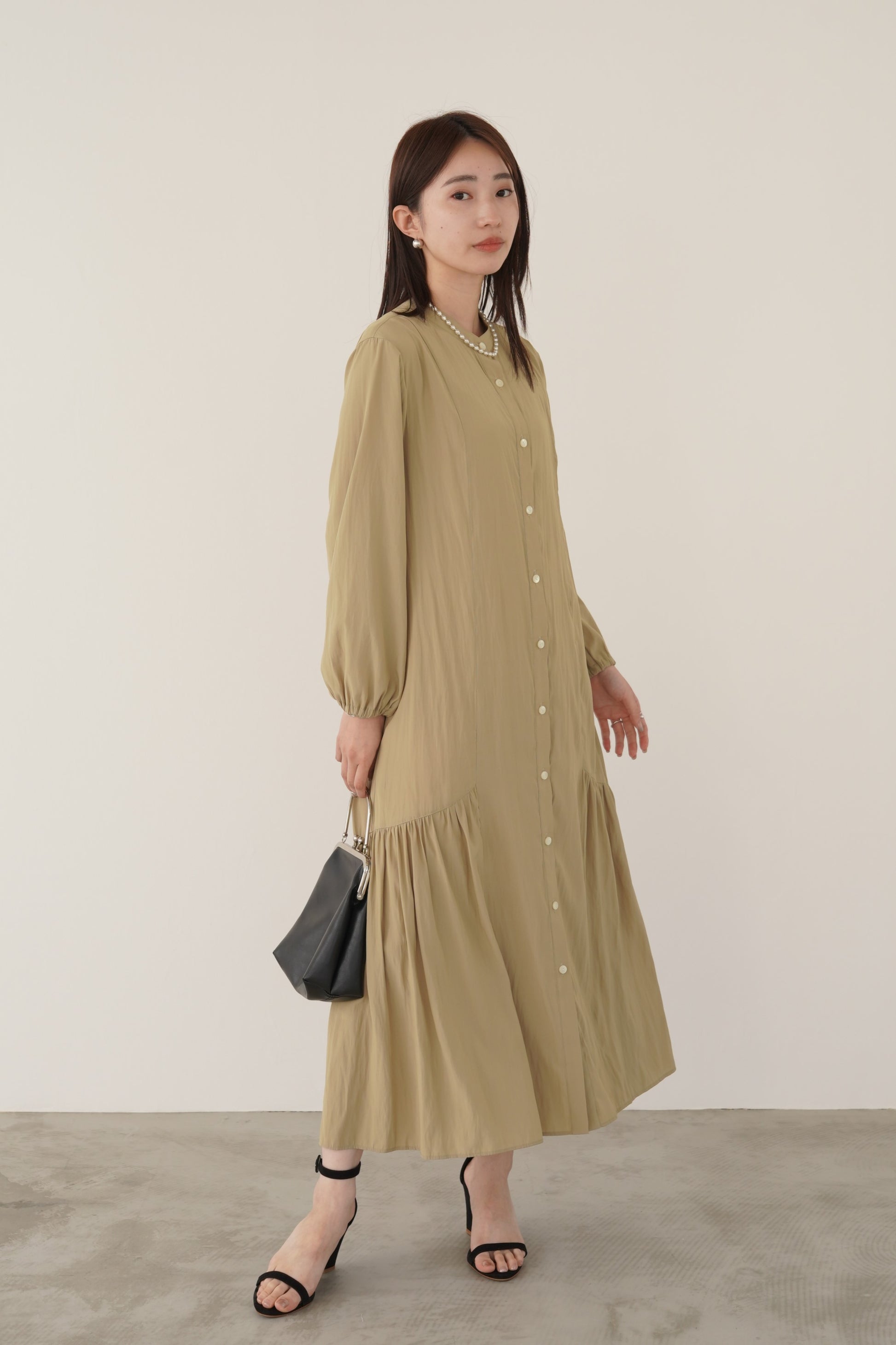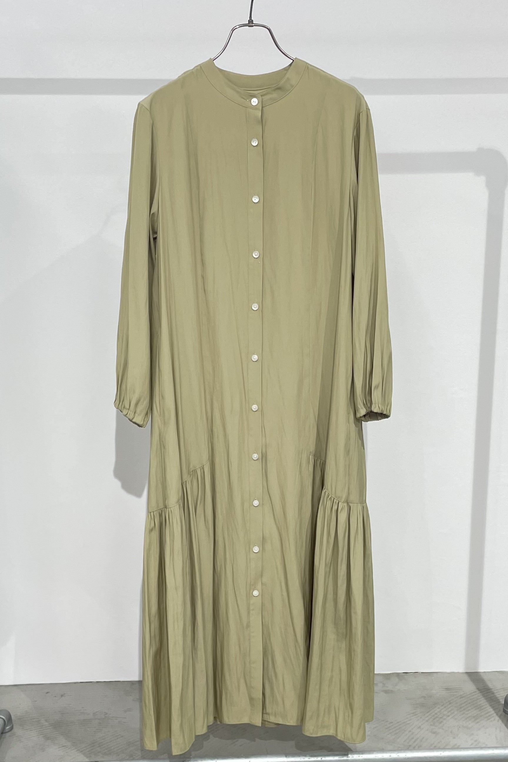 たっぷりギャザーを入れた裾が贅沢に揺れる、きれいなフレアシルエットが女性らしいワンピース。シャツディテールが衿元が甘さを抑え、きちんと感も演出してくれる大人のためのワンピースです。モノトーンのデシンプリントと、パウダリータッチな無地で展開しています。