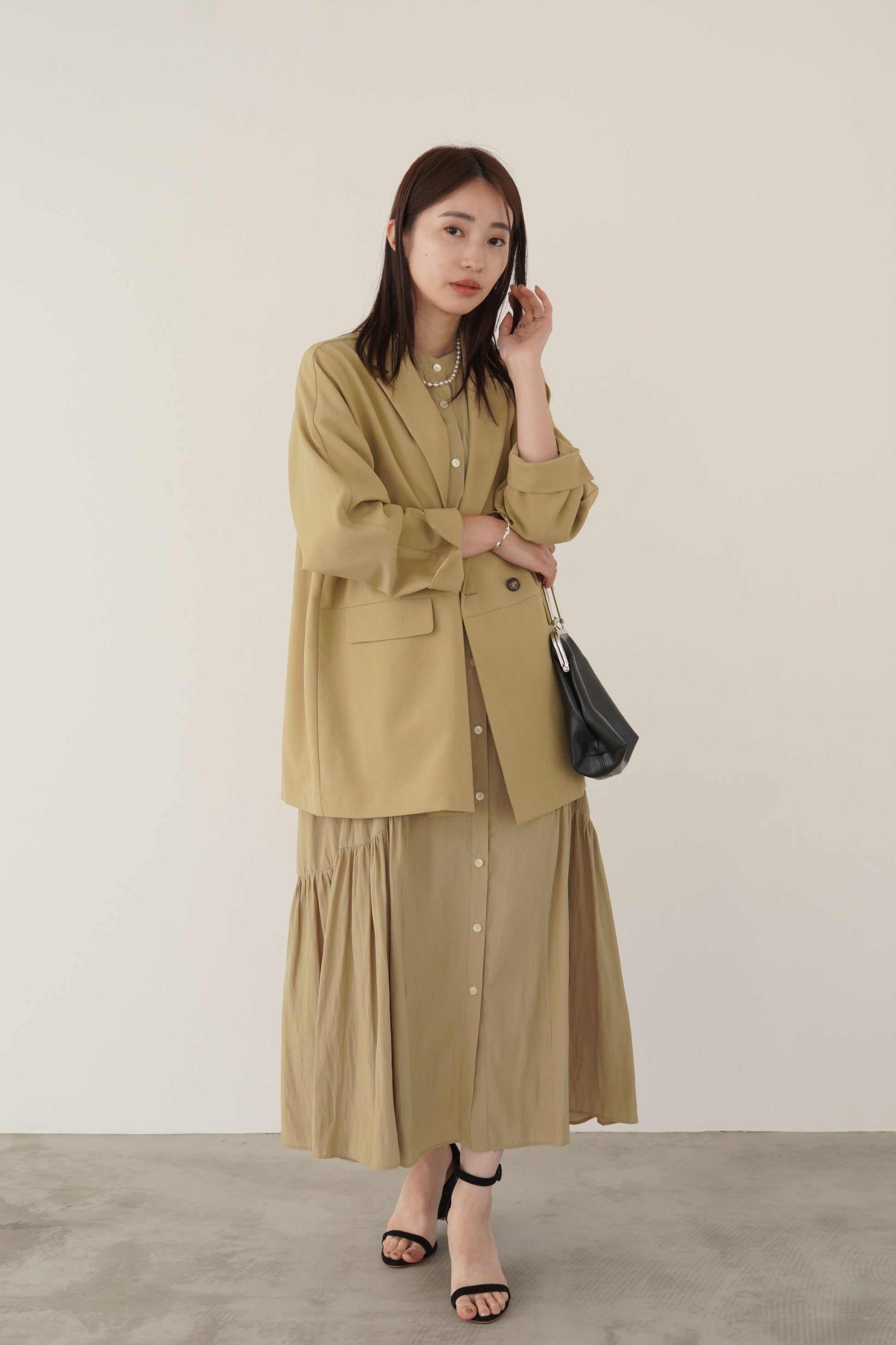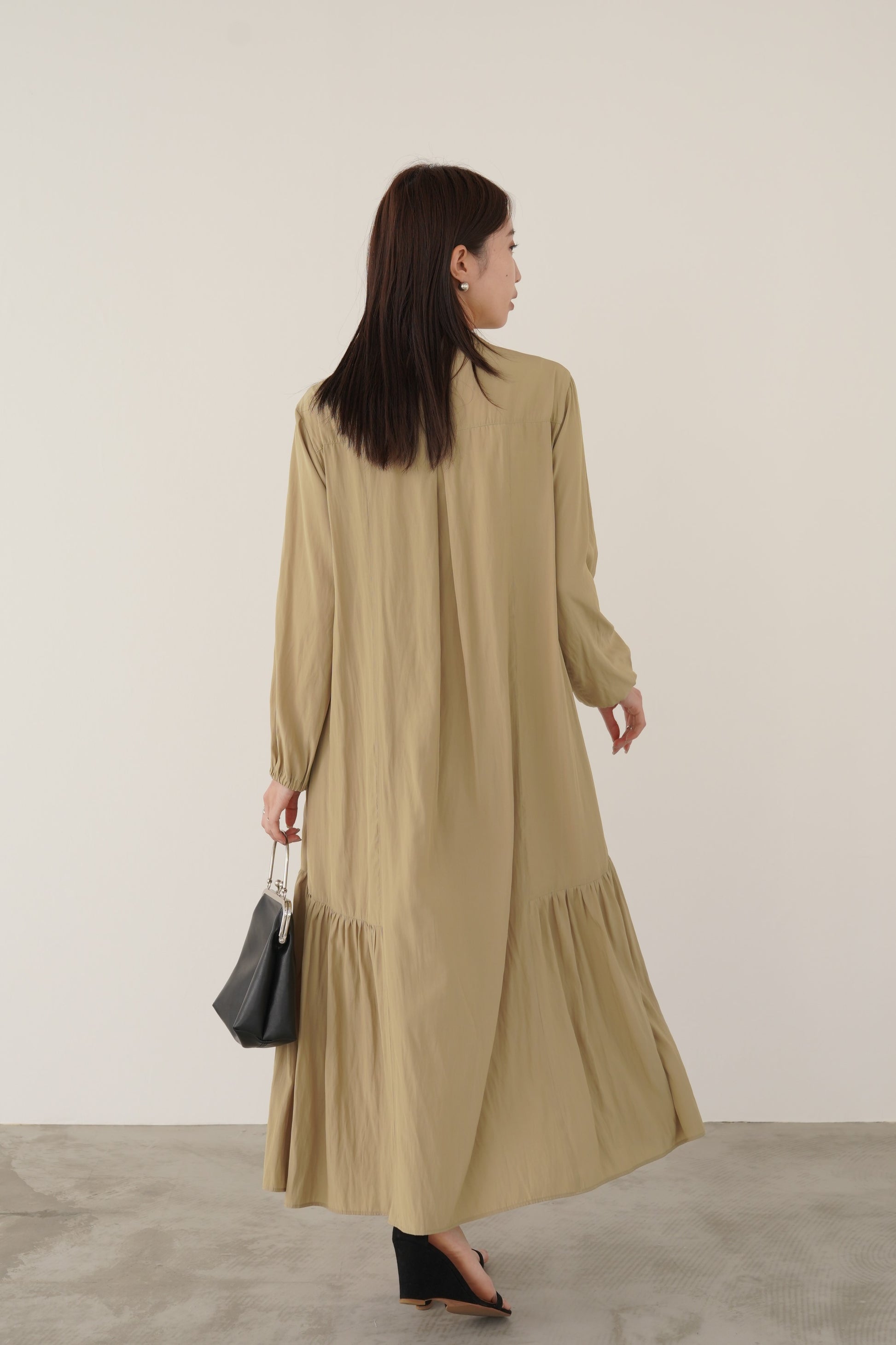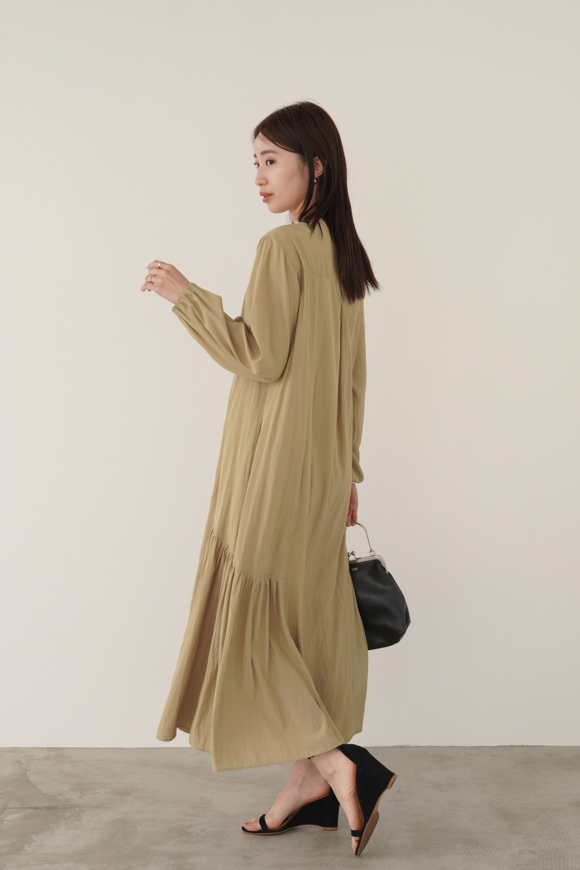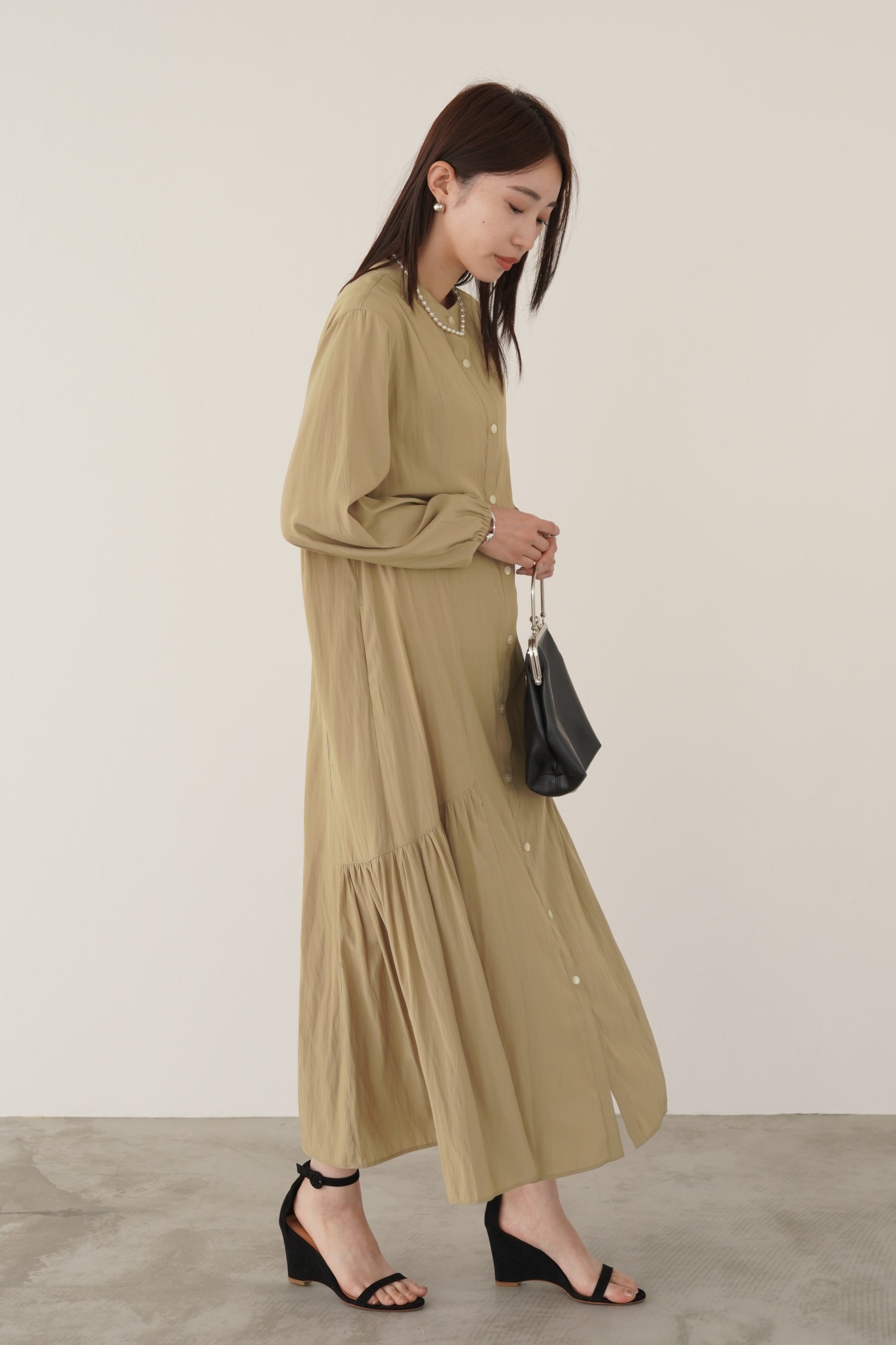 たっぷりギャザーを入れた裾が贅沢に揺れる、きれいなフレアシルエットが女性らしいワンピース。シャツディテールが衿元が甘さを抑え、きちんと感も演出してくれる大人のためのワンピースです。モノトーンのデシンプリントと、パウダリータッチな無地で展開しています。